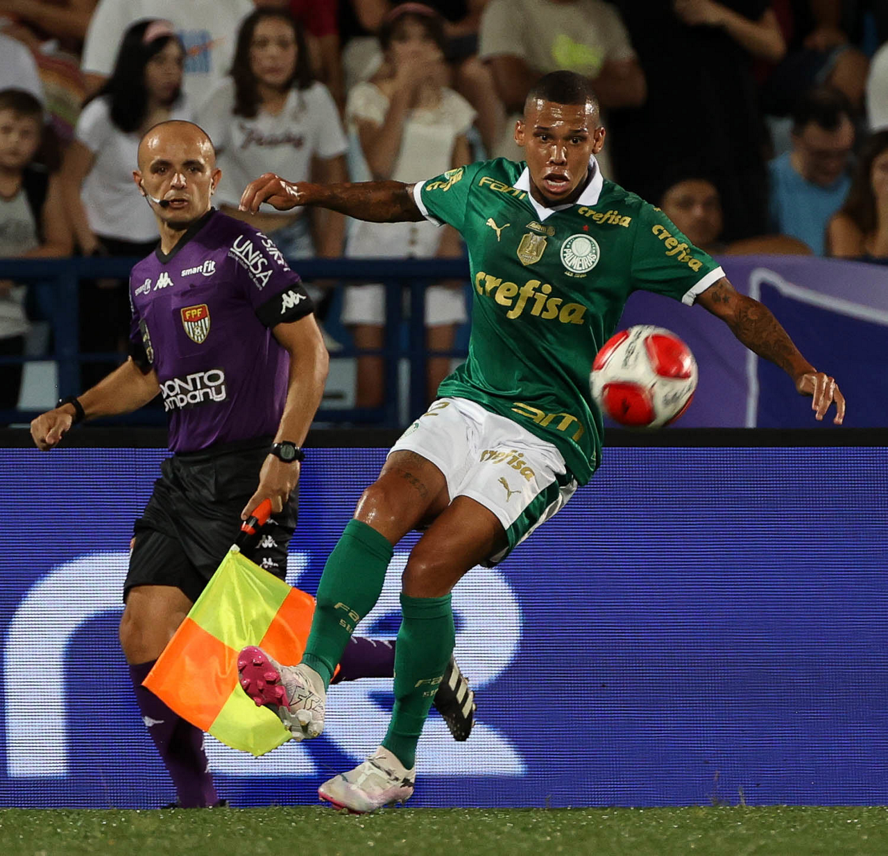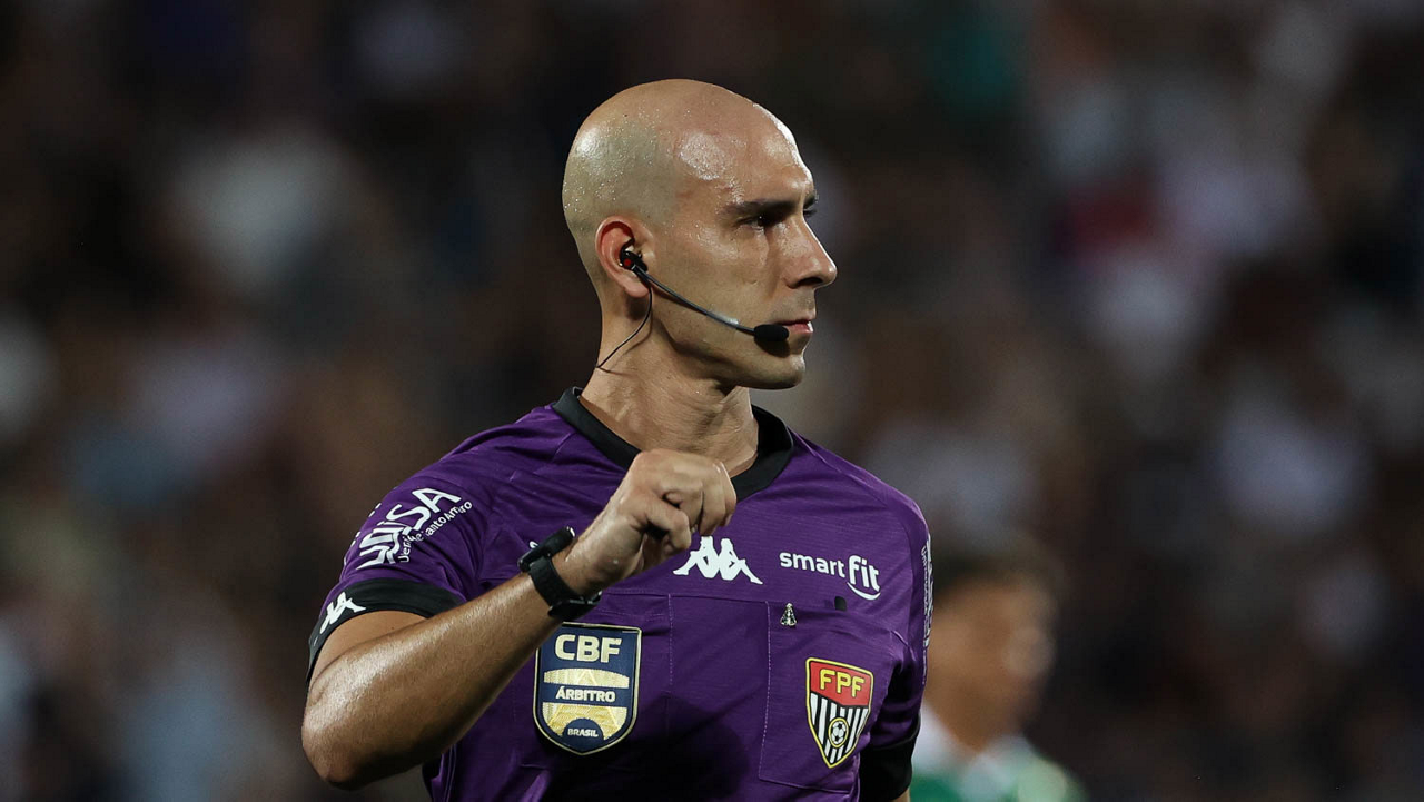 O árbitro Lucas Canetto Bellote, do jogo entre as equipes da SE Palmeiras e EC Santo André, durante partida válida pela quinta rodada, do Campeonato Paulista, Série A1, no Estádio Bruno José Daniel. (Foto: Cesar Greco/Palmeiras/by Canon)
