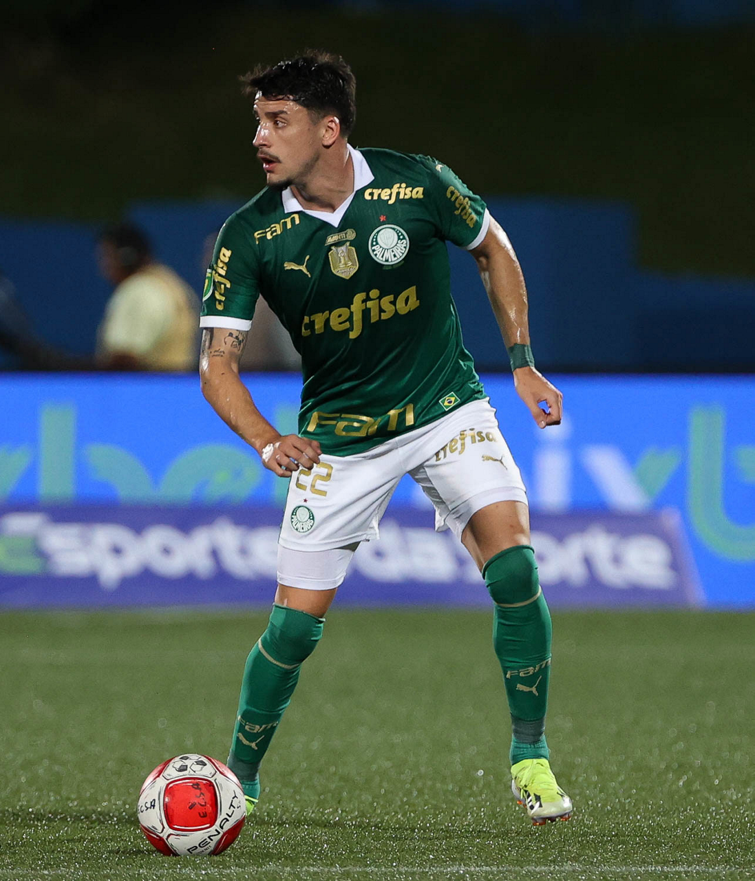 O jogador Fabinho, da SE Palmeiras, em jogo contra a equipe do EC Santo André, durante partida válida pela quinta rodada, do Campeonato Paulista, Série A1, no Estádio Bruno José Daniel. (Foto: Cesar Greco/Palmeiras/by Canon)