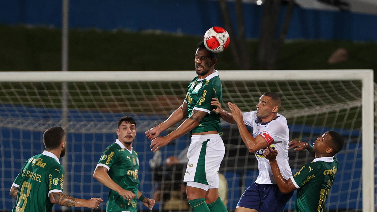 O jogador Gustavo Gómez, da SE Palmeiras, em jogo contra a equipe do EC Santo André, durante partida válida pela quinta rodada, do Campeonato Paulista, Série A1, no Estádio Bruno José Daniel. (Foto: Cesar Greco/Palmeiras/by Canon)