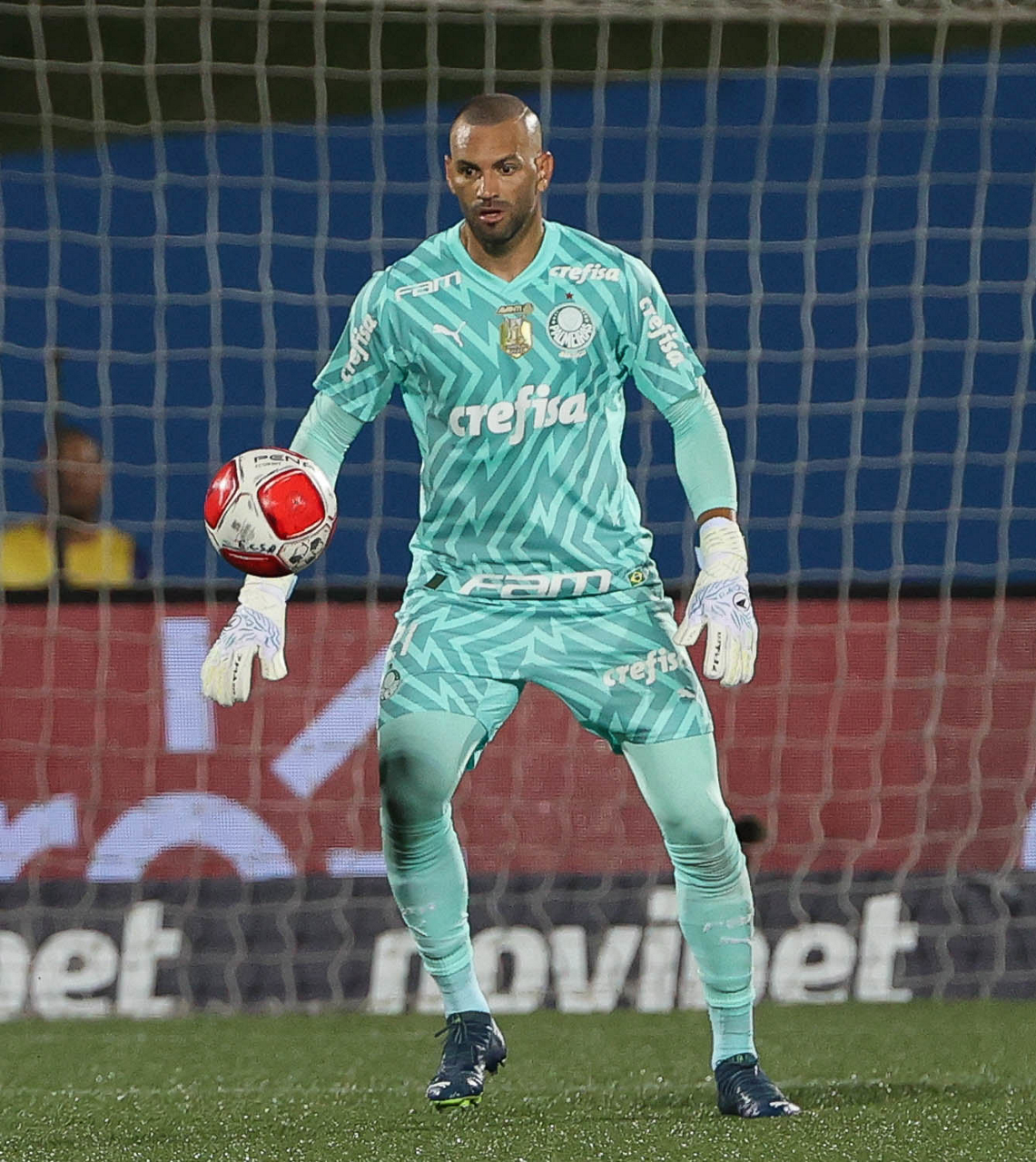 O goleiro Weverton, da SE Palmeiras, em jogo contra a equipe do EC Santo André, durante partida válida pela quinta rodada, do Campeonato Paulista, Série A1, no Estádio Bruno José Daniel. (Foto: Cesar Greco/Palmeiras/by Canon)