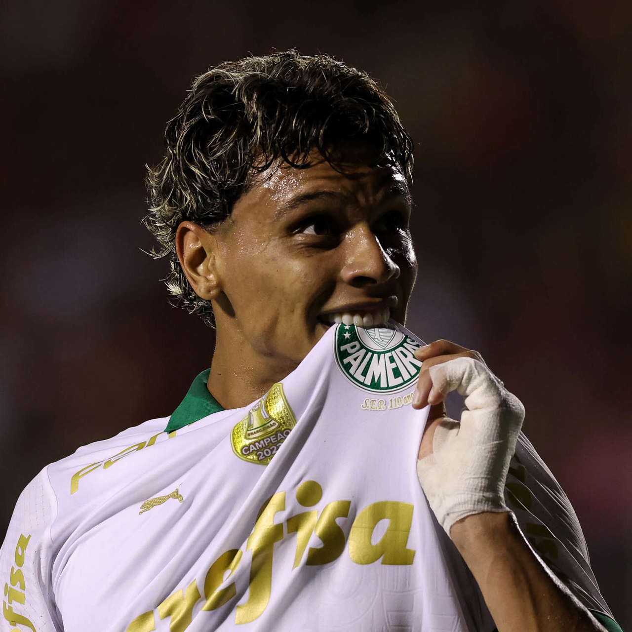 Os jogadores Flaco López e Gabriel Menino (D), da SE Palmeiras, disputam bola com o jogdor do EC Vitória, durante partida válida pela primeira rodada, do Campeonato Brasileiro, Série A, no Estádio Manoel Barradas. (Foto: Cesar Greco/Palmeiras/by Canon)