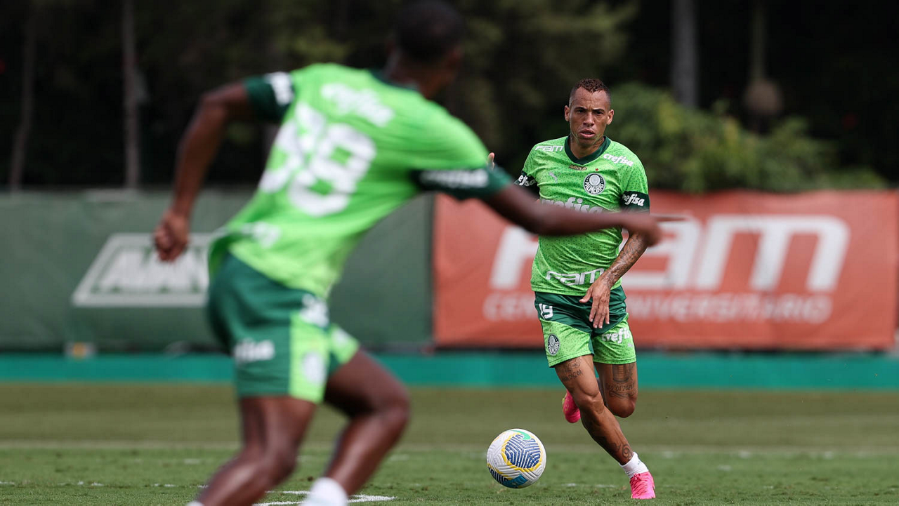O jogador Fabinho, da SE Palmeiras, durante treinamento, na Academia de Futebol. (Foto: Cesar Greco/Palmeiras/by Canon)