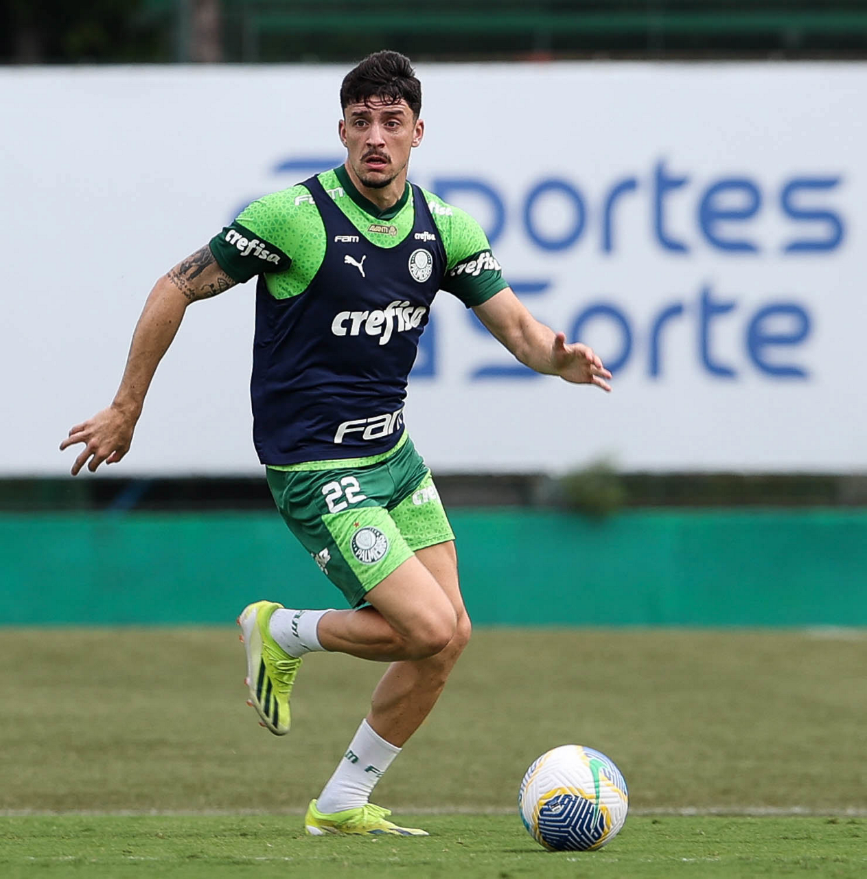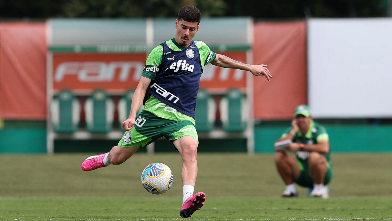 O jogador Joaquín Piquerez, da SE Palmeiras, durante treinamento, na Academia de Futebol. (Foto: Cesar Greco/Palmeiras/by Canon)