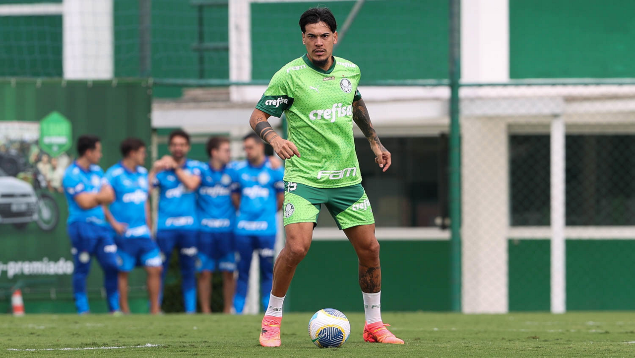 O jogador Gustavo Gómez, da SE Palmeiras, durante treinamento, na Academia de Futebol. (Foto: Cesar Greco/Palmeiras/by Canon)