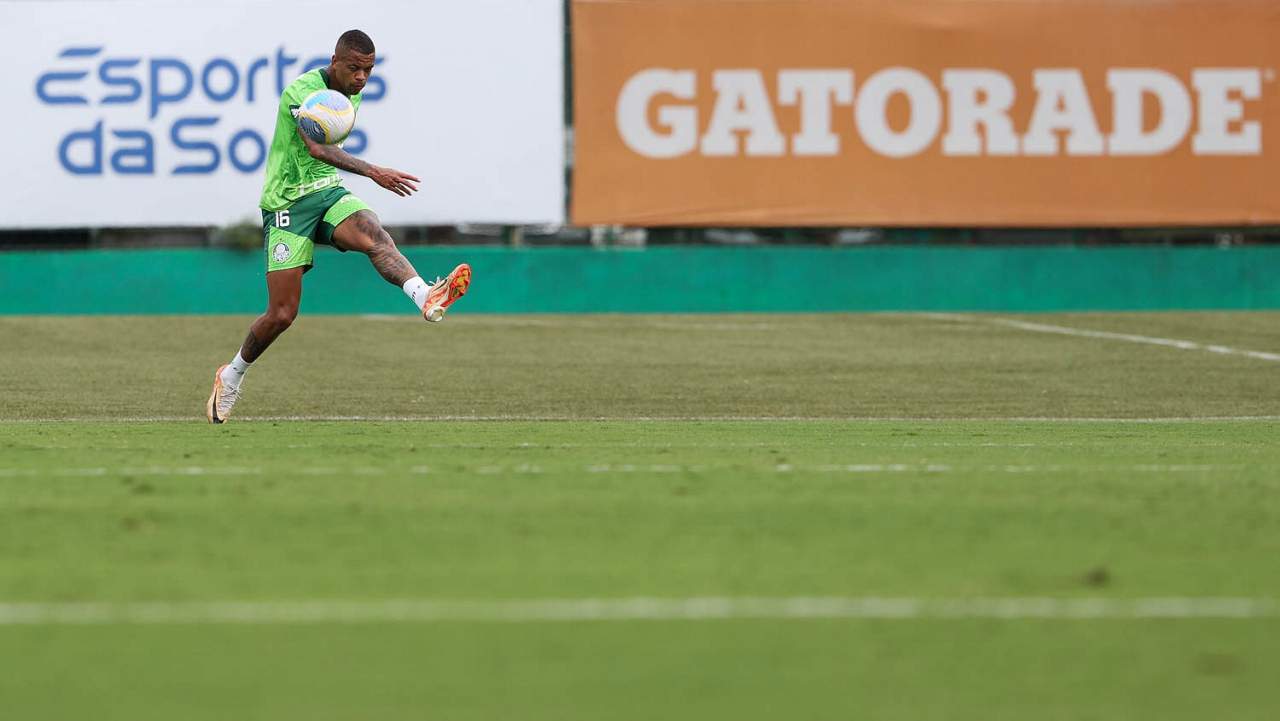 O jogador Rômulo, da SE Palmeiras, durante treinamento, na Academia de Futebol. (Foto: Cesar Greco/Palmeiras/by Canon)