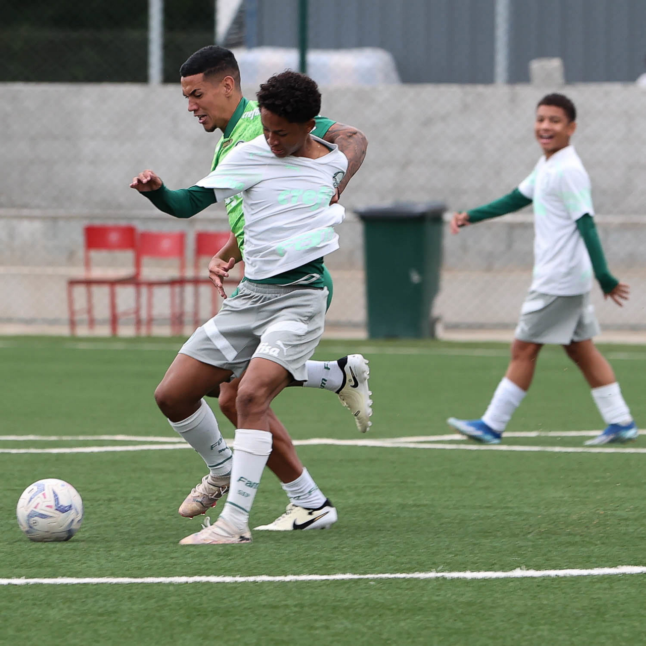 O vice presidente Paulo Buosi, a presidente Leila Pereira, os jogadores Kaique, Gabriel Menino, Fabinho, Vanderlan, Naves, Mateus, Endrick e o coordenador geral de base João Paulo (E/D em pé) e Garcia, Luis Guilherme, Estêvão, Jhonatan e o diretor das categorias de base Marcelo Dedeschi (E/D agachados), da SE Palmeiras, durante inauguração da nova área de saúde das categaoras de base, na Academia de Futebol 2. (Foto: Cesar Greco/Palmeiras/by Canon)