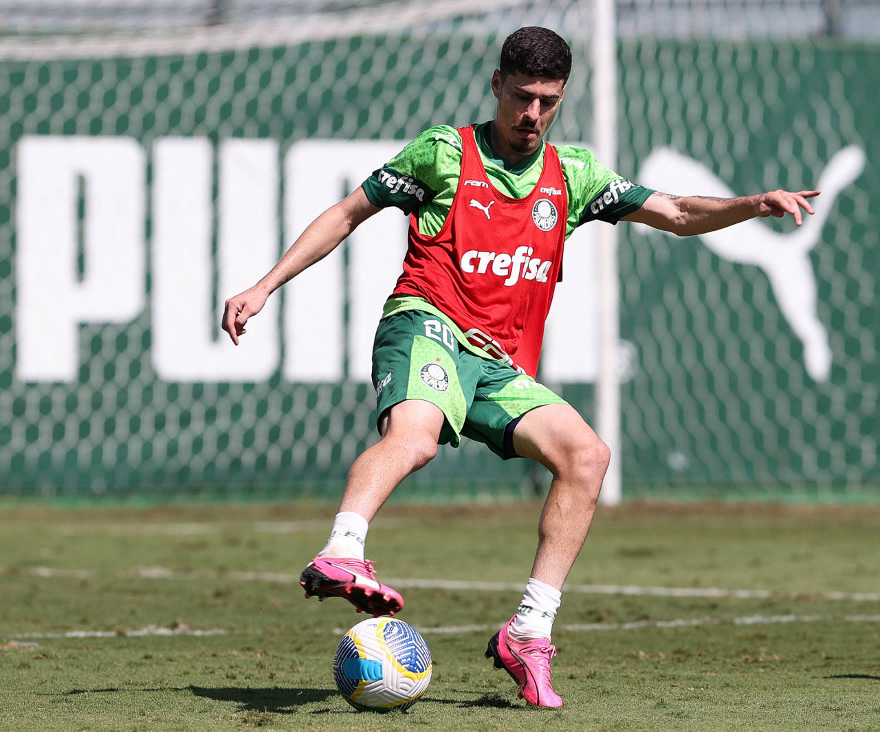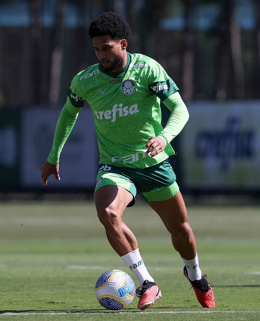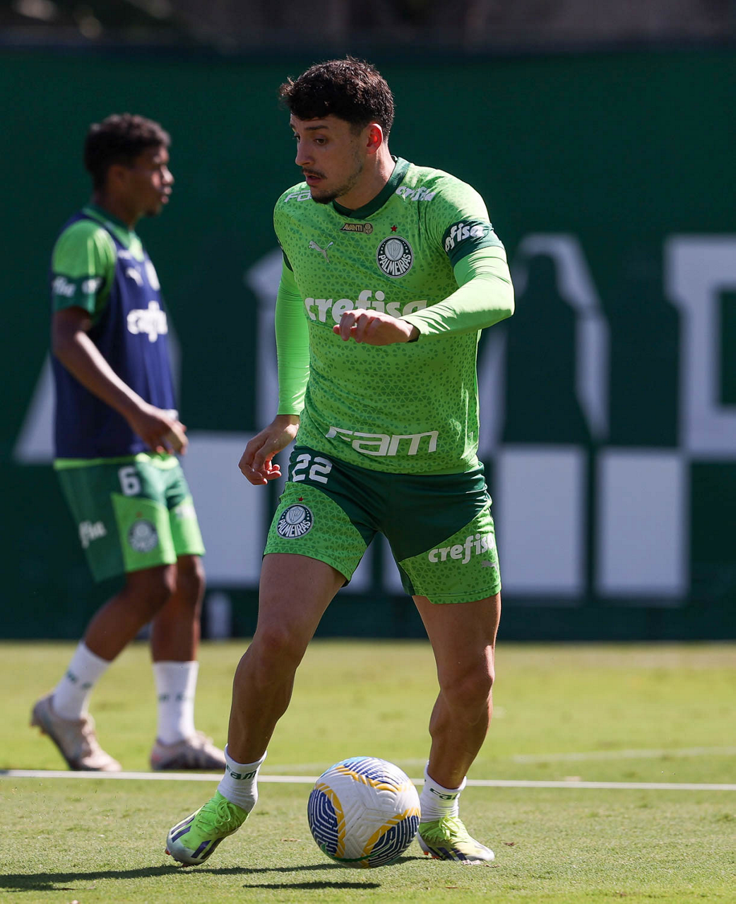 O jogador Richard Ríos, da SE Palmeiras, durante treinamento, na Academia de Futebol. (Foto: Cesar Greco/Palmeiras/by Canon)