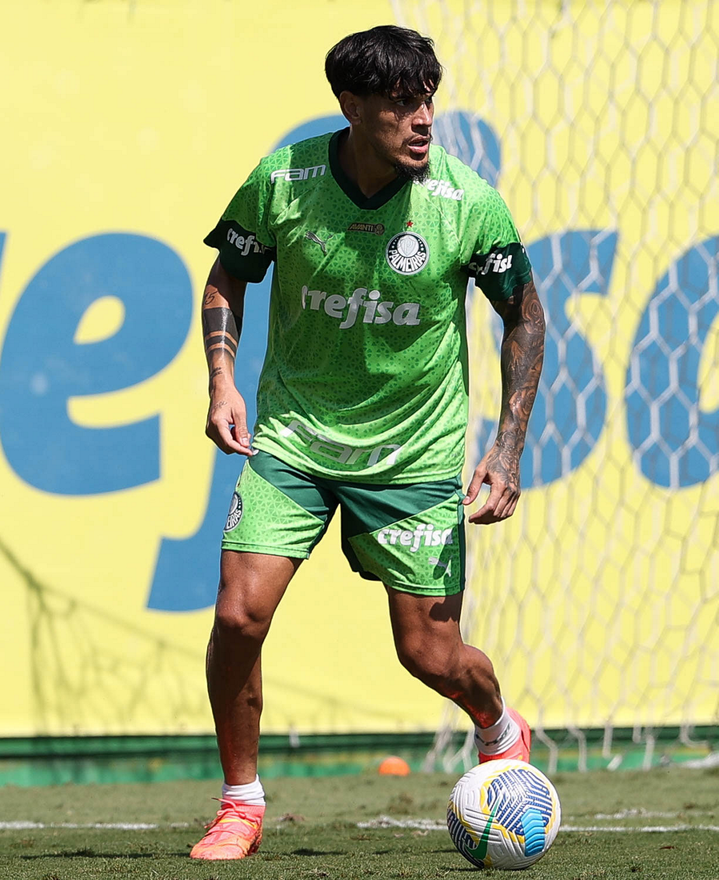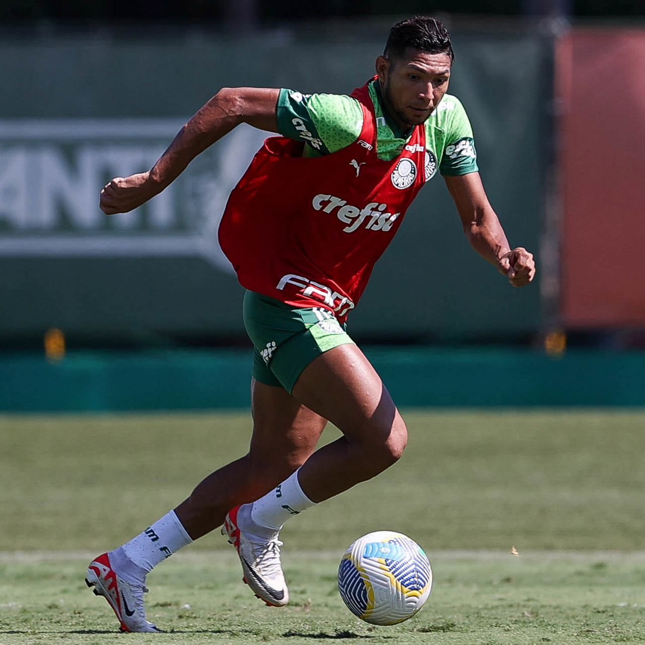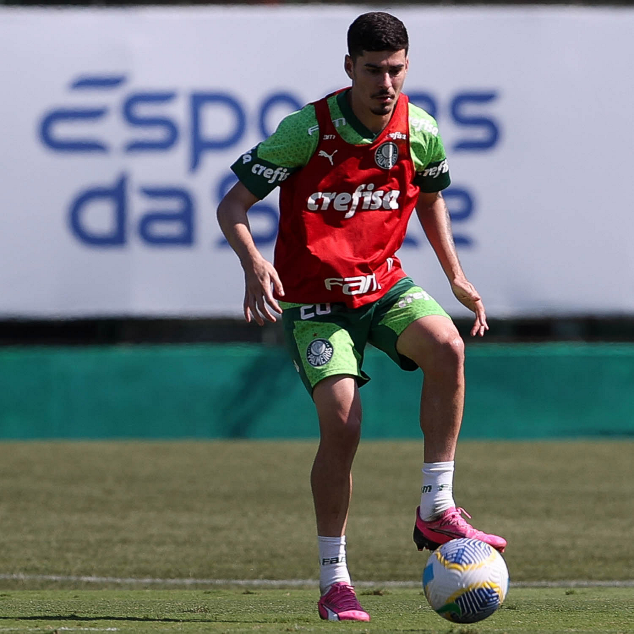 O jogador Richard Ríos, da SE Palmeiras, durante treinamento, na Academia de Futebol. (Foto: Cesar Greco/Palmeiras/by Canon)