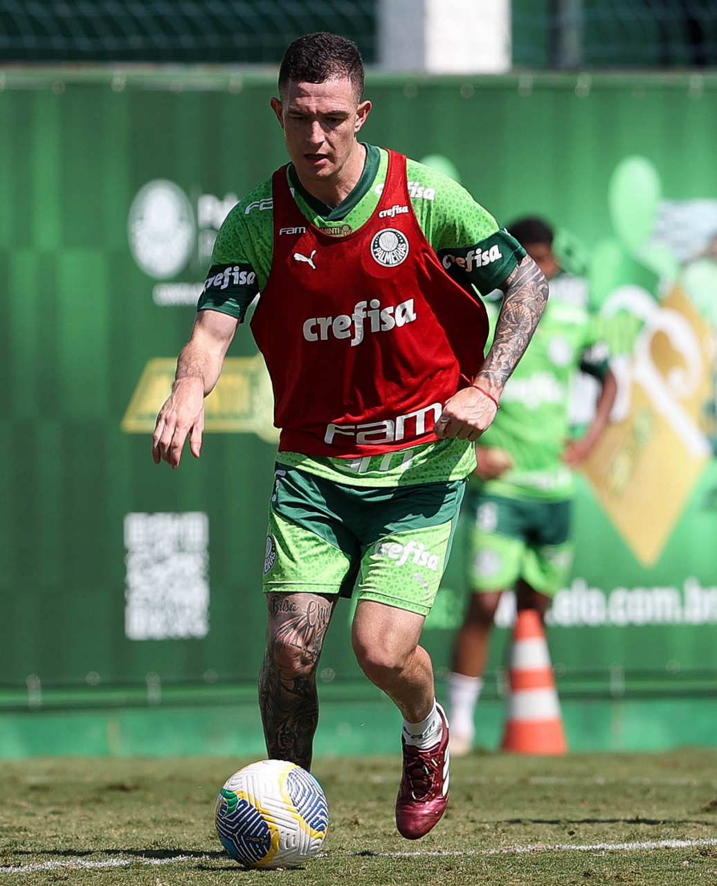 O jogador Joaquín Piquerez, da SE Palmeiras, durante treinamento, na Academia de Futebol. (Foto: Cesar Greco/Palmeiras/by Canon)