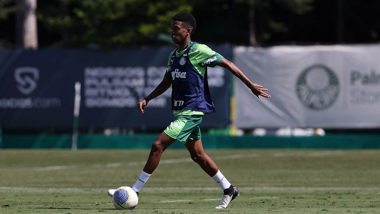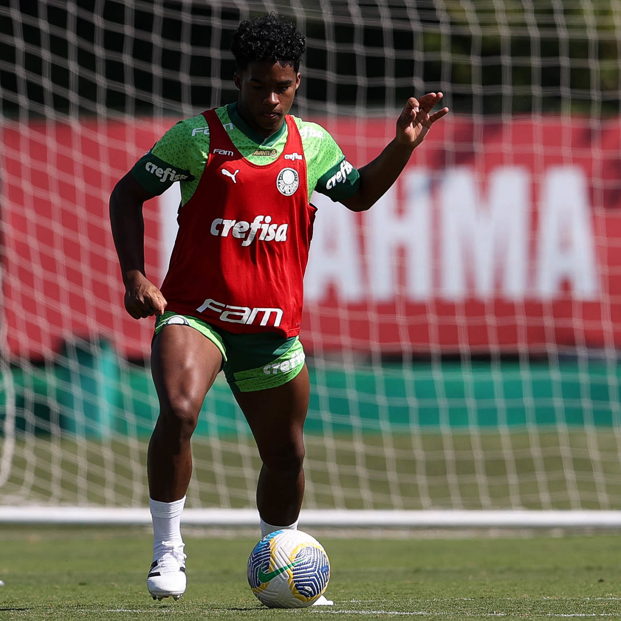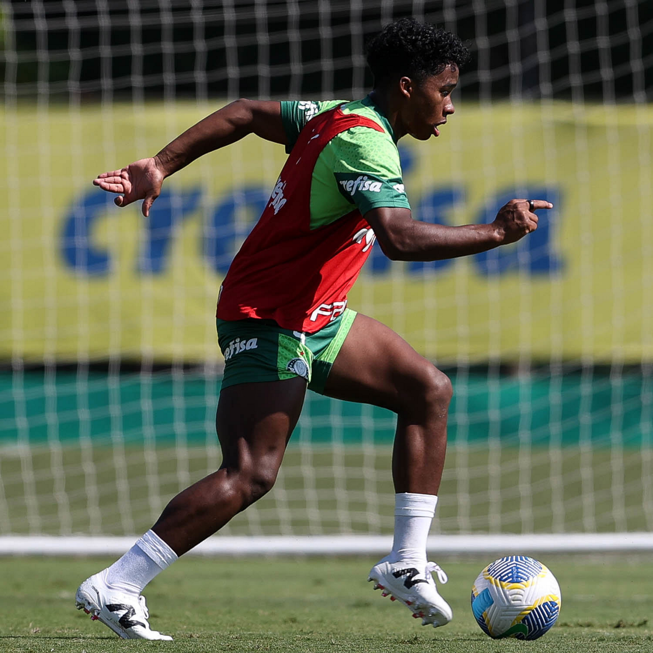 O jogador Endrick, da SE Palmeiras, durante treinamento, na Academia de Futebol. (Foto: Cesar Greco/Palmeiras/by Canon)