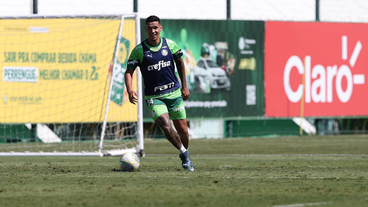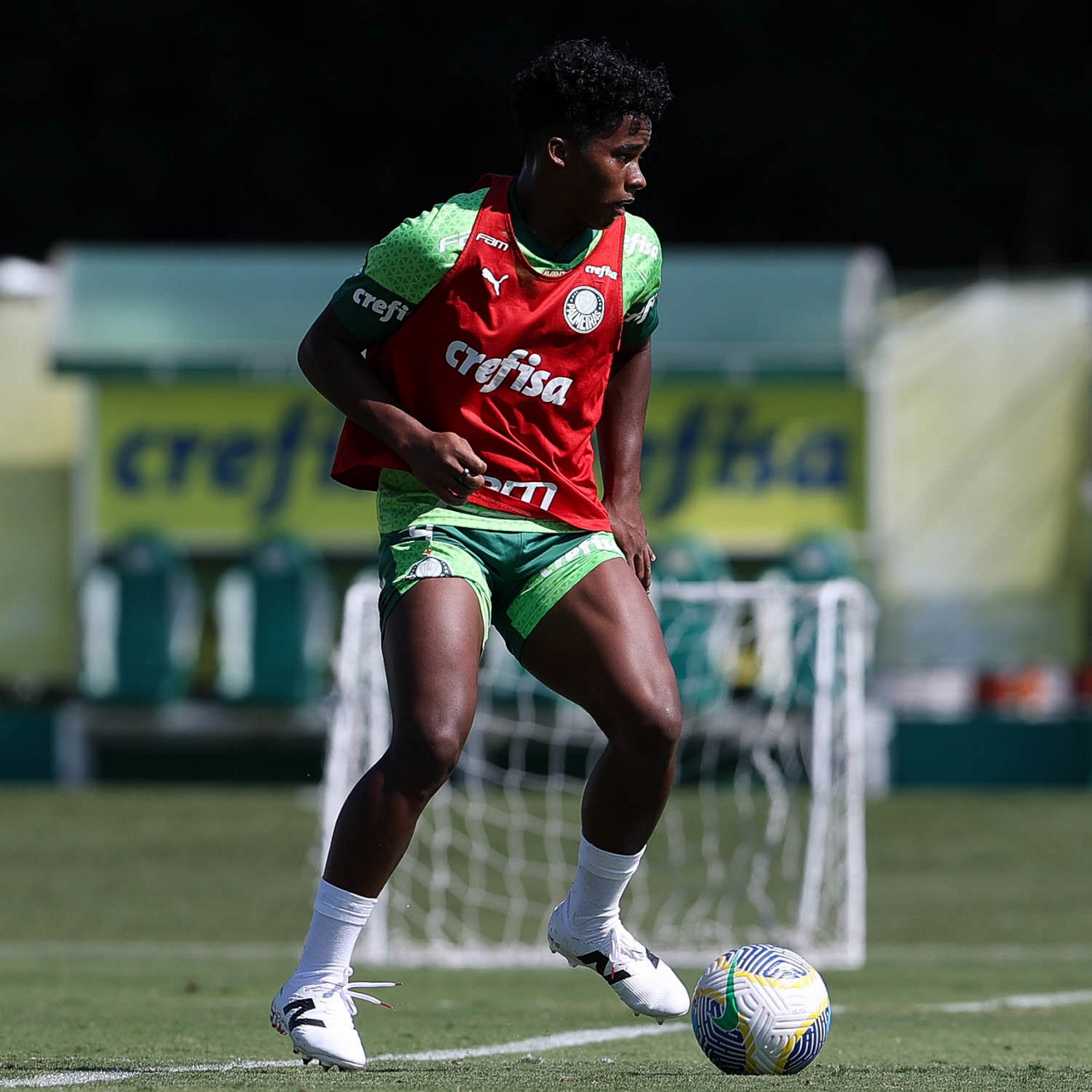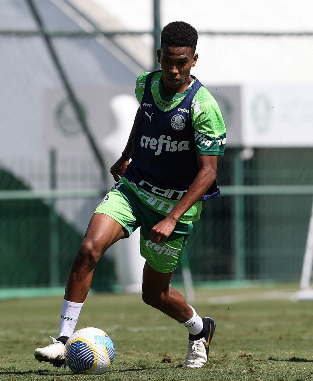 O jogador Endrick, da SE Palmeiras, durante treinamento, na Academia de Futebol. (Foto: Cesar Greco/Palmeiras/by Canon)