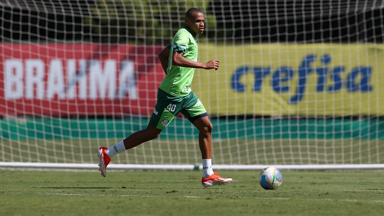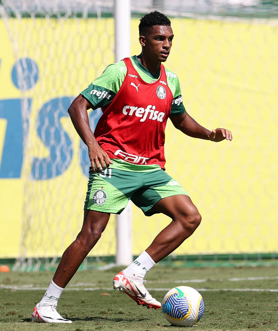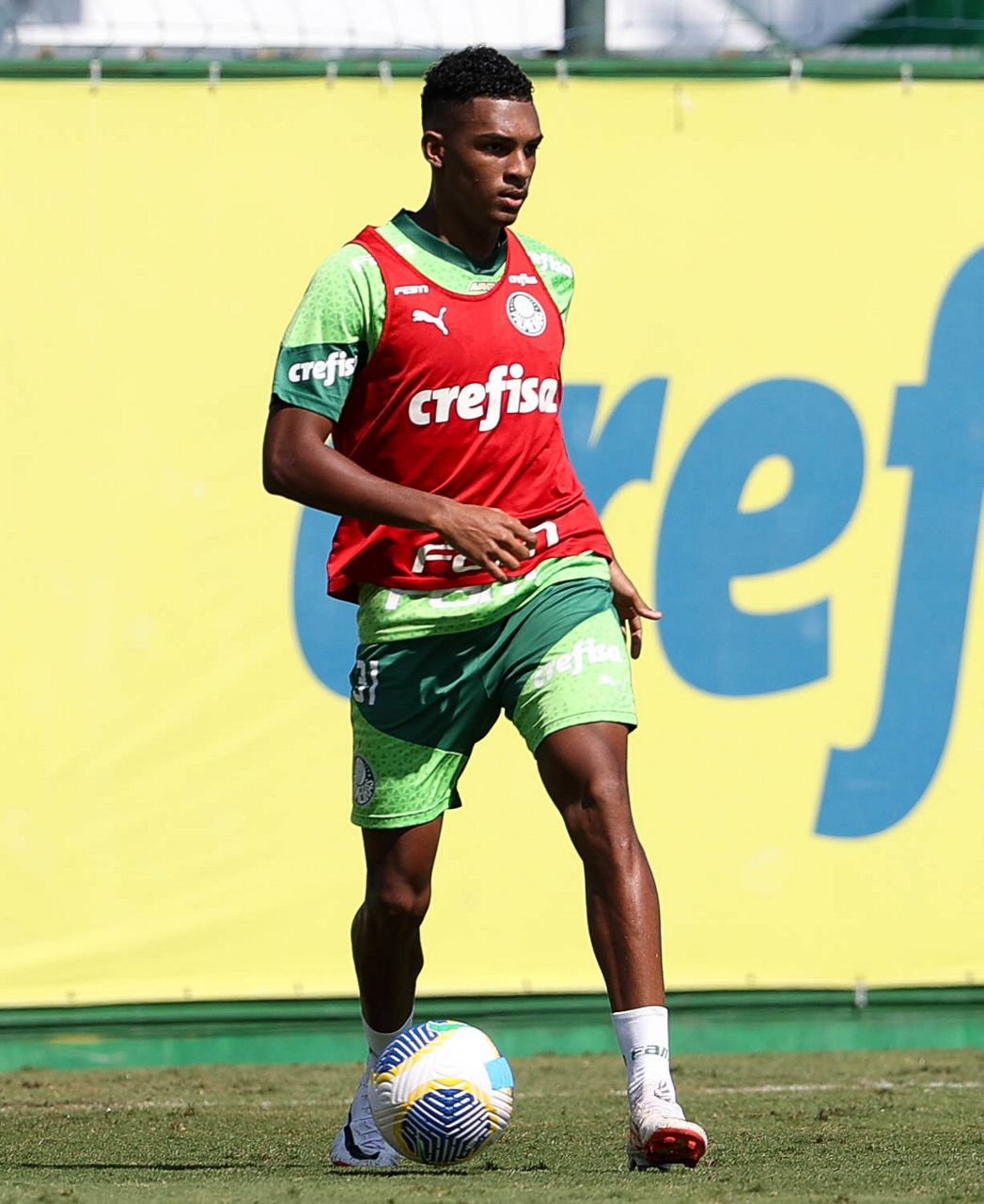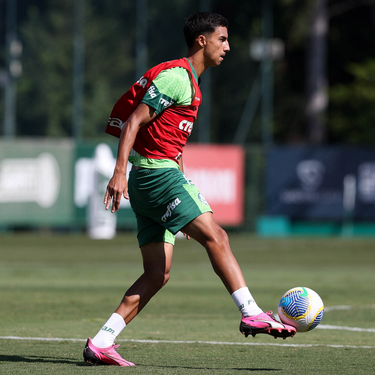 O jogador Gabriel Menino, da SE Palmeiras, durante treinamento, na Academia de Futebol. (Foto: Cesar Greco/Palmeiras/by Canon)