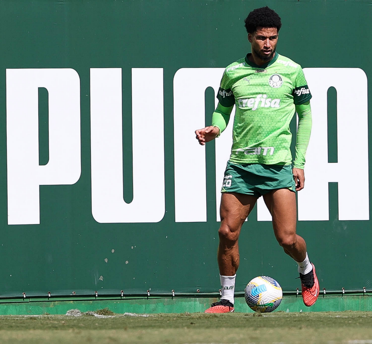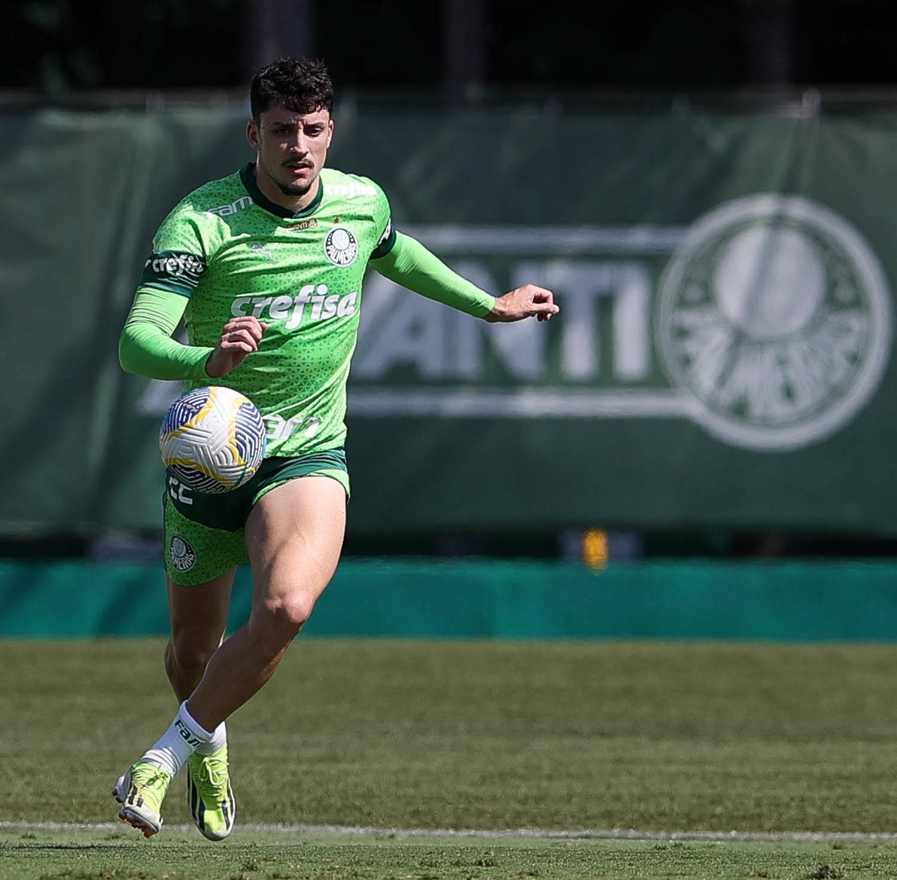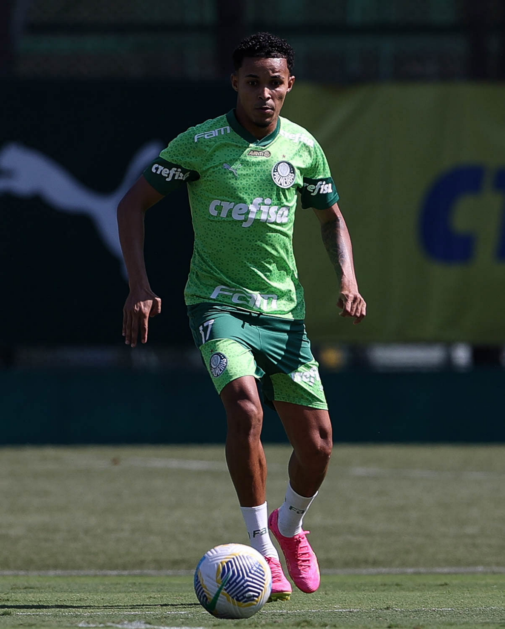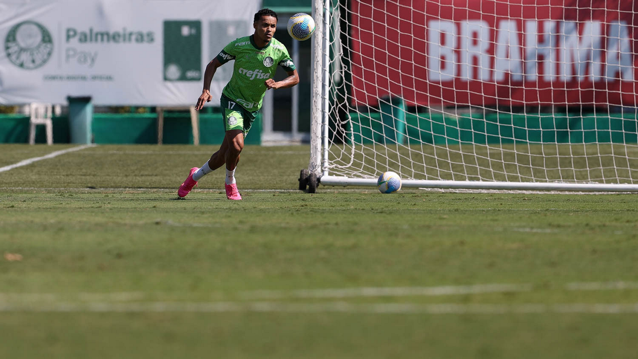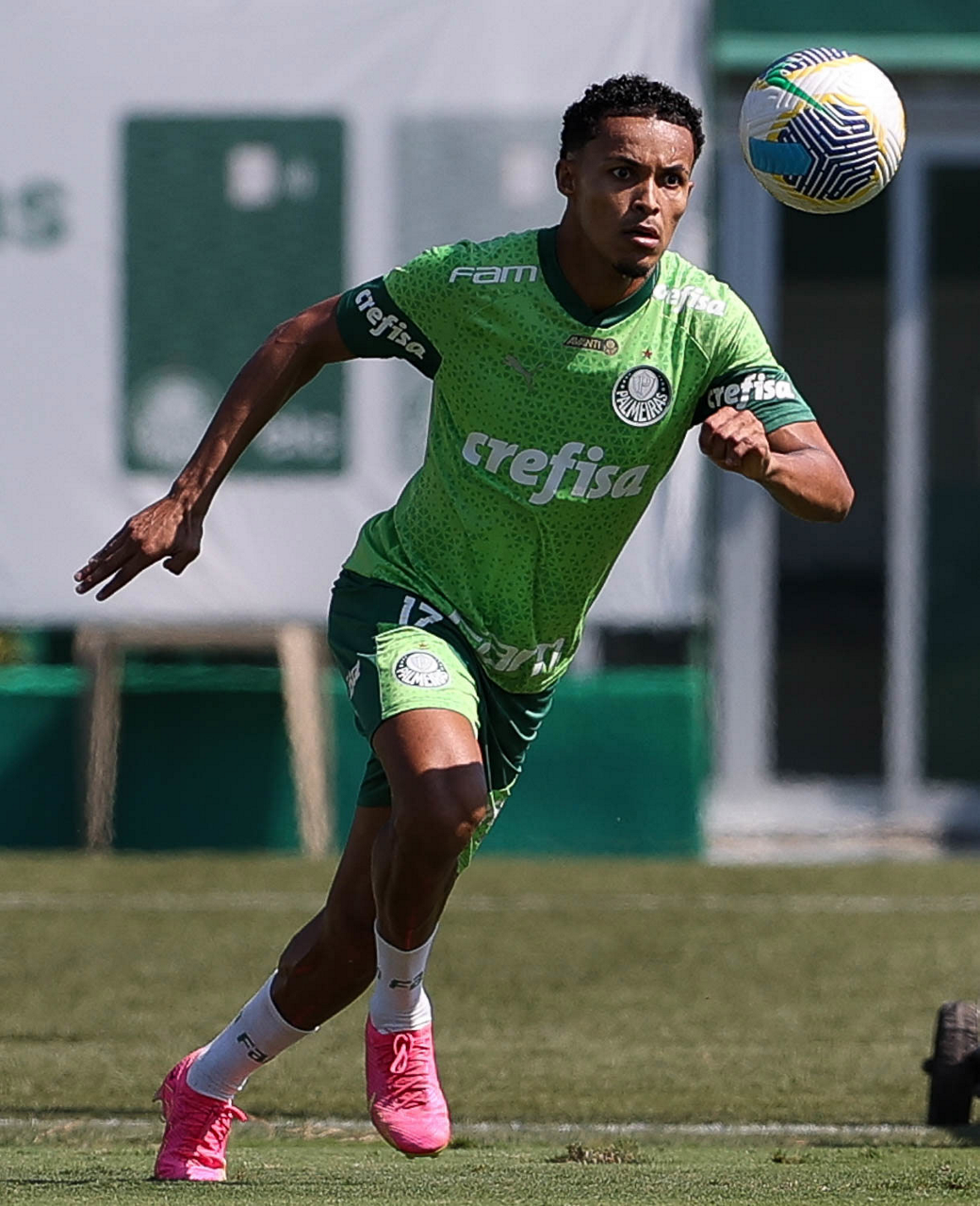 O jogador Gabriel Menino, da SE Palmeiras, durante treinamento, na Academia de Futebol. (Foto: Cesar Greco/Palmeiras/by Canon)