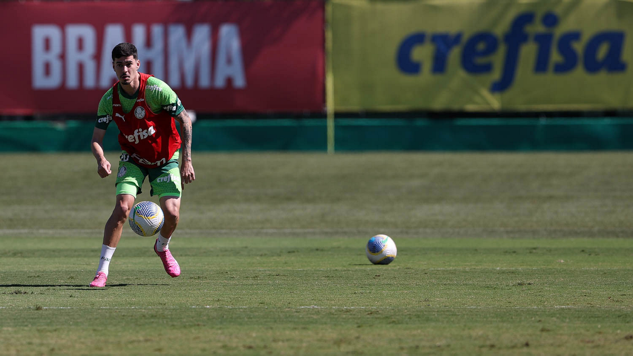 O jogador Gabriel Menino, da SE Palmeiras, durante treinamento, na Academia de Futebol. (Foto: Cesar Greco/Palmeiras/by Canon)