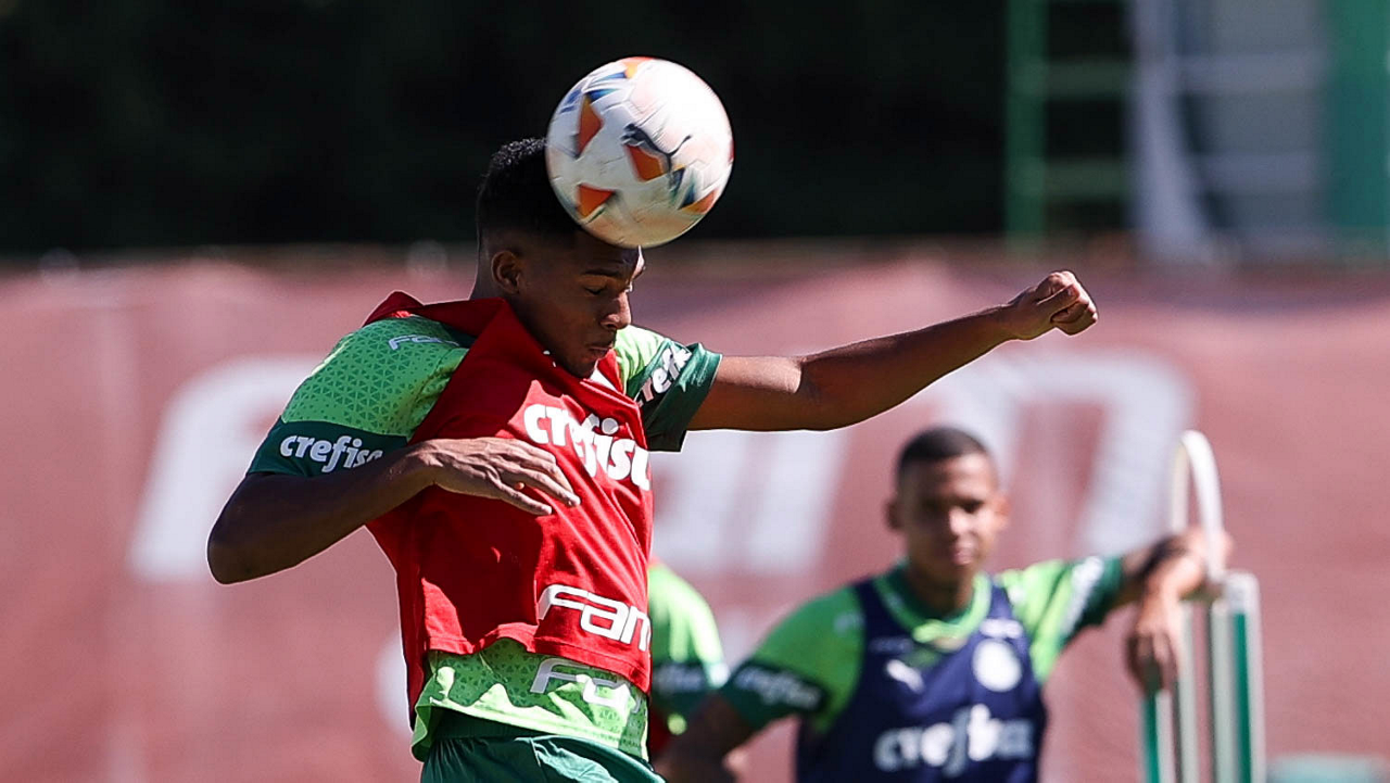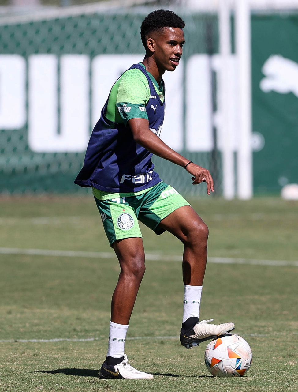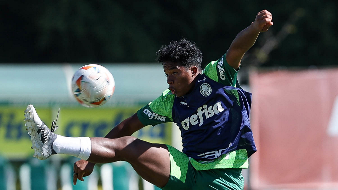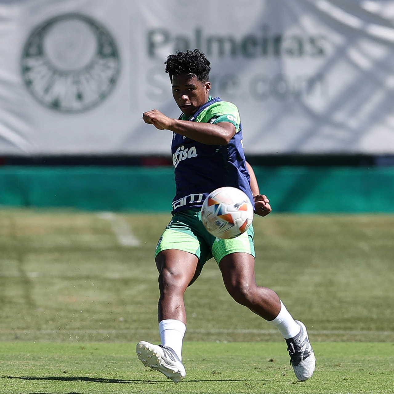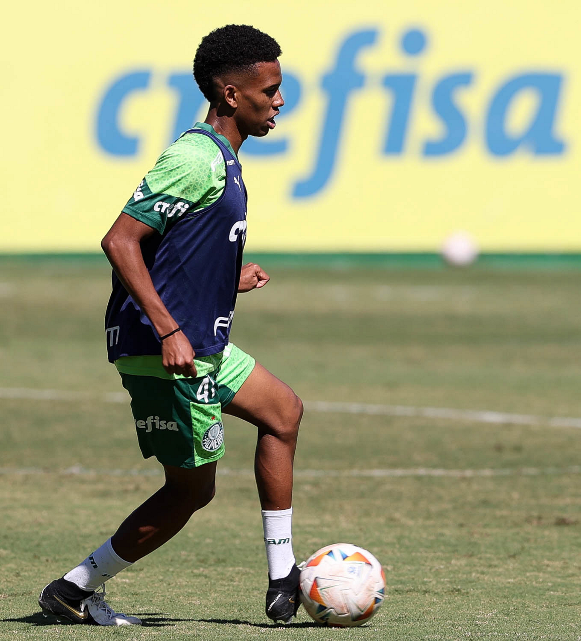 O jogador Endrick, da SE Palmeiras, durante treinamento, na Academia de Futebol. (Foto: Cesar Greco/Palmeiras/by Canon)