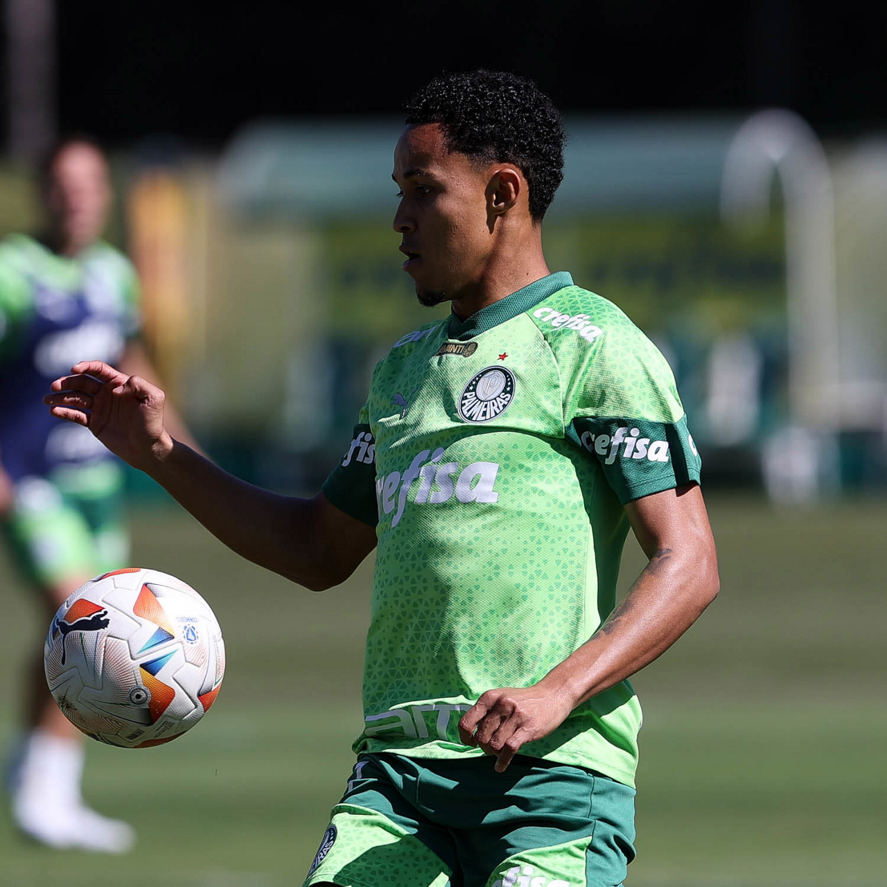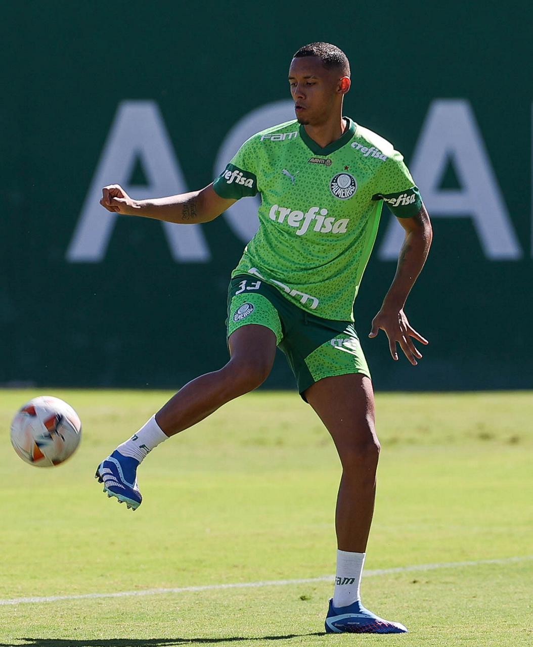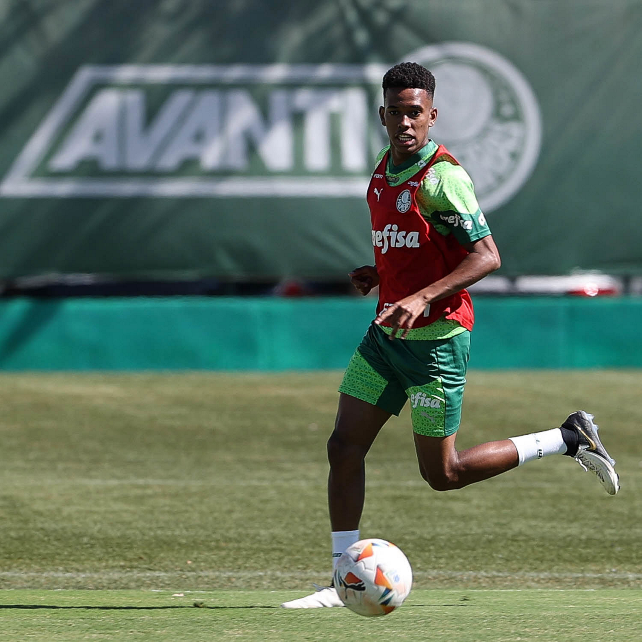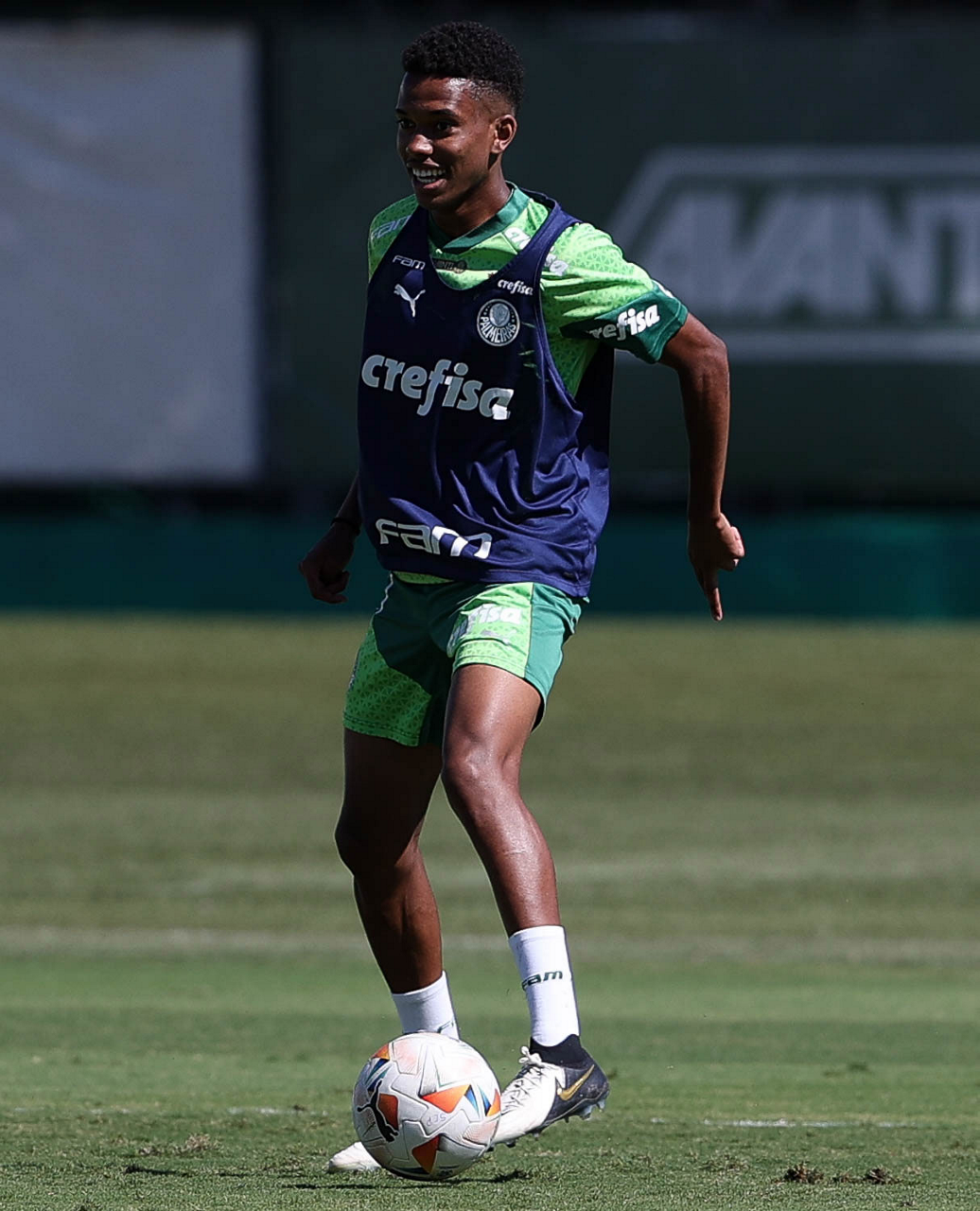 O jogador Endrick, da SE Palmeiras, durante treinamento, na Academia de Futebol. (Foto: Cesar Greco/Palmeiras/by Canon)