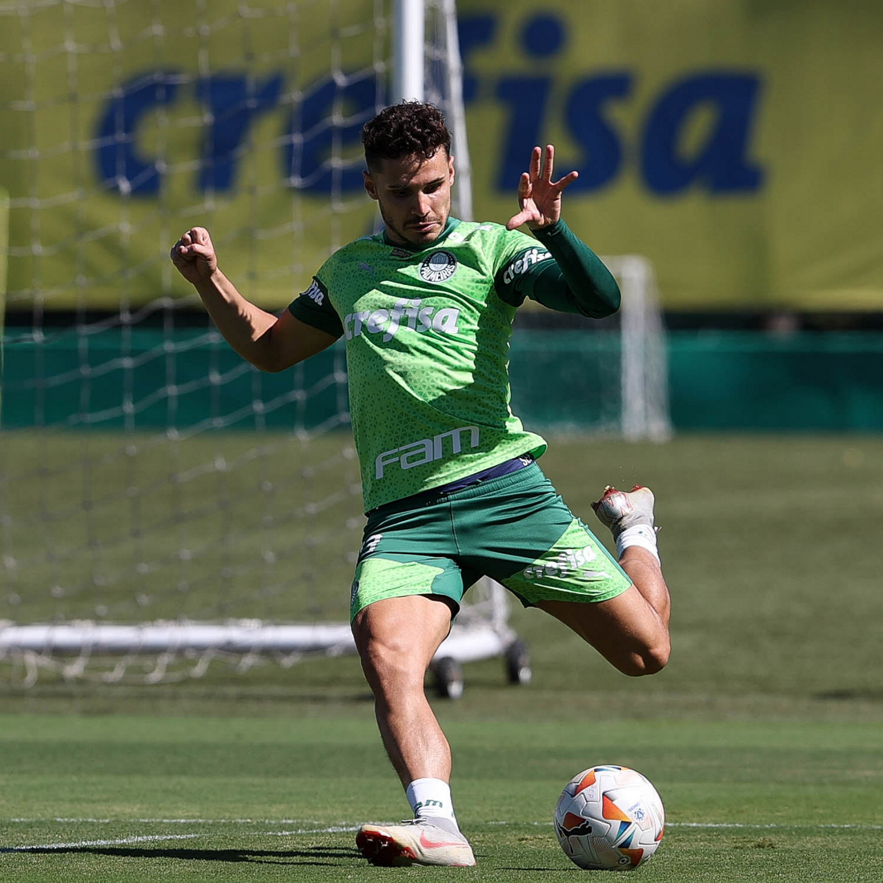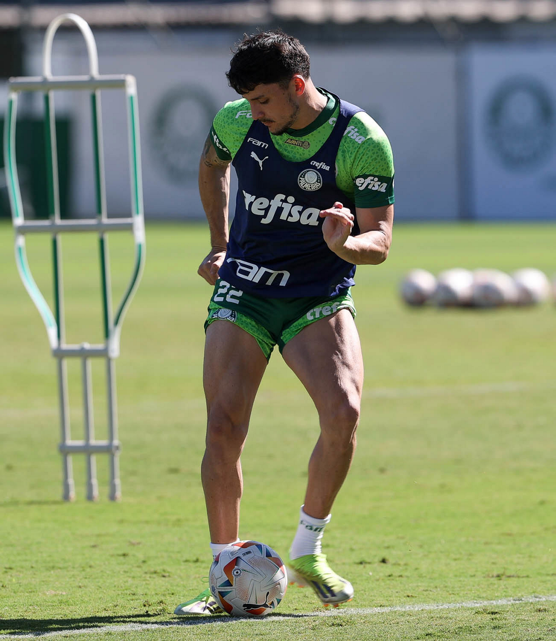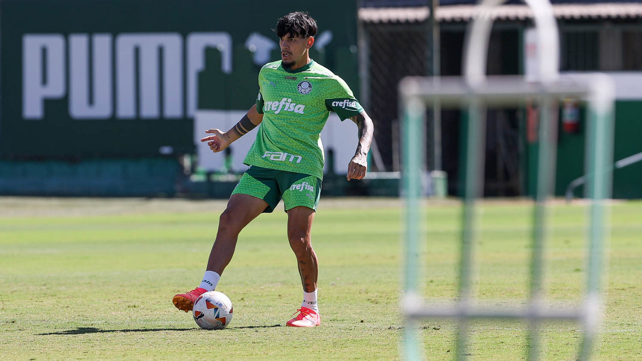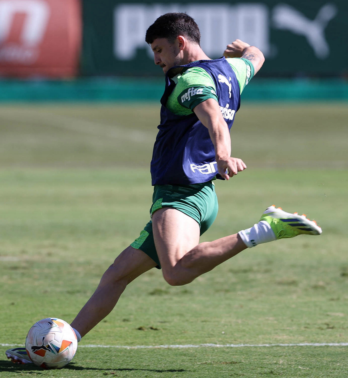 O jogador Richard Ríos, da SE Palmeiras, durante treinamento, na Academia de Futebol. (Foto: Cesar Greco/Palmeiras/by Canon)
