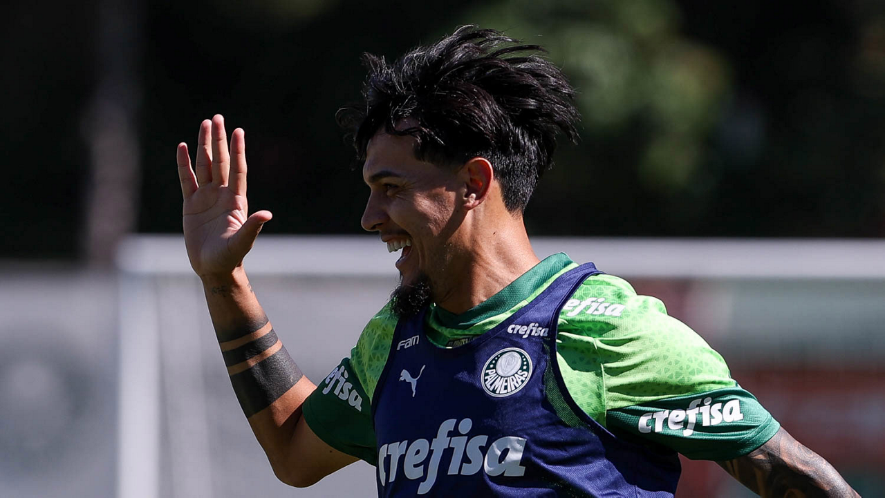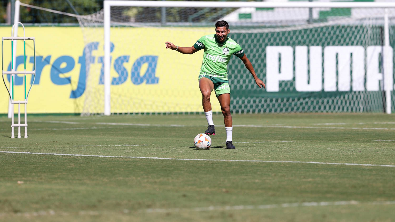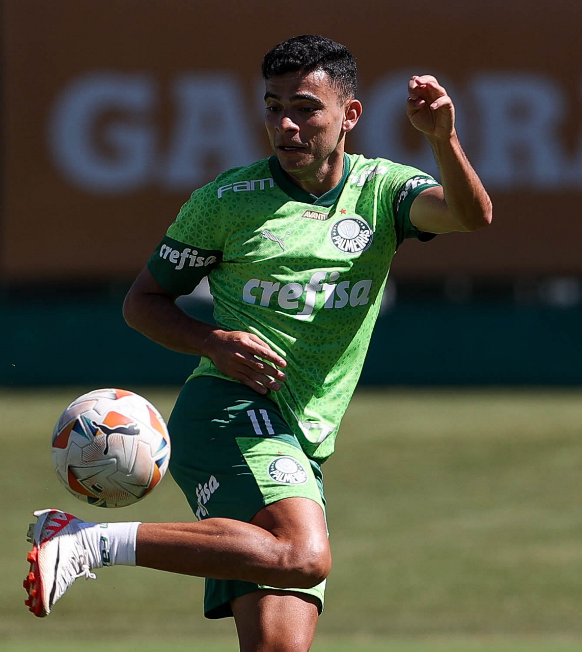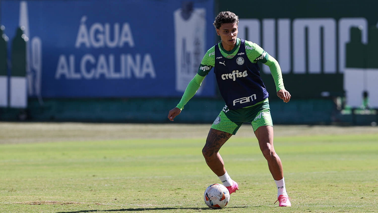 O jogador Richard Ríos, da SE Palmeiras, durante treinamento, na Academia de Futebol. (Foto: Cesar Greco/Palmeiras/by Canon)