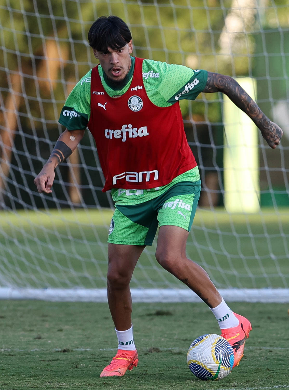 O jogador Gabriel Menino, da SE Palmeiras, durante treinamento, na Academia de Futebol. (Foto: Cesar Greco/Palmeiras/by Canon)