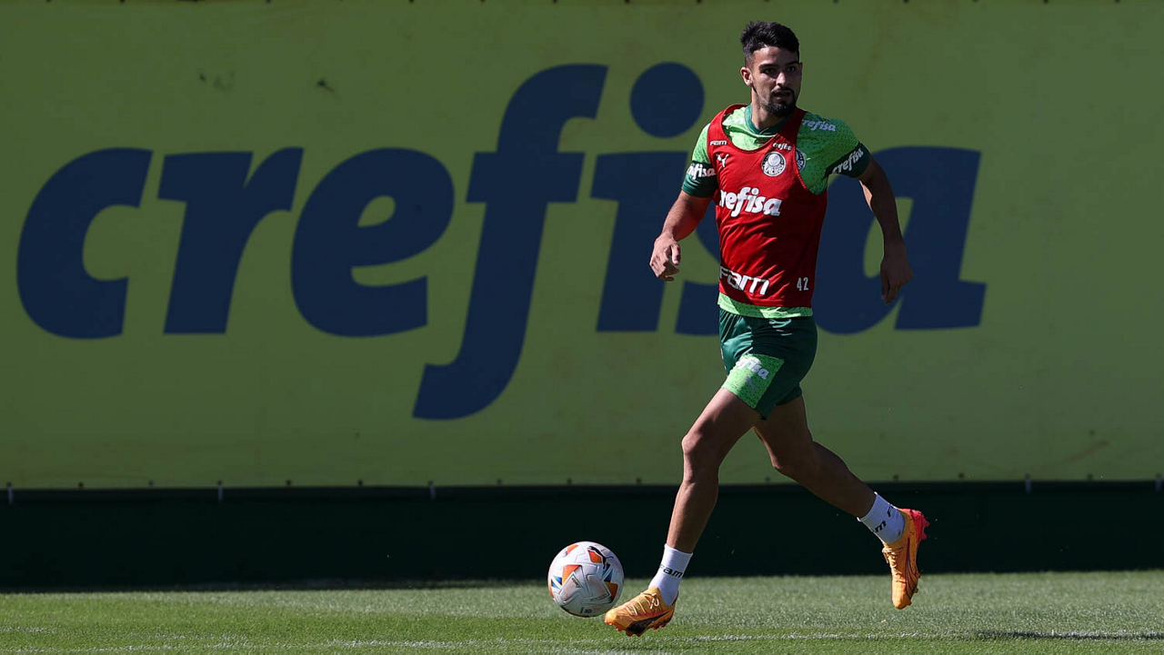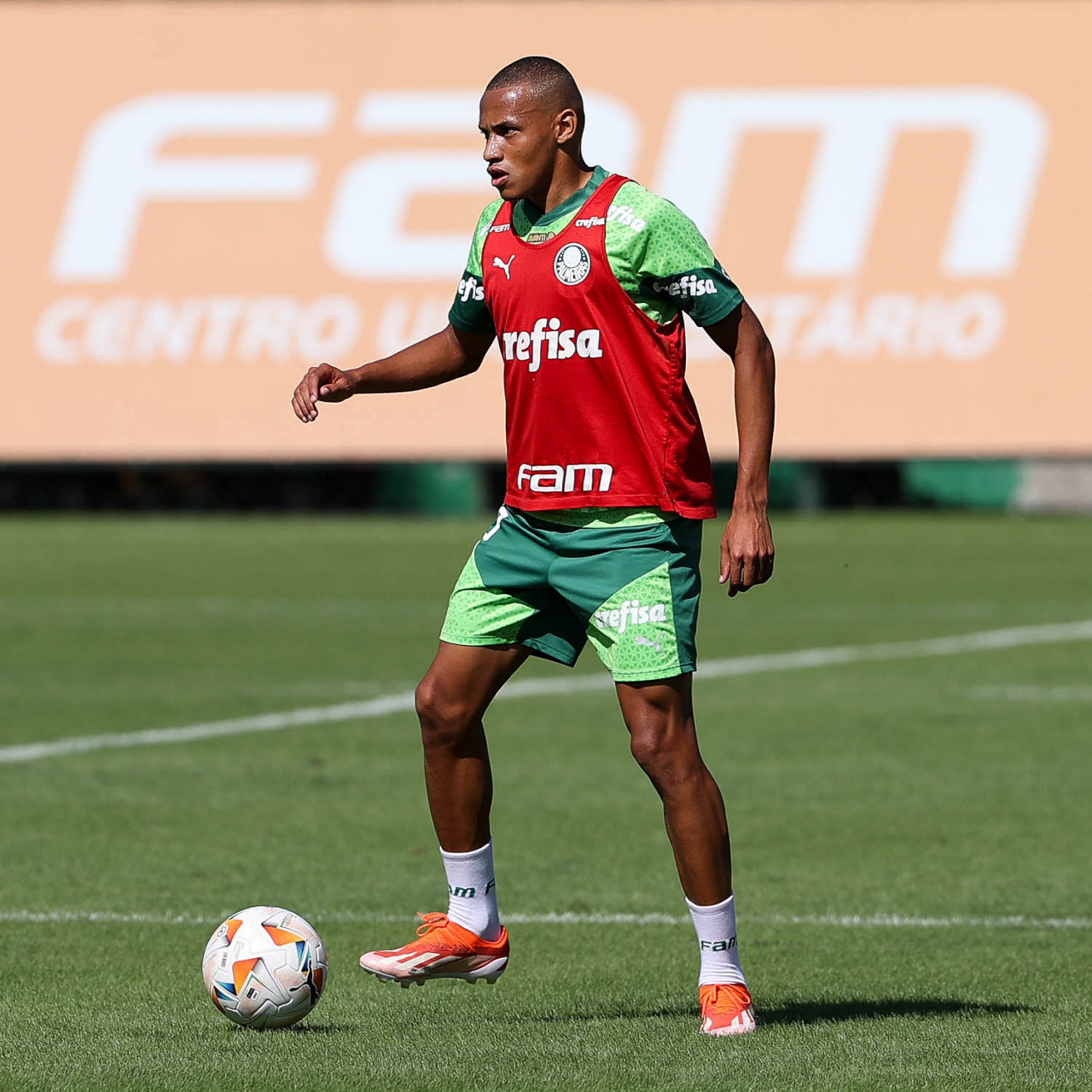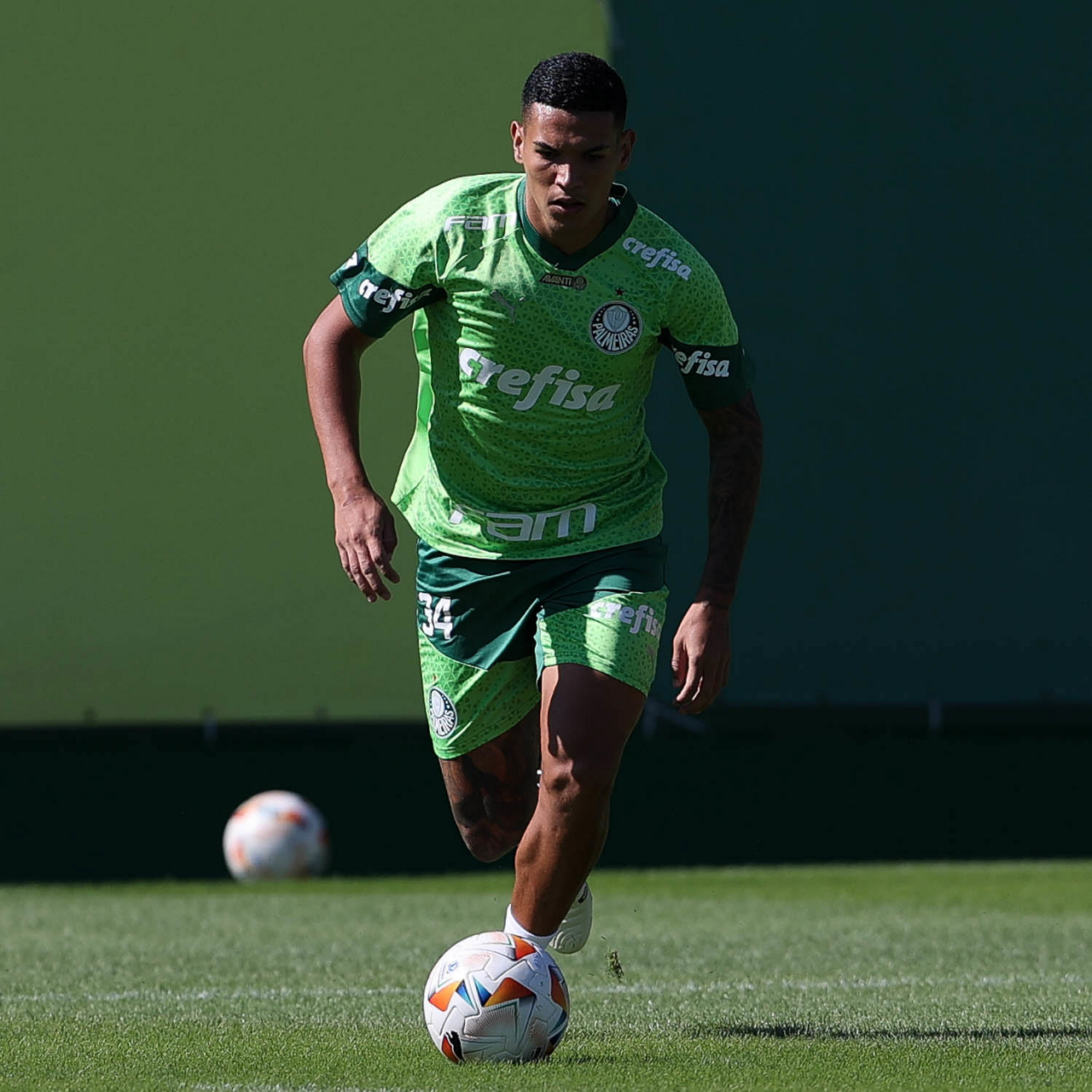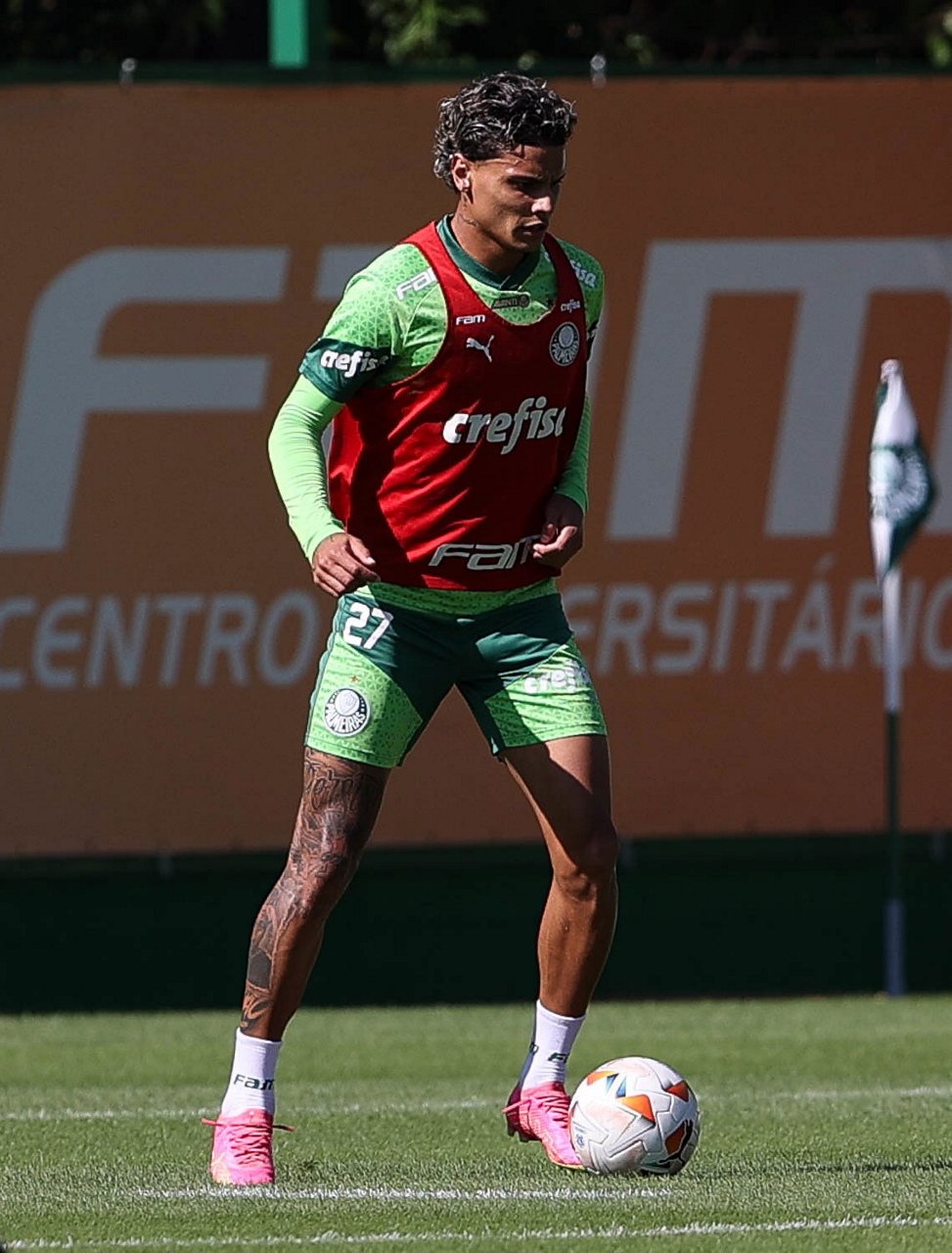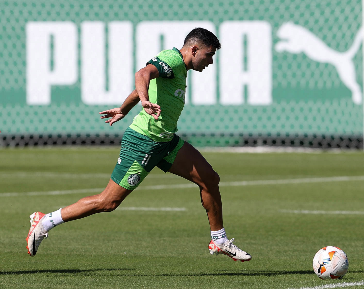 O jogador Richard Ríos, da SE Palmeiras, durante treinamento, na Academia de Futebol. (Foto: Cesar Greco/Palmeiras/by Canon)