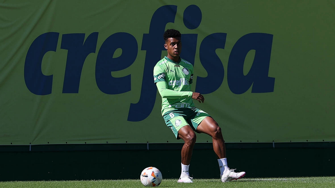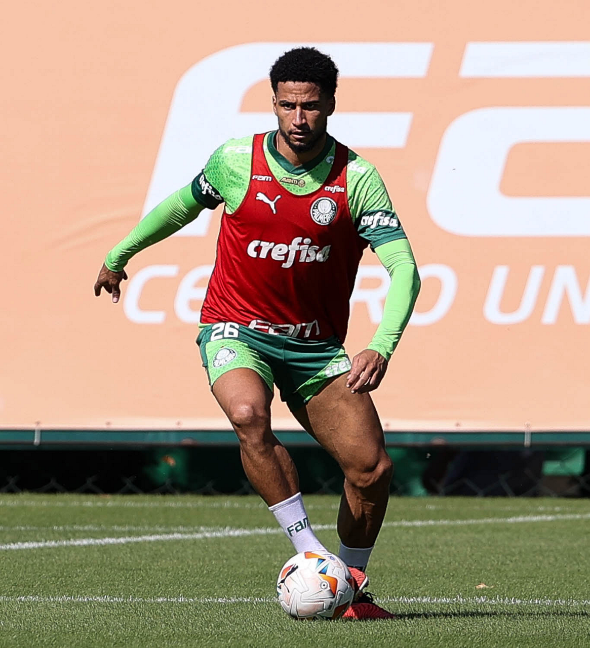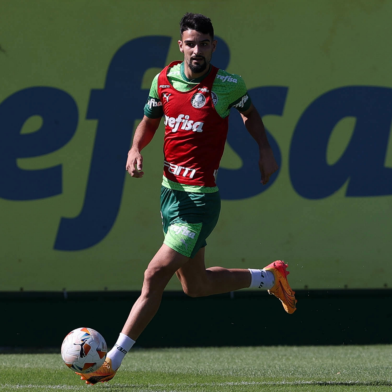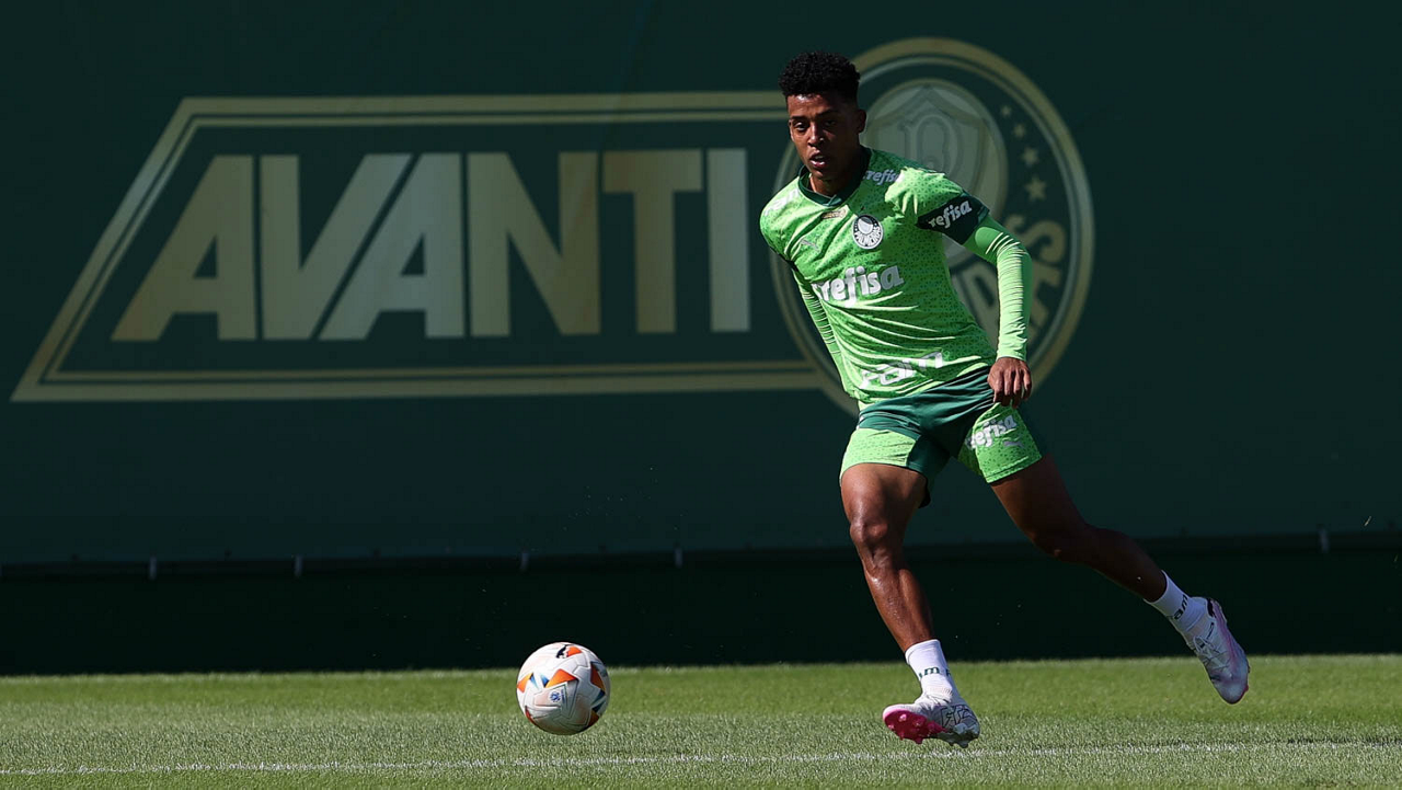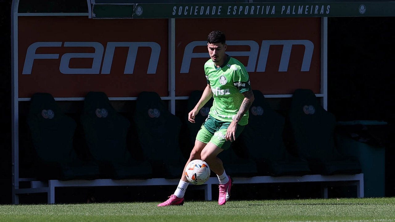 O jogador Richard Ríos, da SE Palmeiras, durante treinamento, na Academia de Futebol. (Foto: Cesar Greco/Palmeiras/by Canon)