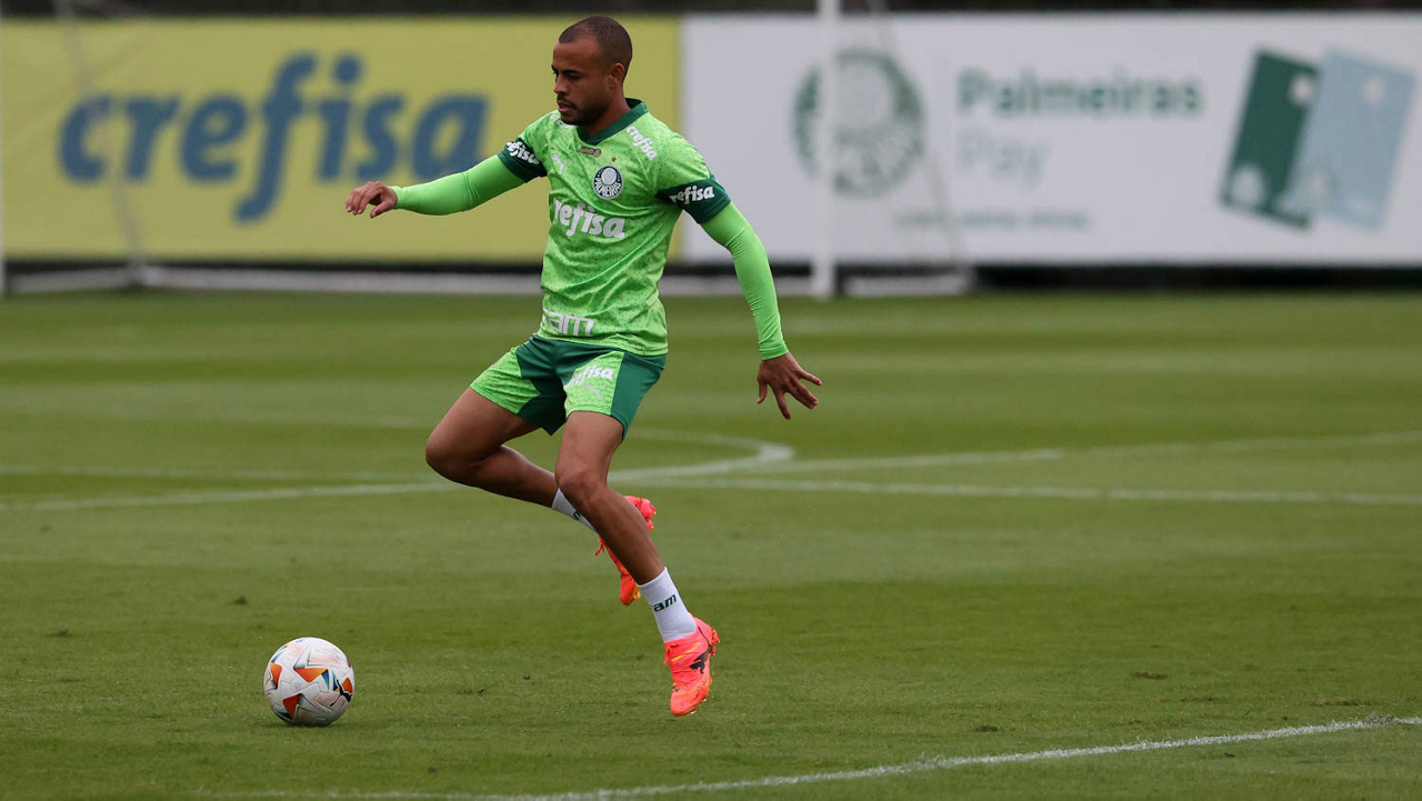 O jogador Mayke, da SE Palmeiras, durante treinamento, na Academia de Futebol. (Foto: Cesar Greco/Palmeiras/by Canon)