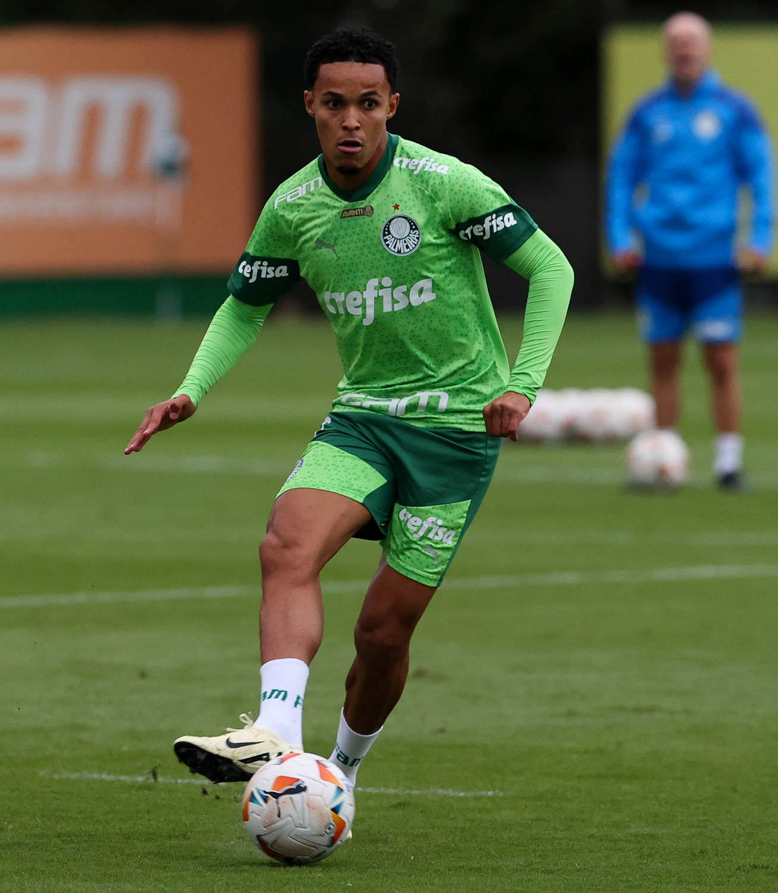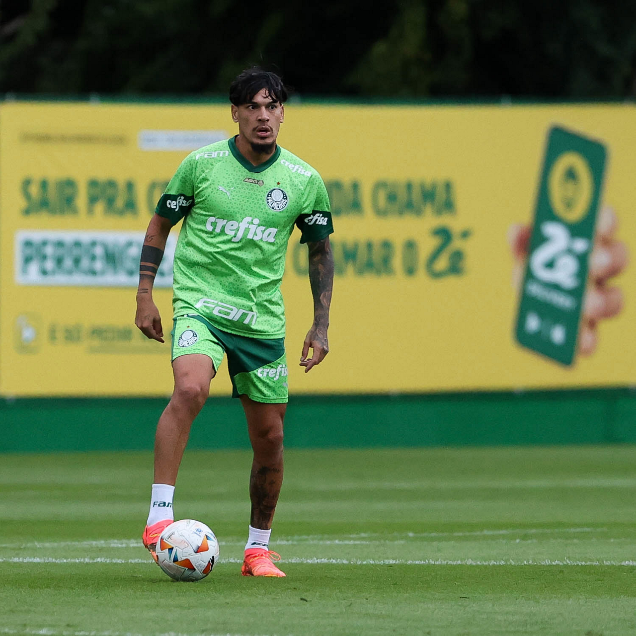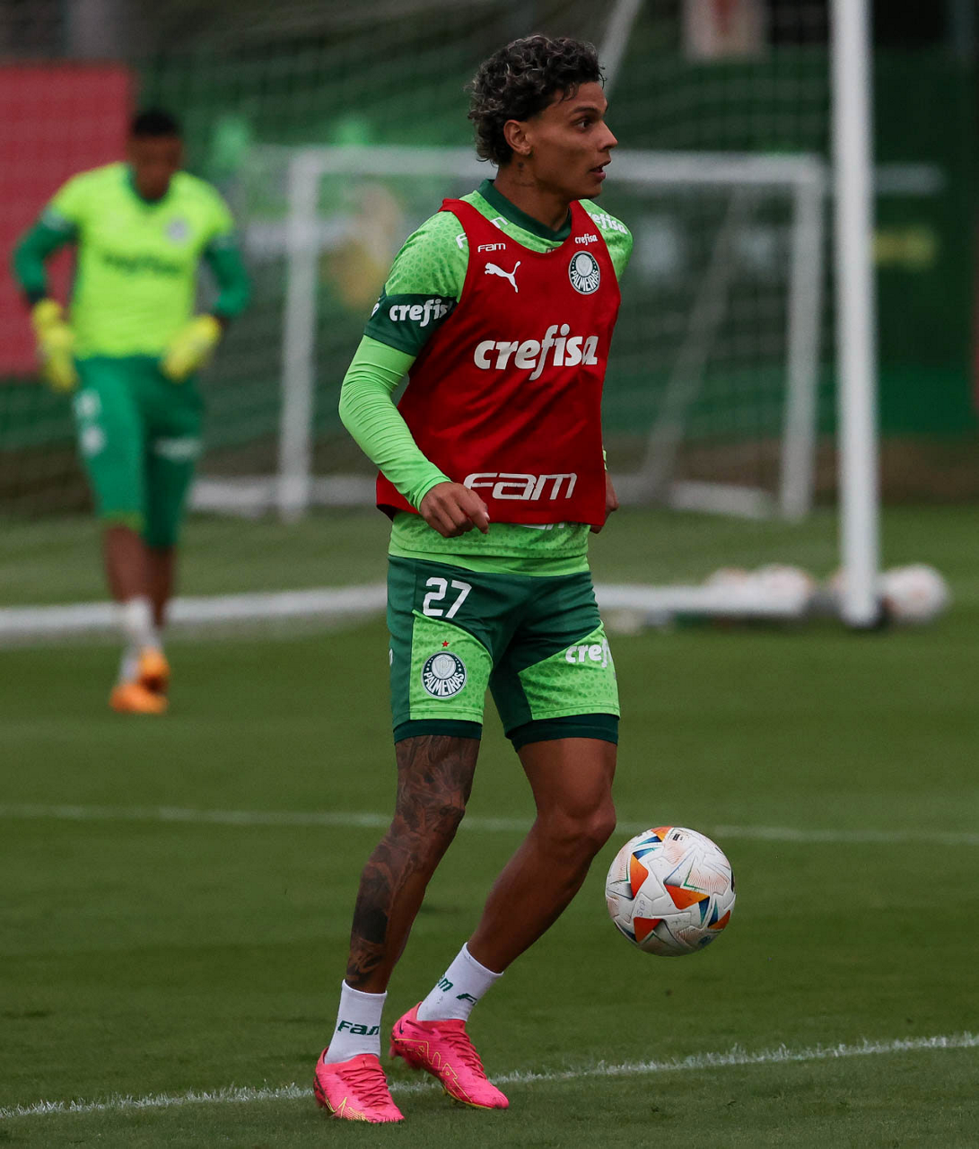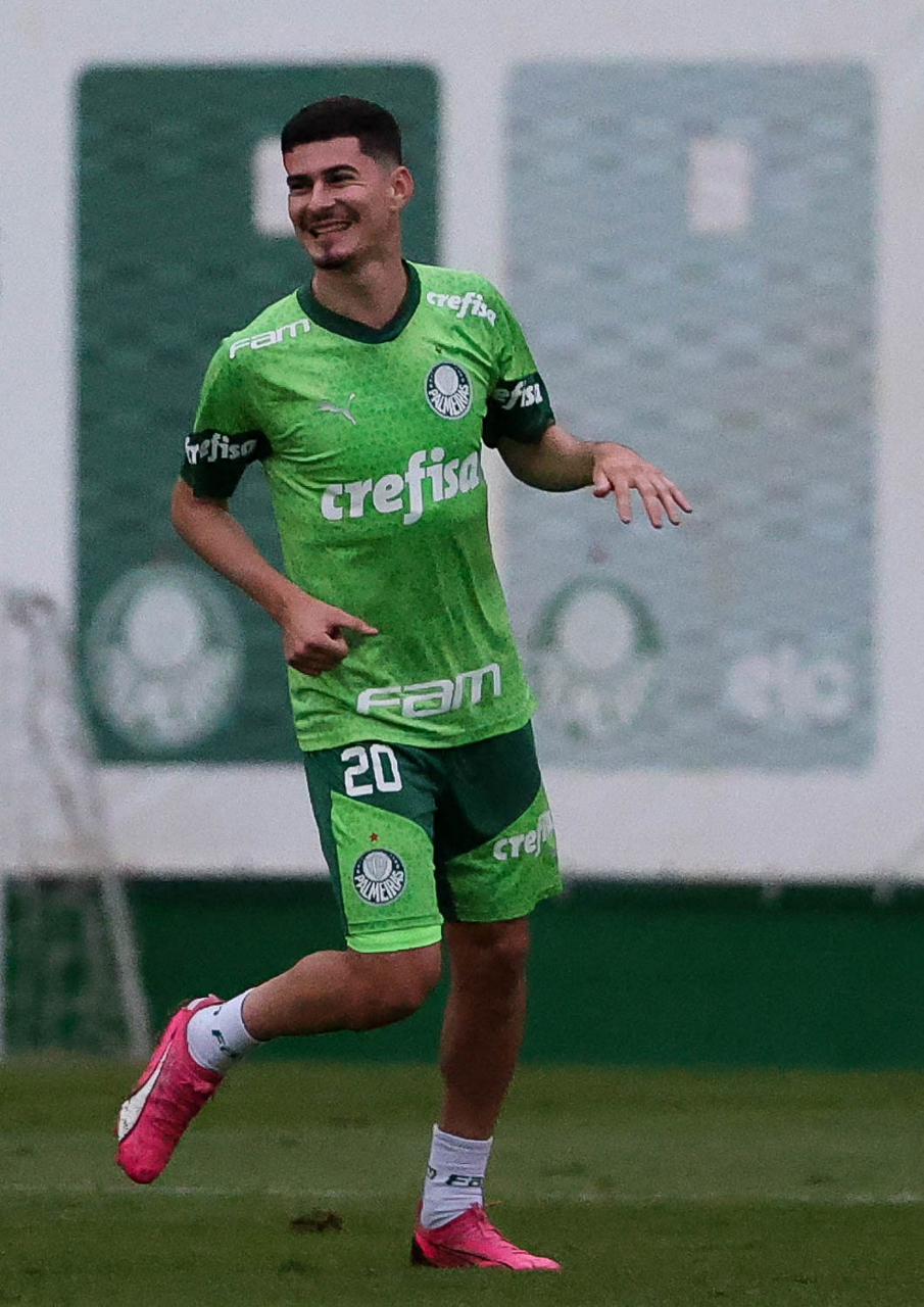 O jogador Richard Ríos, da SE Palmeiras, durante treinamento, na Academia de Futebol. (Foto: Cesar Greco/Palmeiras/by Canon)