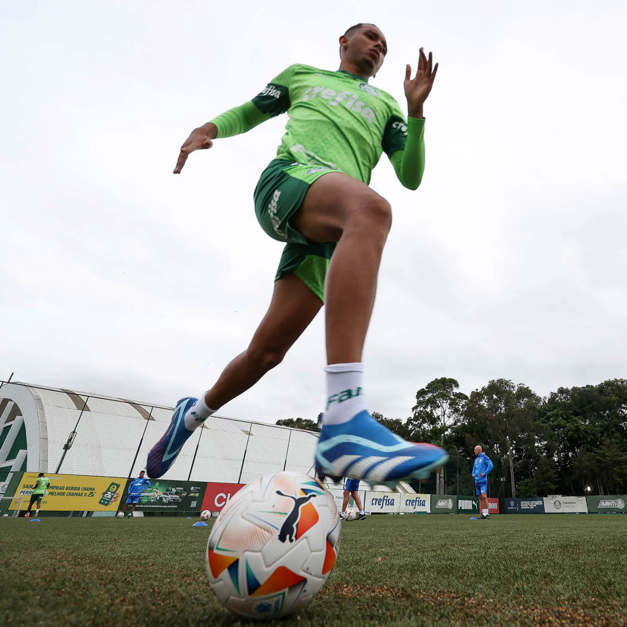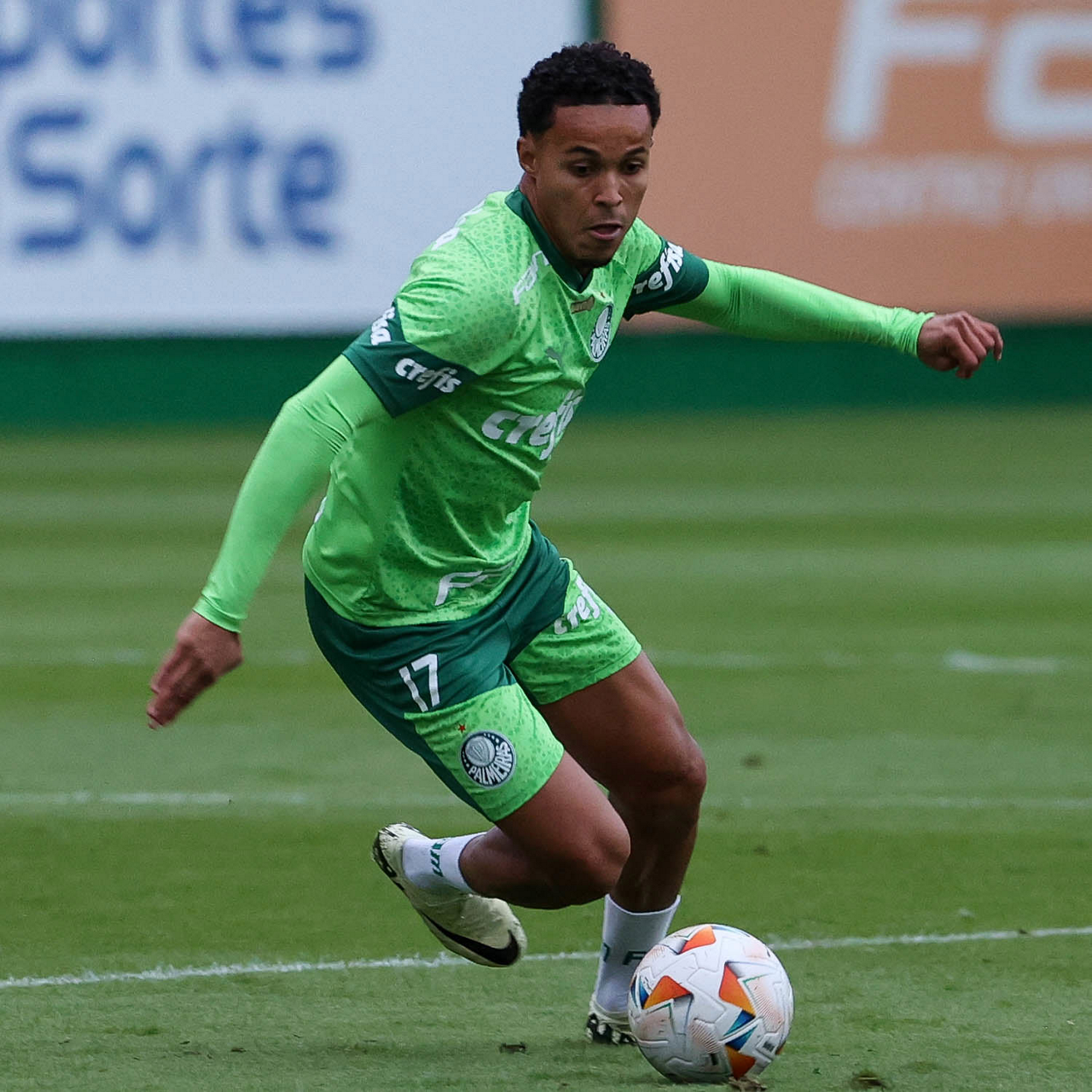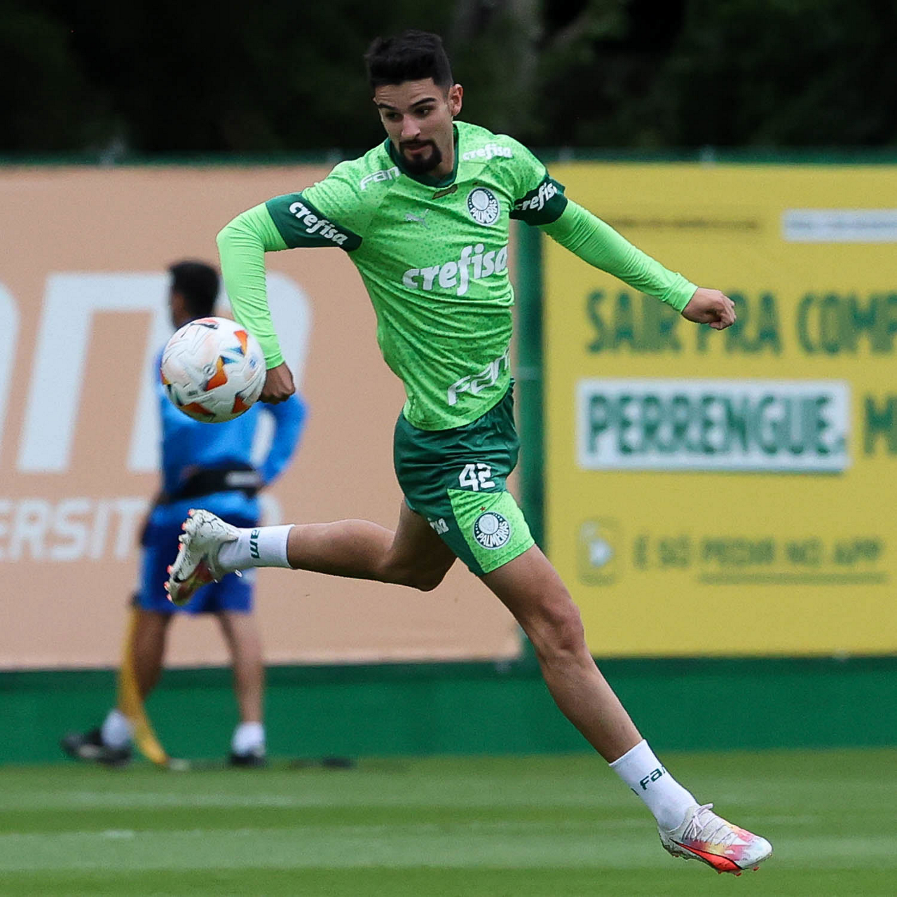 O jogador Richard Ríos, da SE Palmeiras, durante treinamento, na Academia de Futebol. (Foto: Cesar Greco/Palmeiras/by Canon)