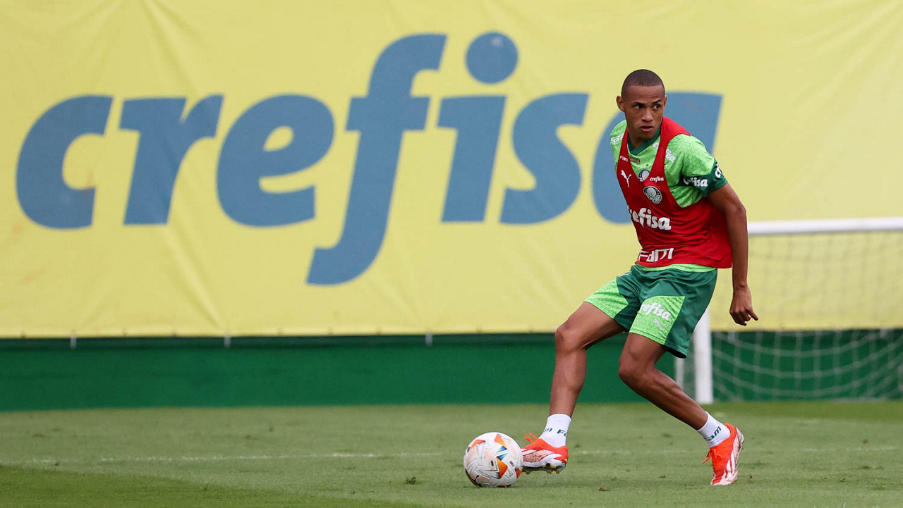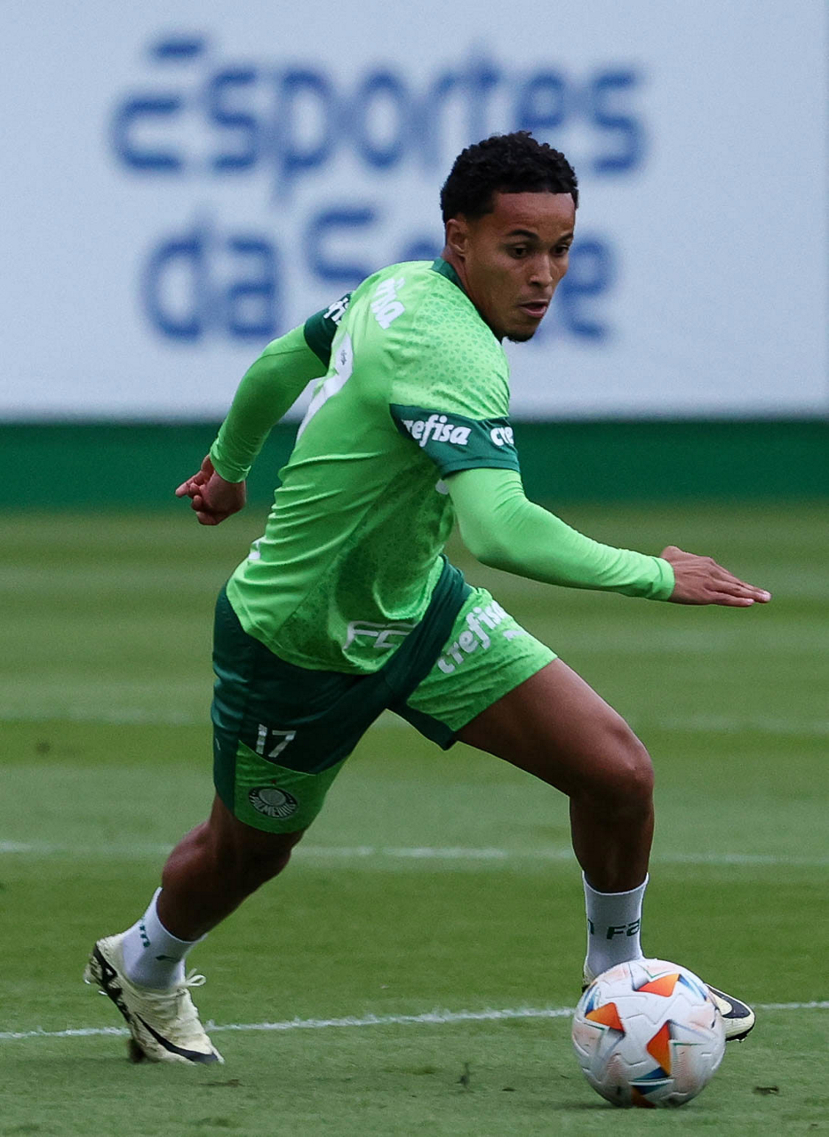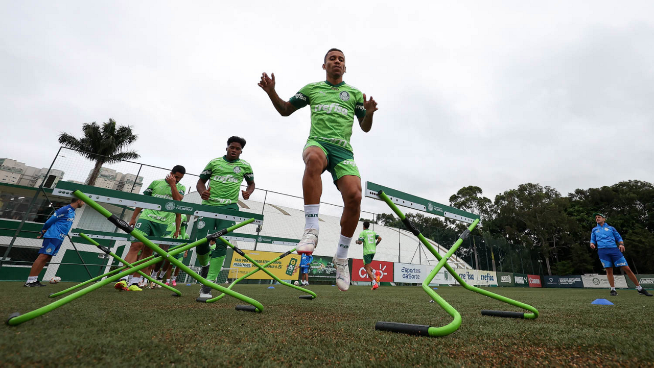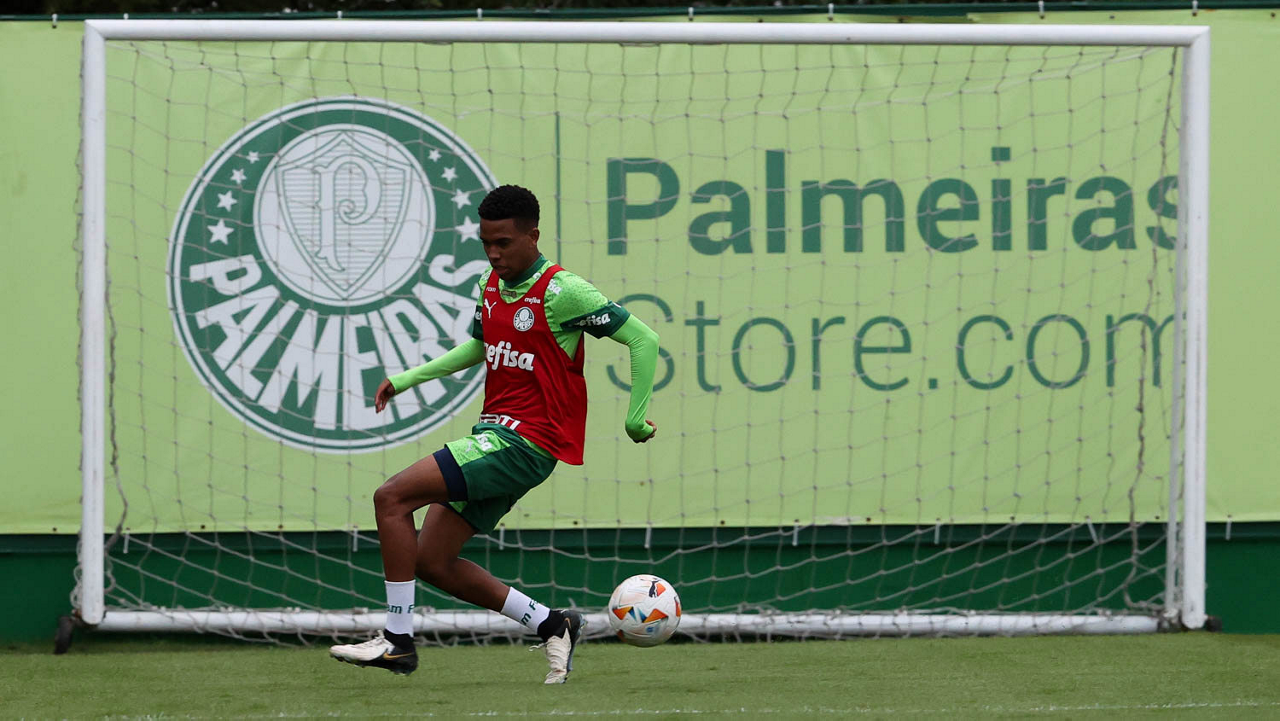 O jogador Gabriel Menino, da SE Palmeiras, durante treinamento, na Academia de Futebol. (Foto: Cesar Greco/Palmeiras/by Canon)