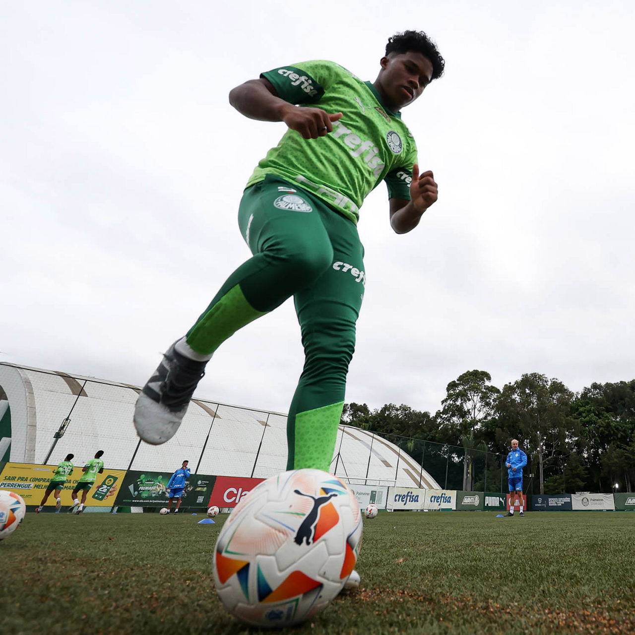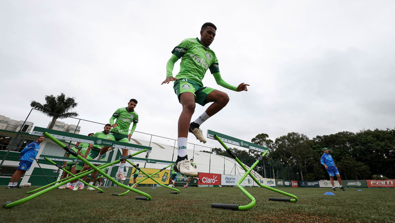 O jogador Endrick, da SE Palmeiras, durante treinamento, na Academia de Futebol. (Foto: Cesar Greco/Palmeiras/by Canon)