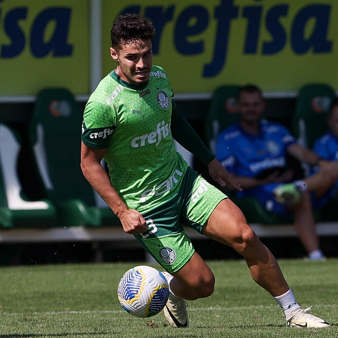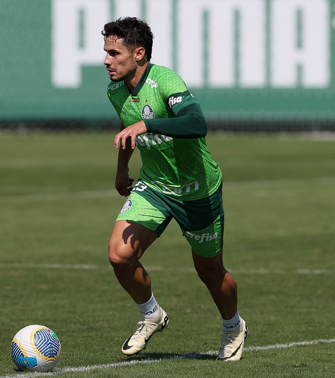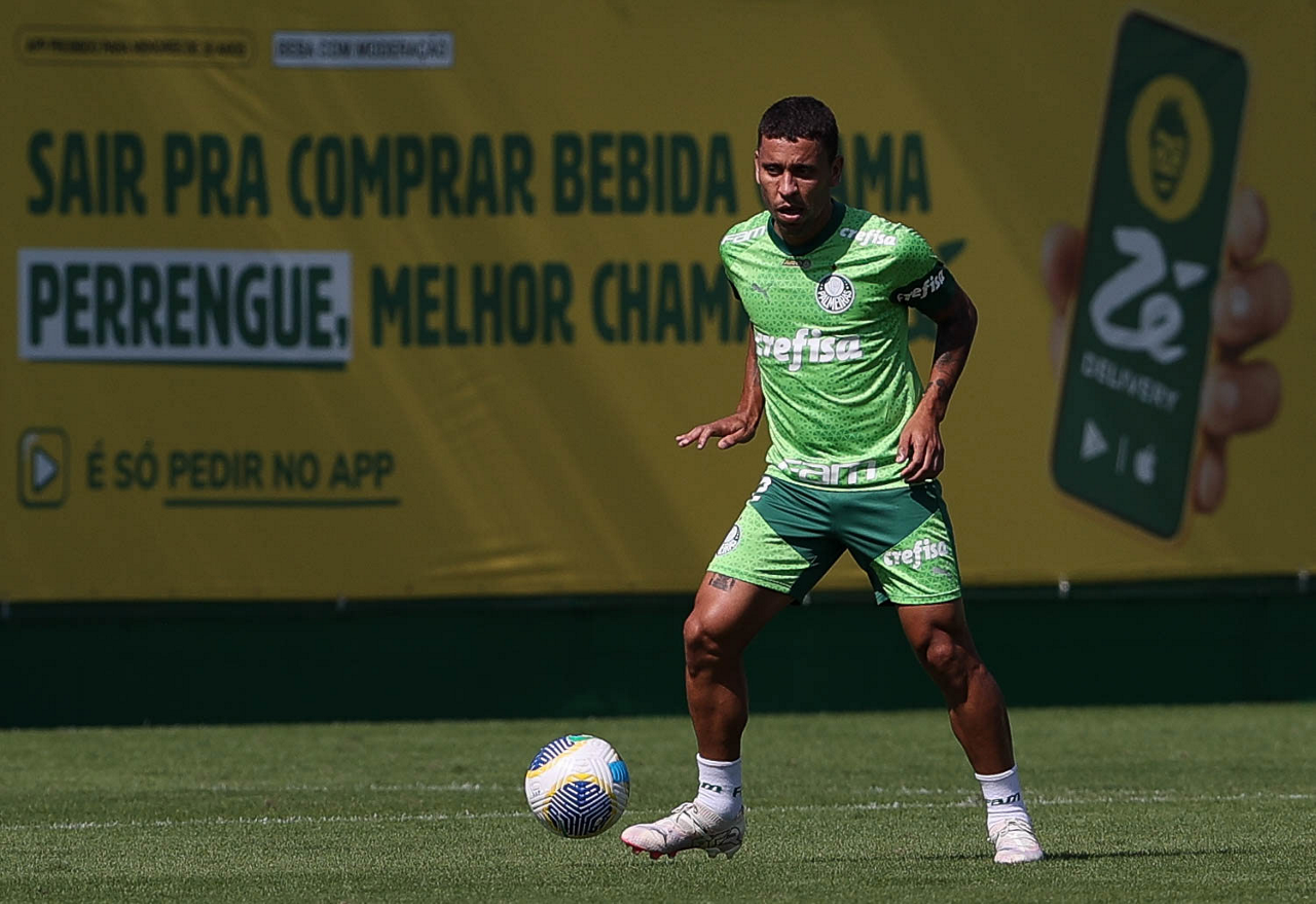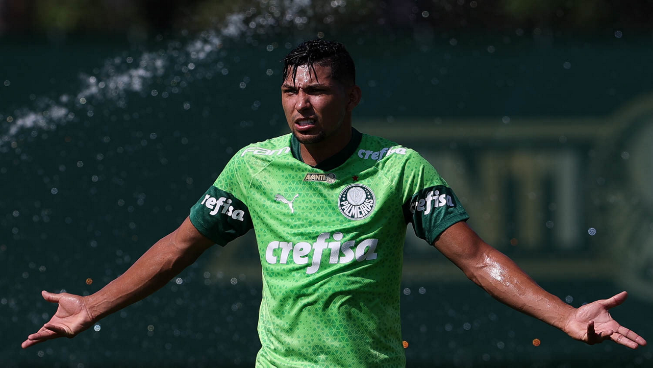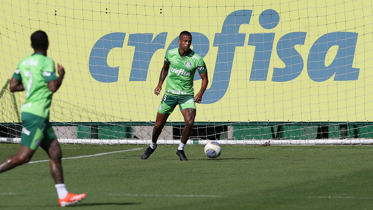 O jogador Richard Ríos, da SE Palmeiras, durante jogo-treino contra a equipe do São Bento, na Academia de Futebol. (Foto: Cesar Greco/Palmeiras/by Canon)