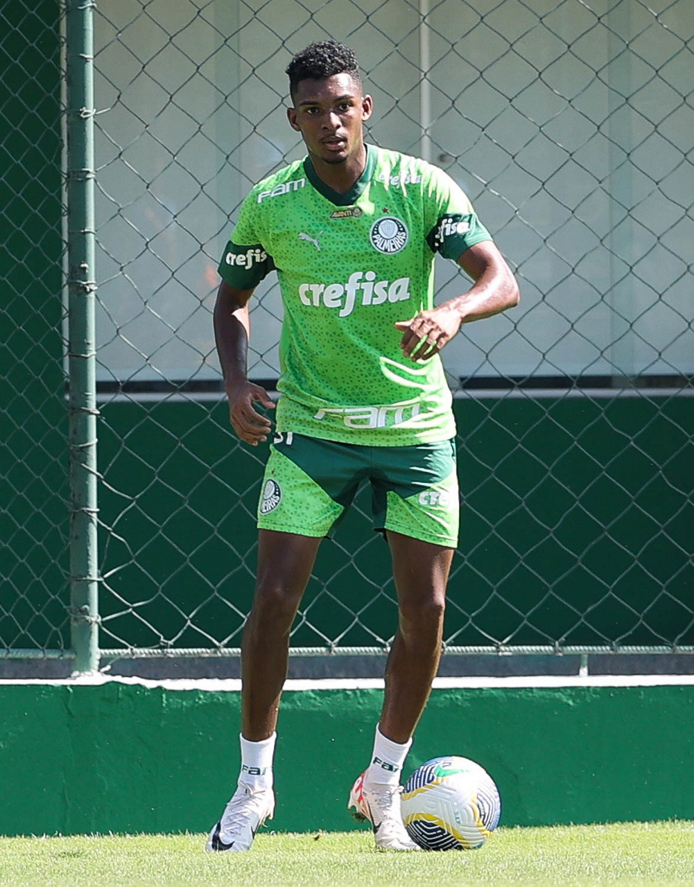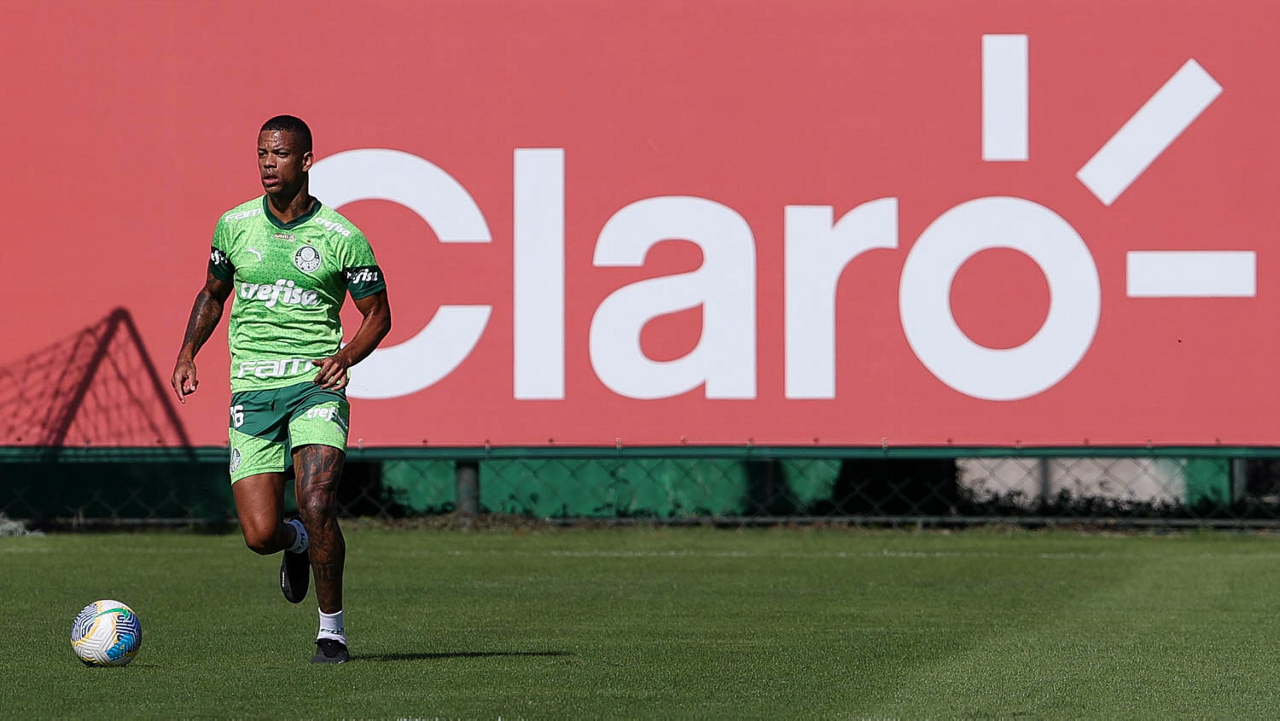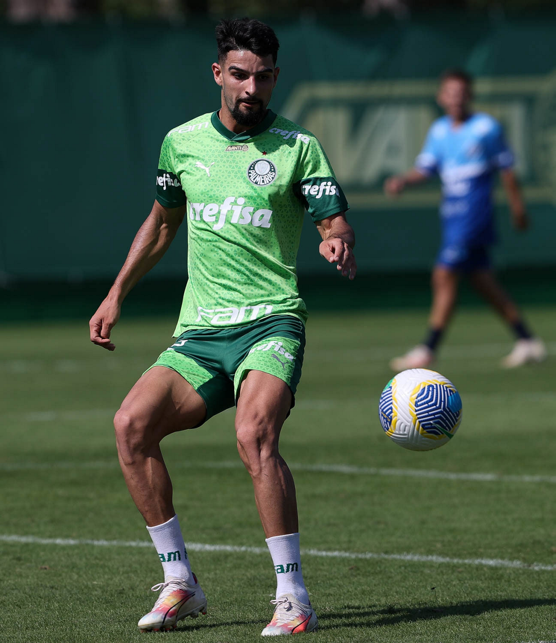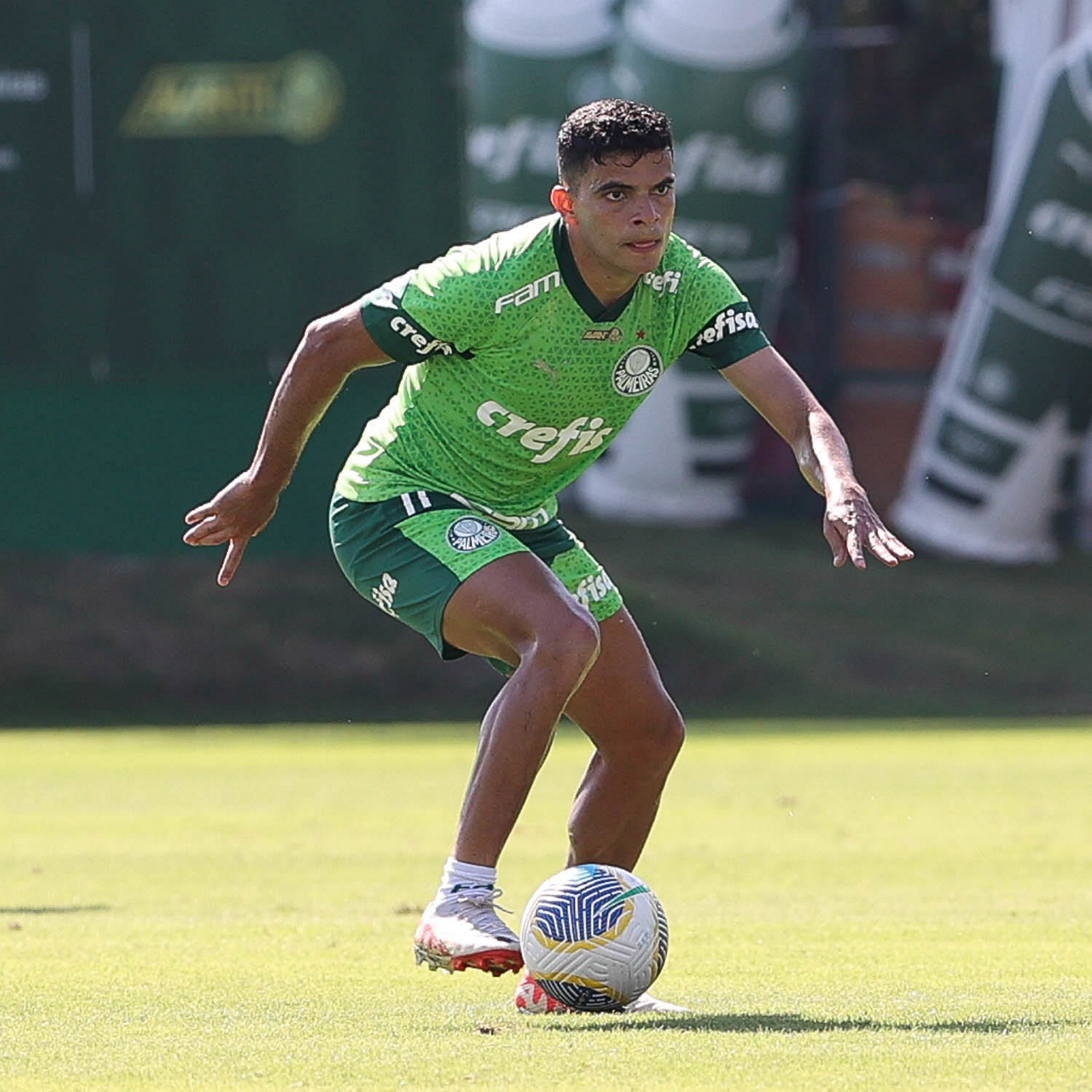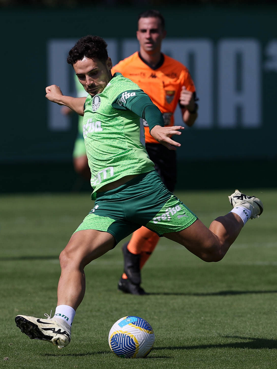 O jogador Richard Ríos, da SE Palmeiras, durante jogo-treino contra a equipe do São Bento, na Academia de Futebol. (Foto: Cesar Greco/Palmeiras/by Canon)