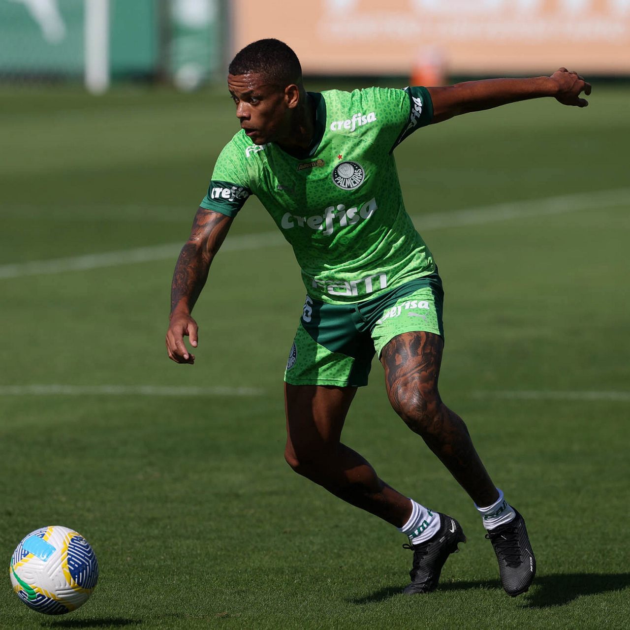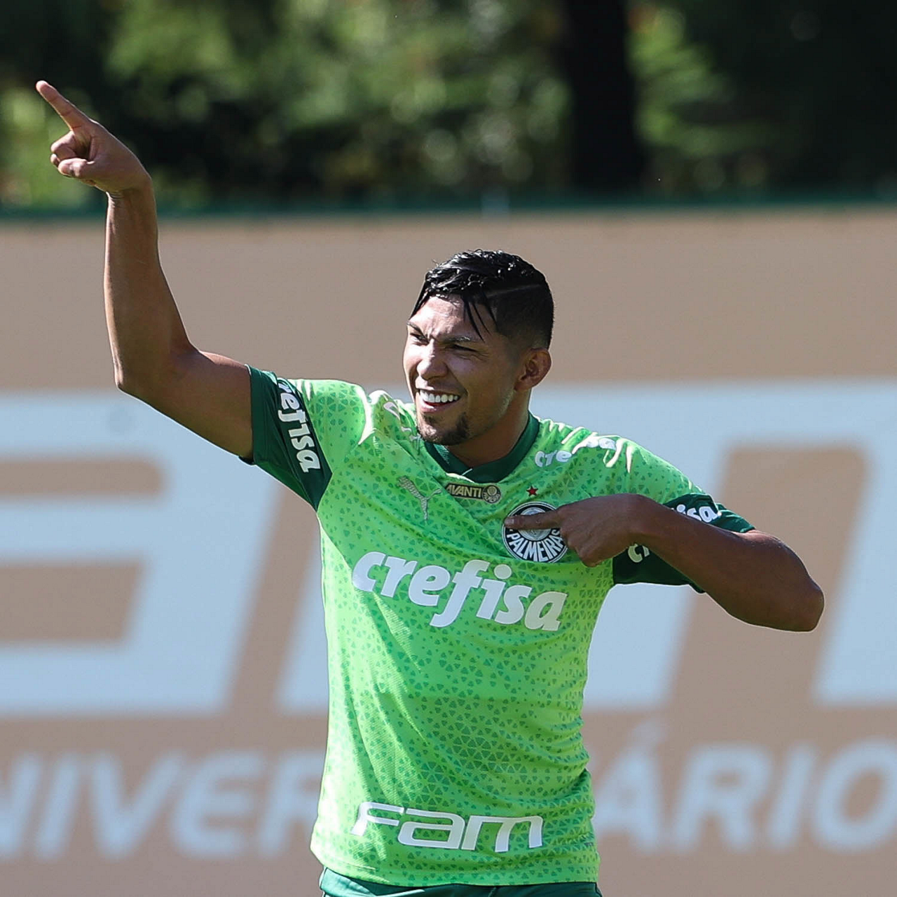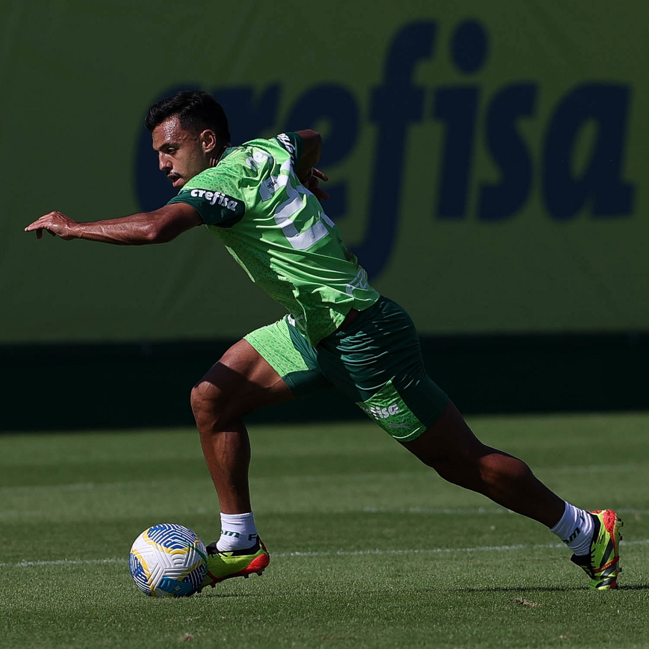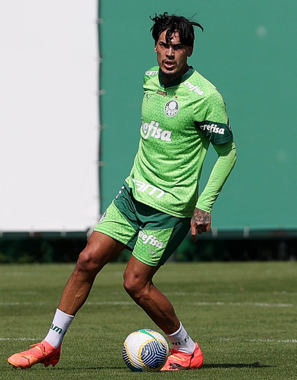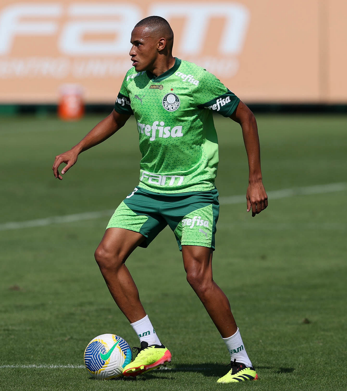 O jogador Richard Ríos, da SE Palmeiras, durante jogo-treino contra a equipe do São Bento, na Academia de Futebol. (Foto: Cesar Greco/Palmeiras/by Canon)