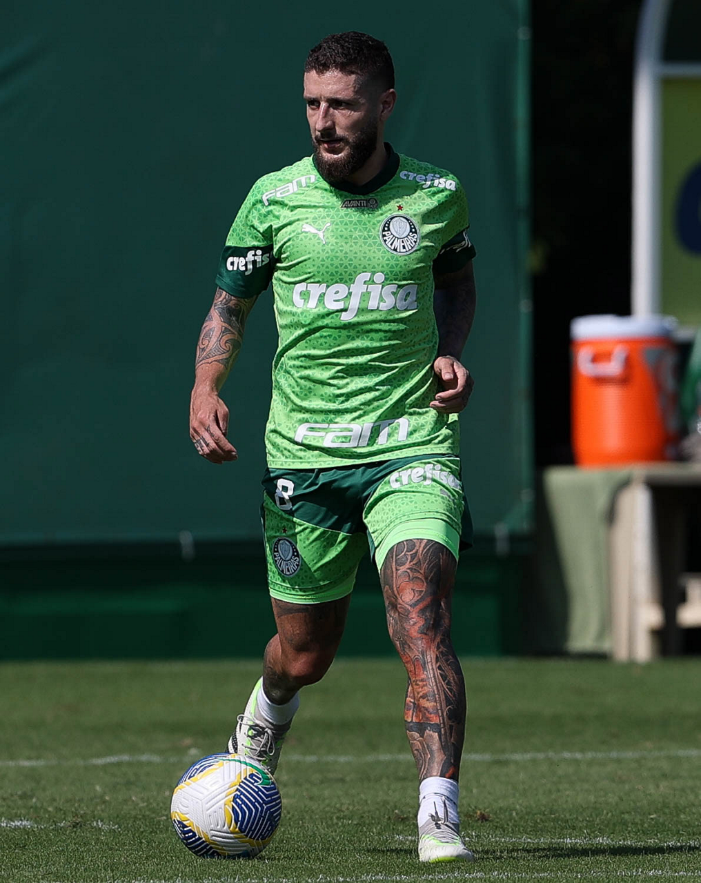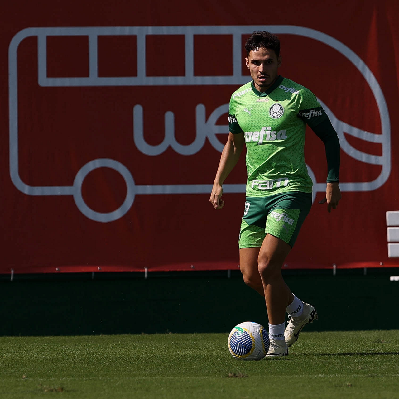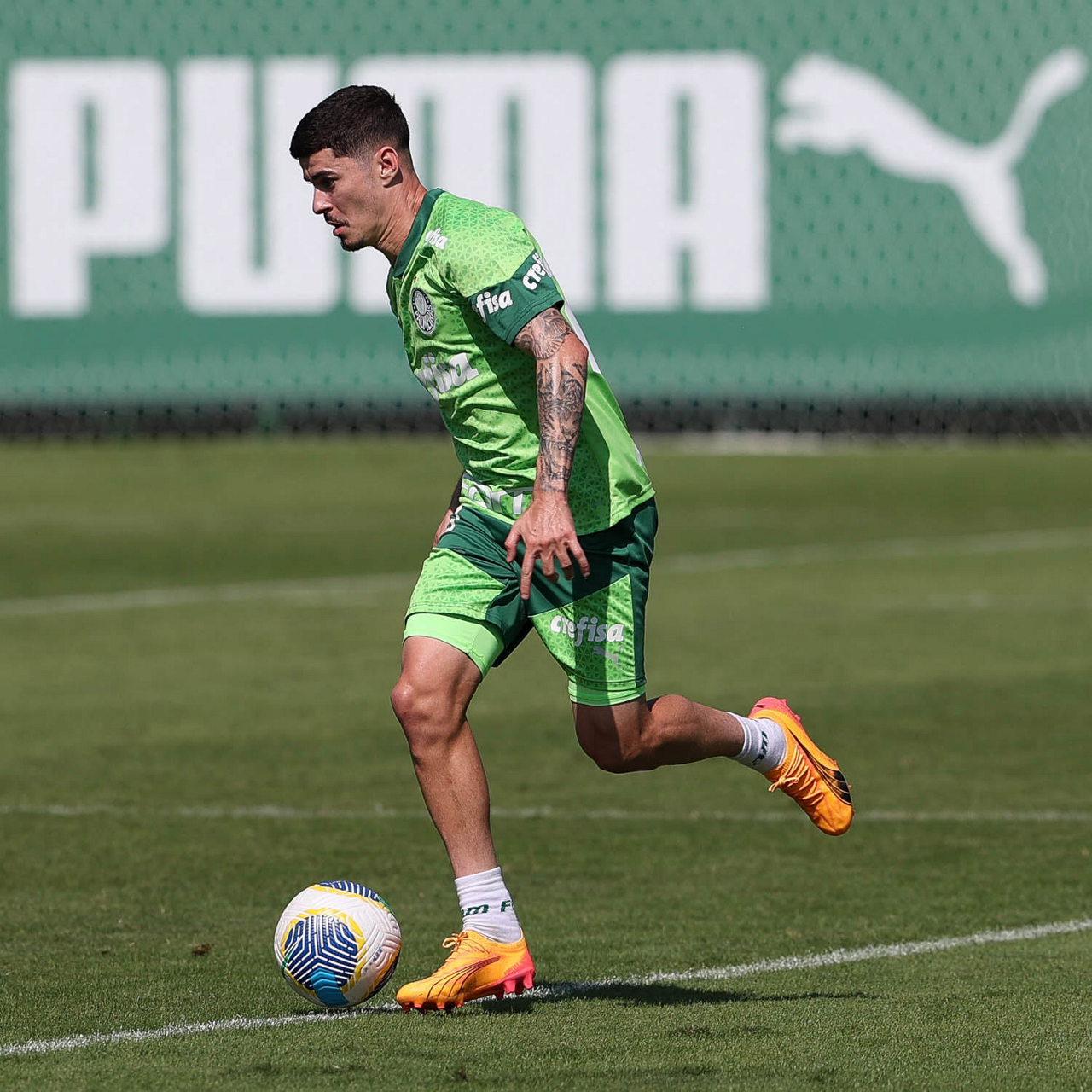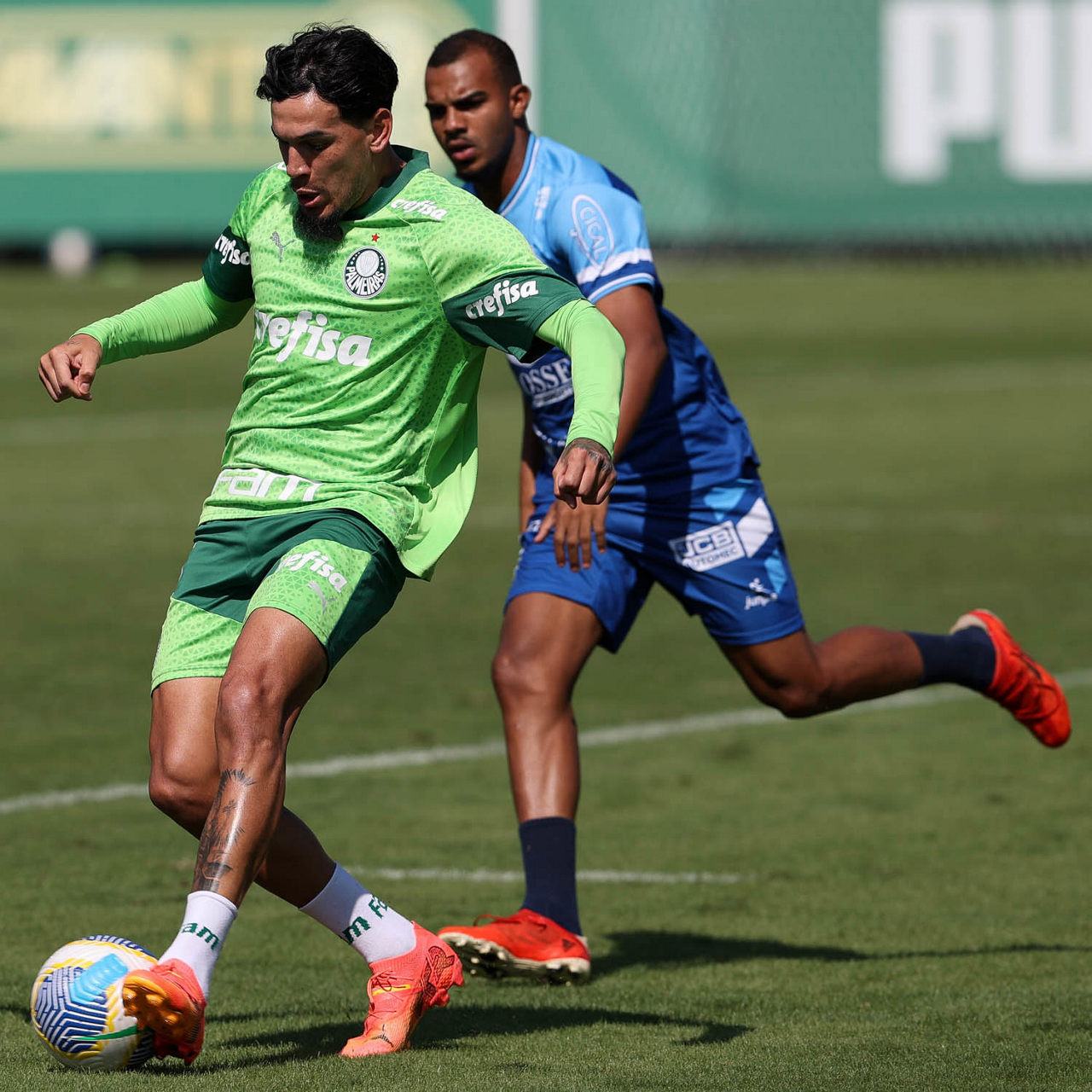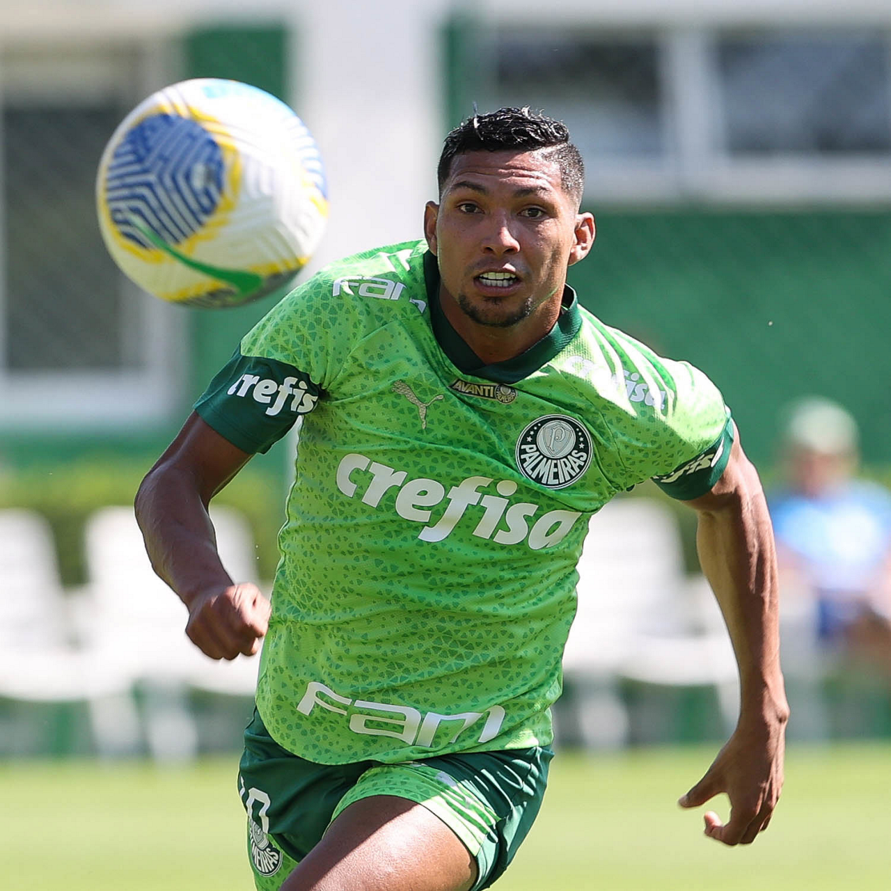 O jogador Richard Ríos, da SE Palmeiras, durante jogo-treino contra a equipe do São Bento, na Academia de Futebol. (Foto: Cesar Greco/Palmeiras/by Canon)