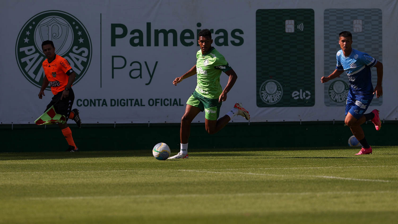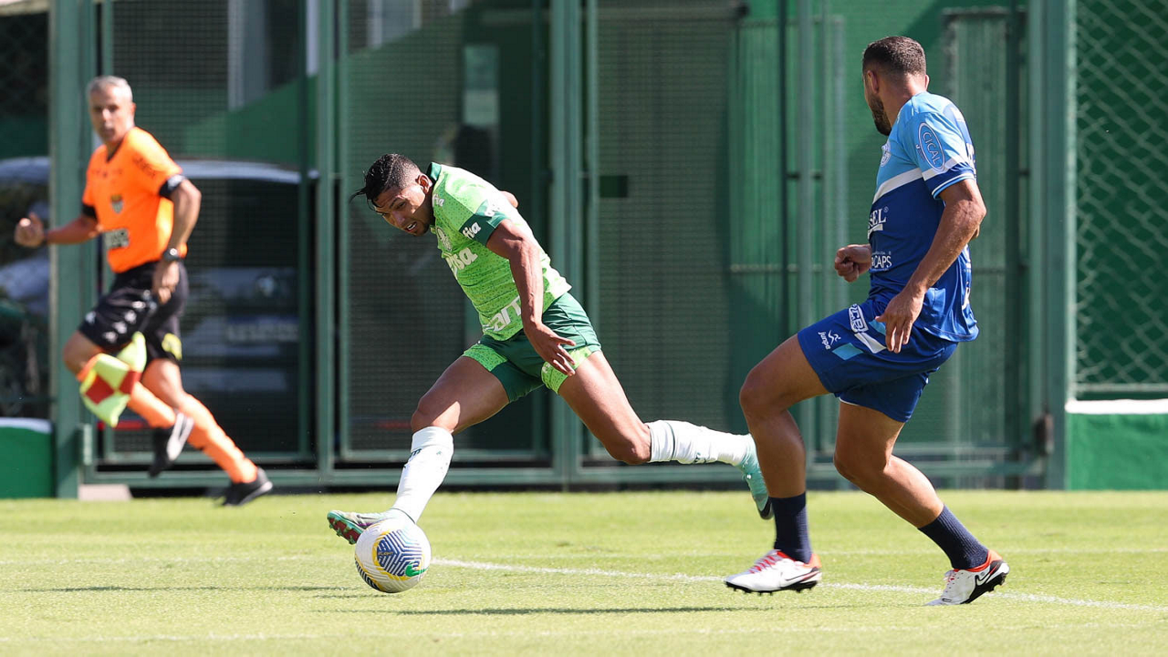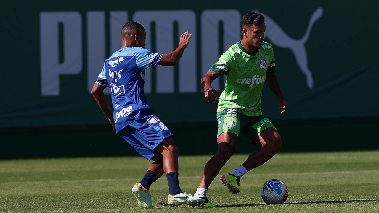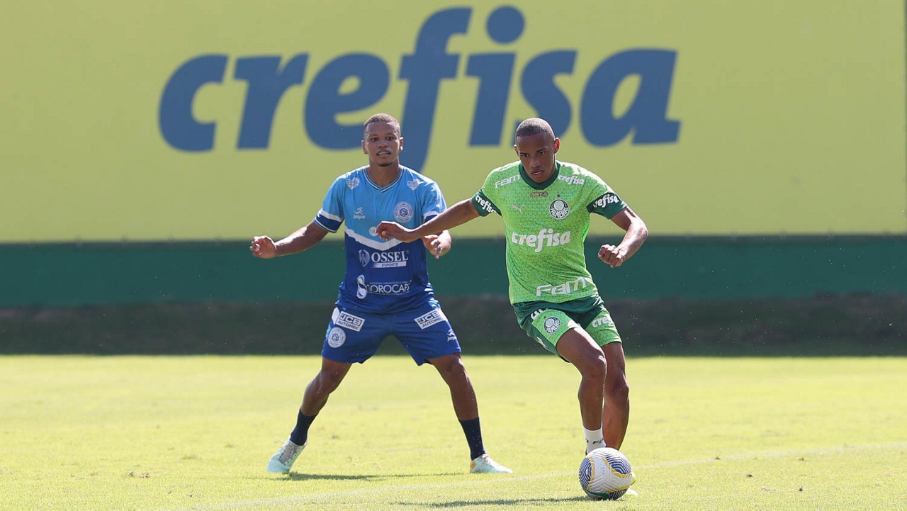 O jogador Gabriel Menino, da SE Palmeiras, durante jogo-treino contra a equipe do São Bento, na Academia de Futebol. (Foto: Cesar Greco/Palmeiras/by Canon)