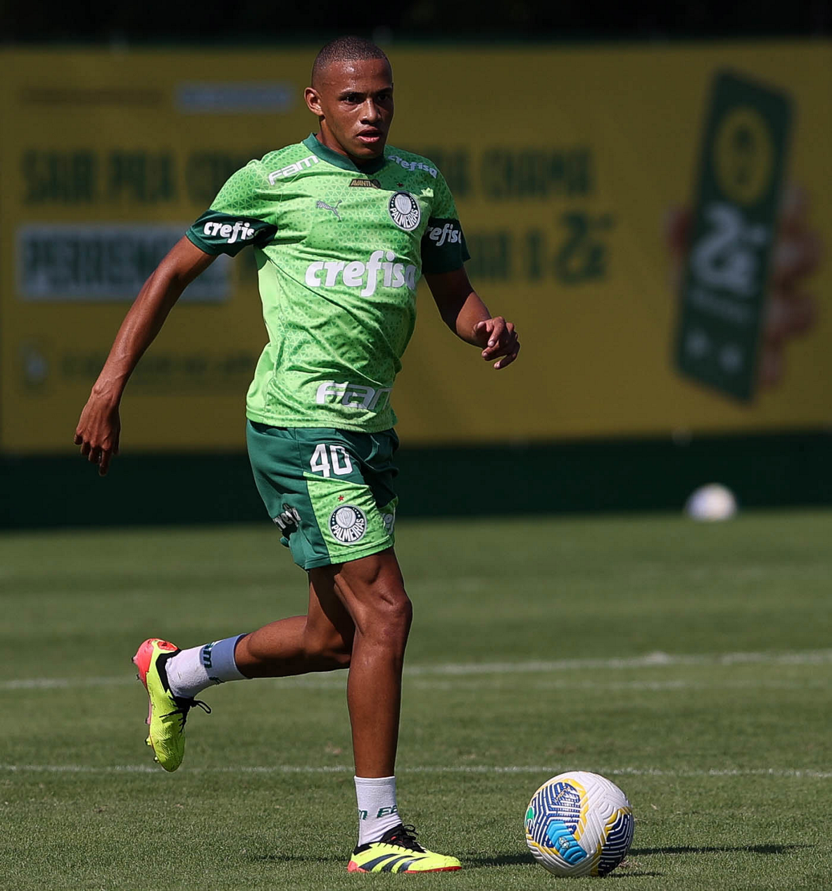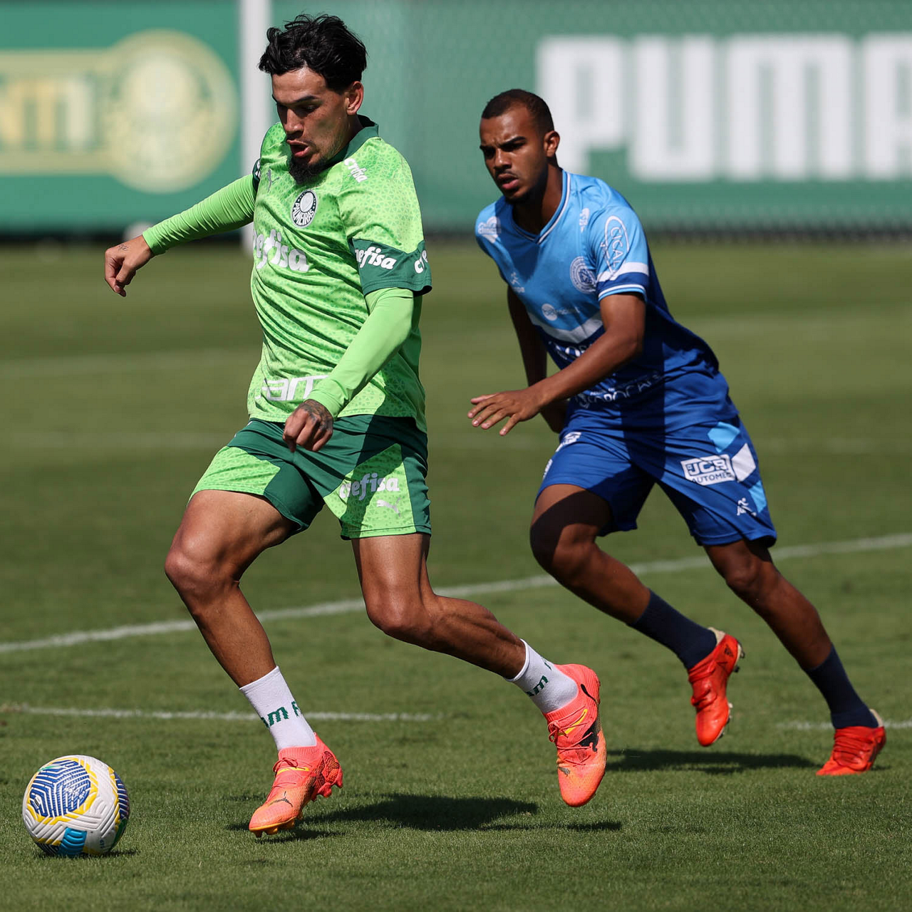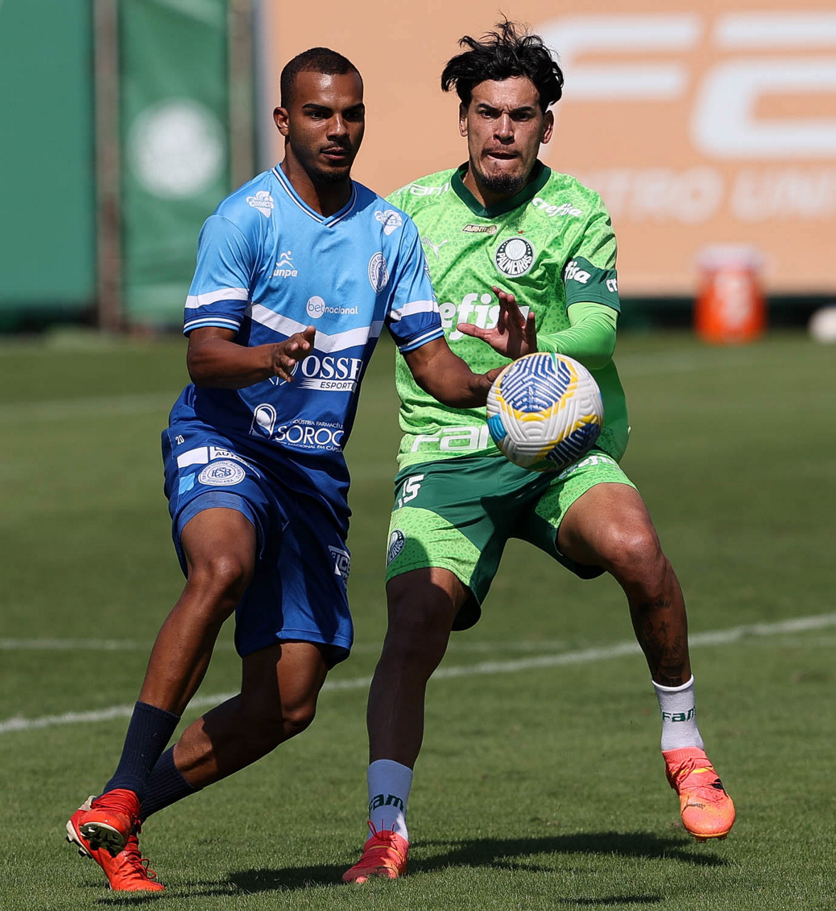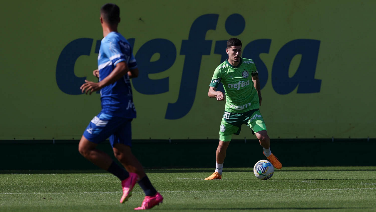 O jogador Gabriel Menino, da SE Palmeiras, durante jogo-treino contra a equipe do São Bento, na Academia de Futebol. (Foto: Cesar Greco/Palmeiras/by Canon)