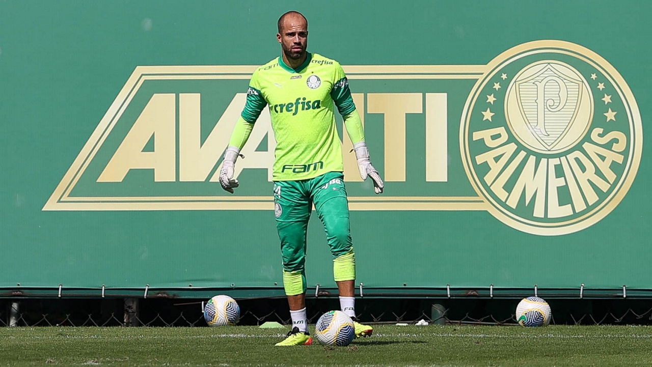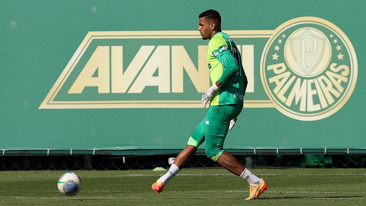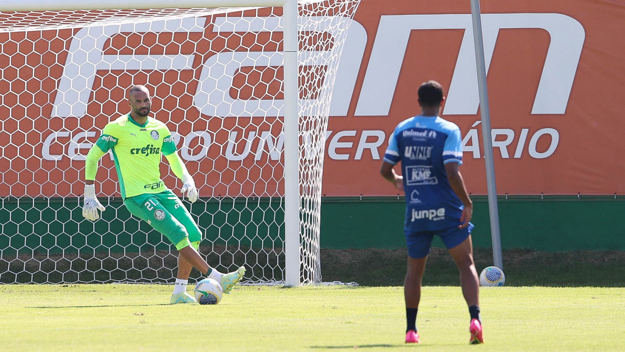 O goleiro Weverton, da SE Palmeiras, durante jogo-treino contra a equipe do São Bento, na Academia de Futebol. (Foto: Cesar Greco/Palmeiras/by Canon)