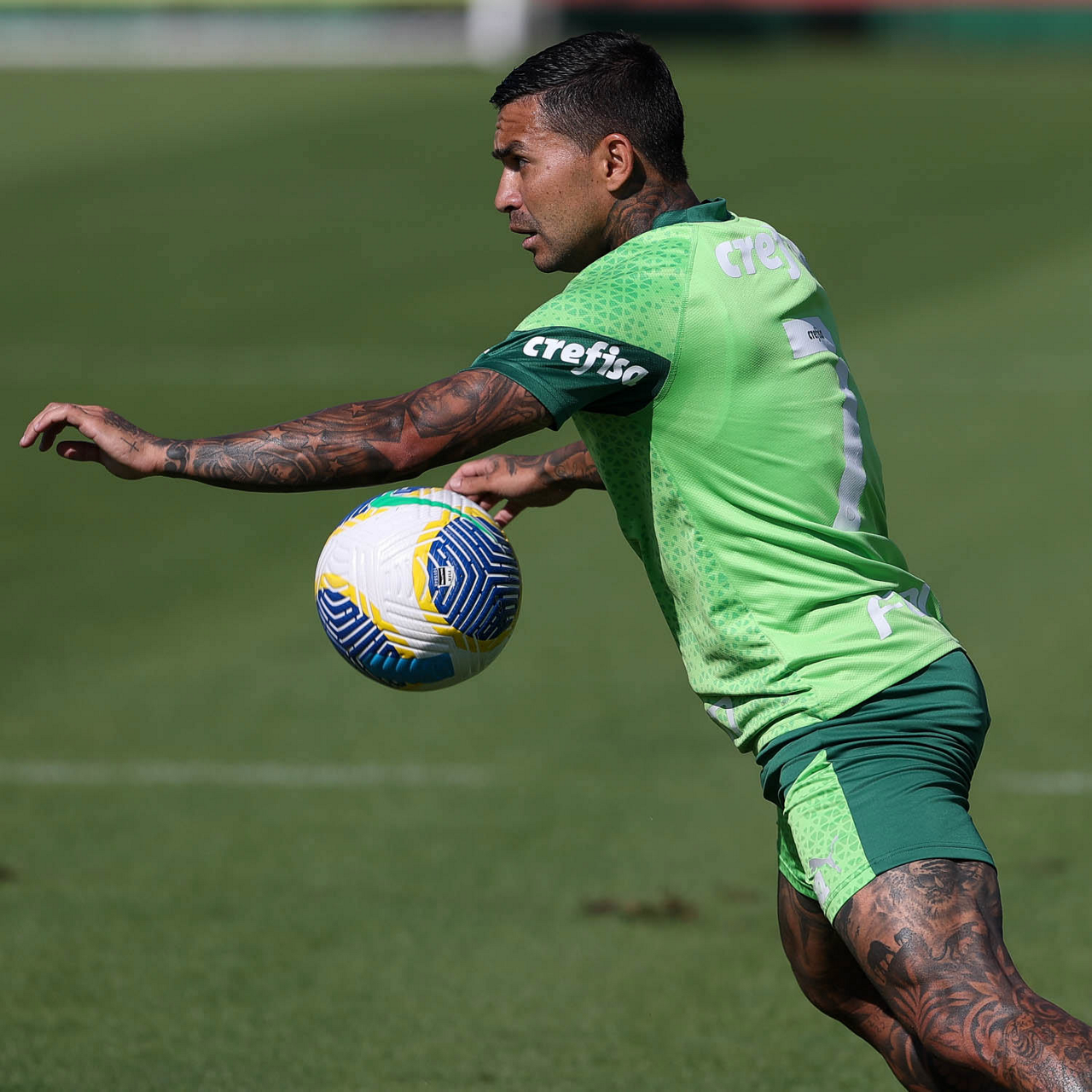 O jogador Dudu, da SE Palmeiras, durante jogo-treino contra a equipe do São Bento, na Academia de Futebol. (Foto: Cesar Greco/Palmeiras/by Canon)