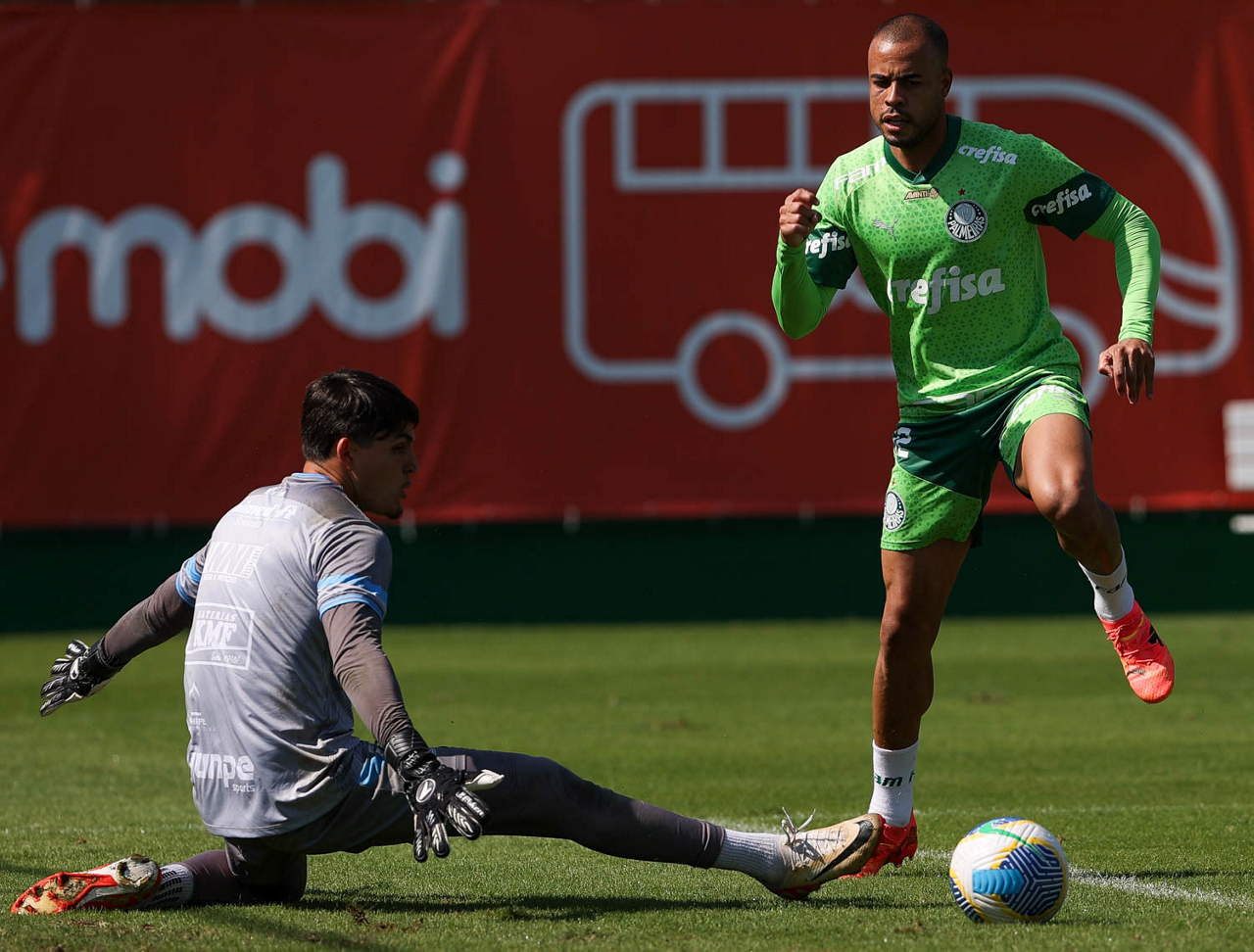 O jogador Mayke, da SE Palmeiras, durante jogo-treino contra a equipe do São Bento, na Academia de Futebol. (Foto: Cesar Greco/Palmeiras/by Canon)