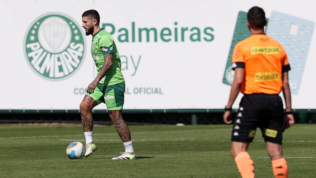 O jogador Zé Rafael, da SE Palmeiras, durante jogo-treino contra a equipe do São Bento, na Academia de Futebol. (Foto: Cesar Greco/Palmeiras/by Canon)