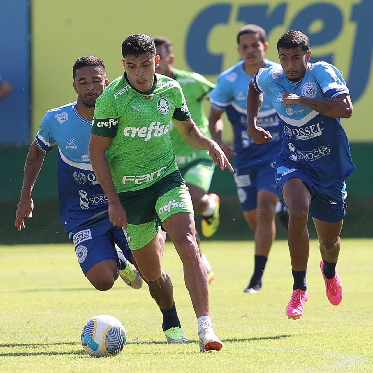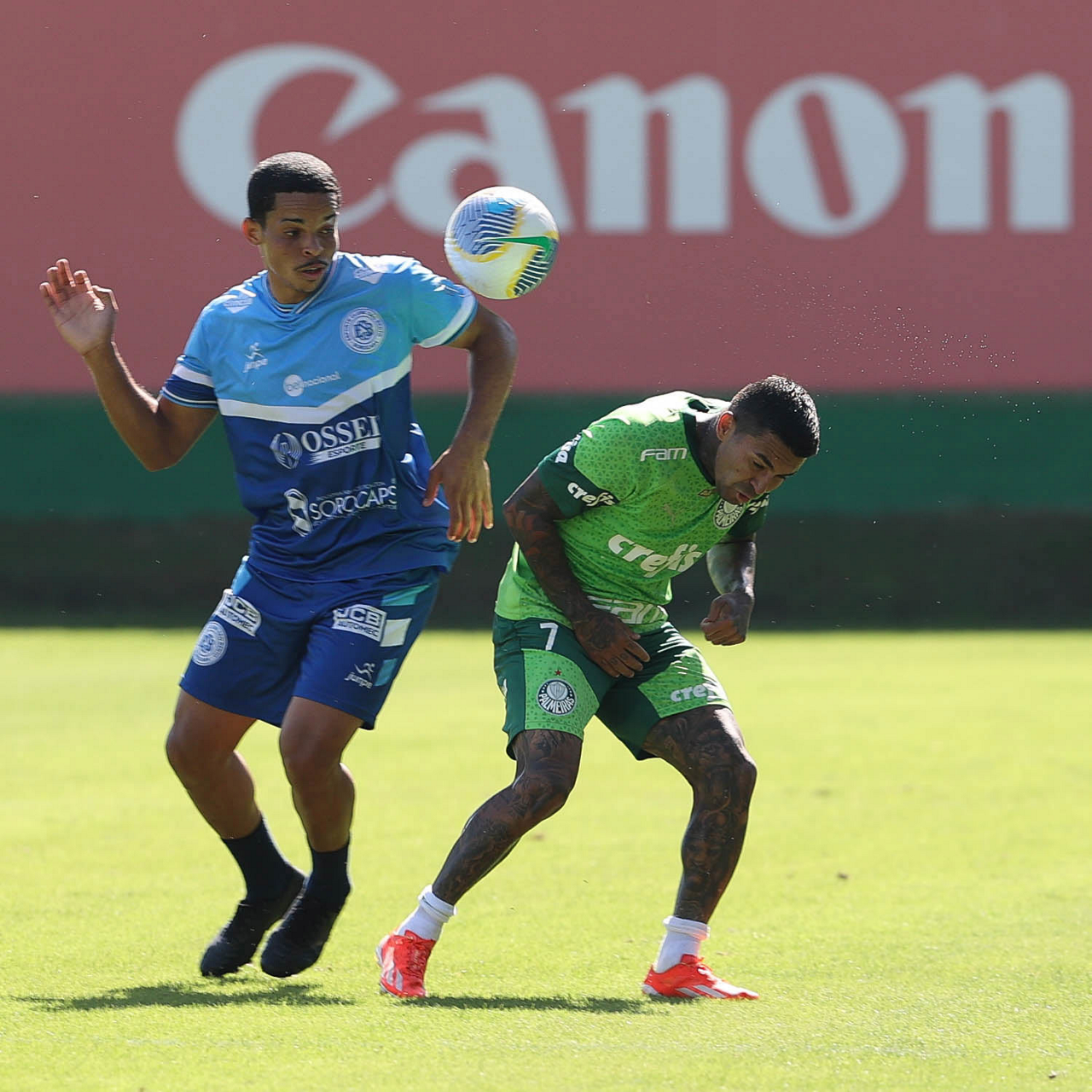 Os jogadores da SE Palmeiras, durante jogo-treino contra a equipe do São Bento, na Academia de Futebol. (Foto: Cesar Greco/Palmeiras/by Canon)