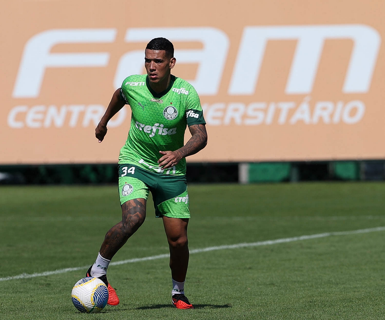 O jogador Fabinho, da SE Palmeiras, durante jogo-treino contra a equipe do São Bento, na Academia de Futebol. (Foto: Cesar Greco/Palmeiras/by Canon)