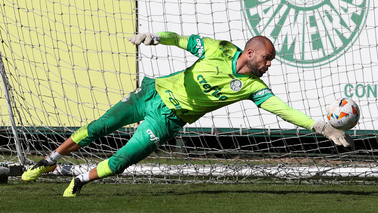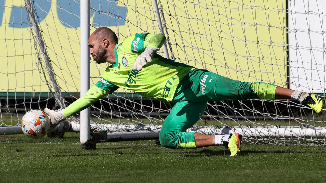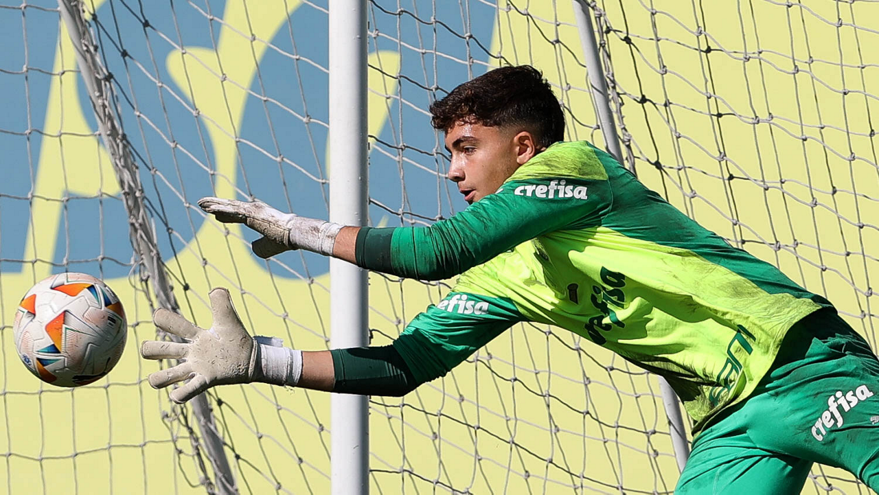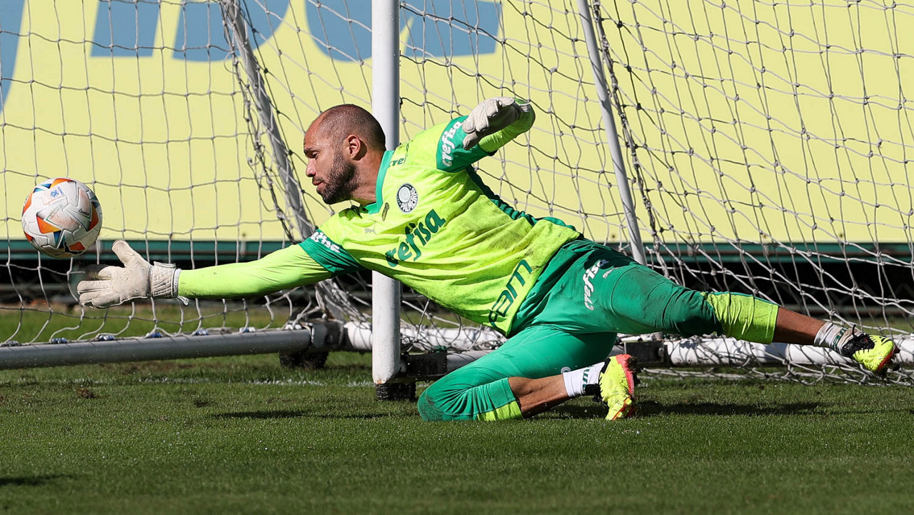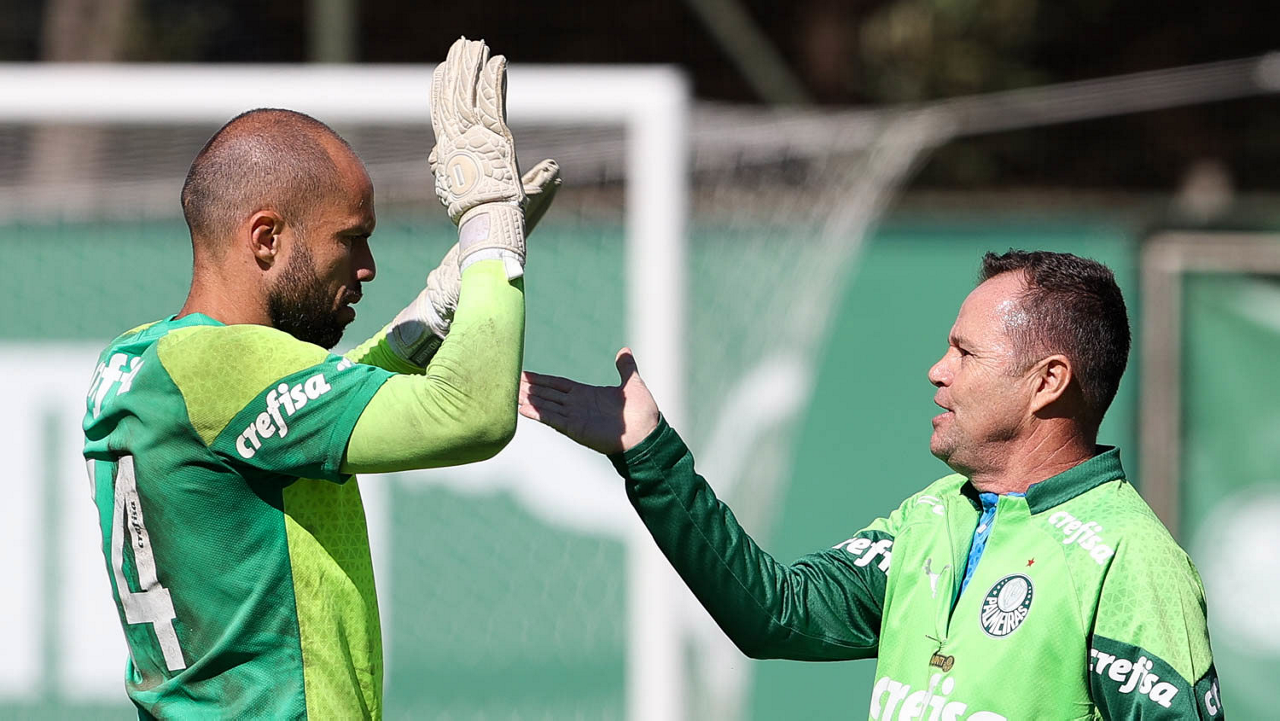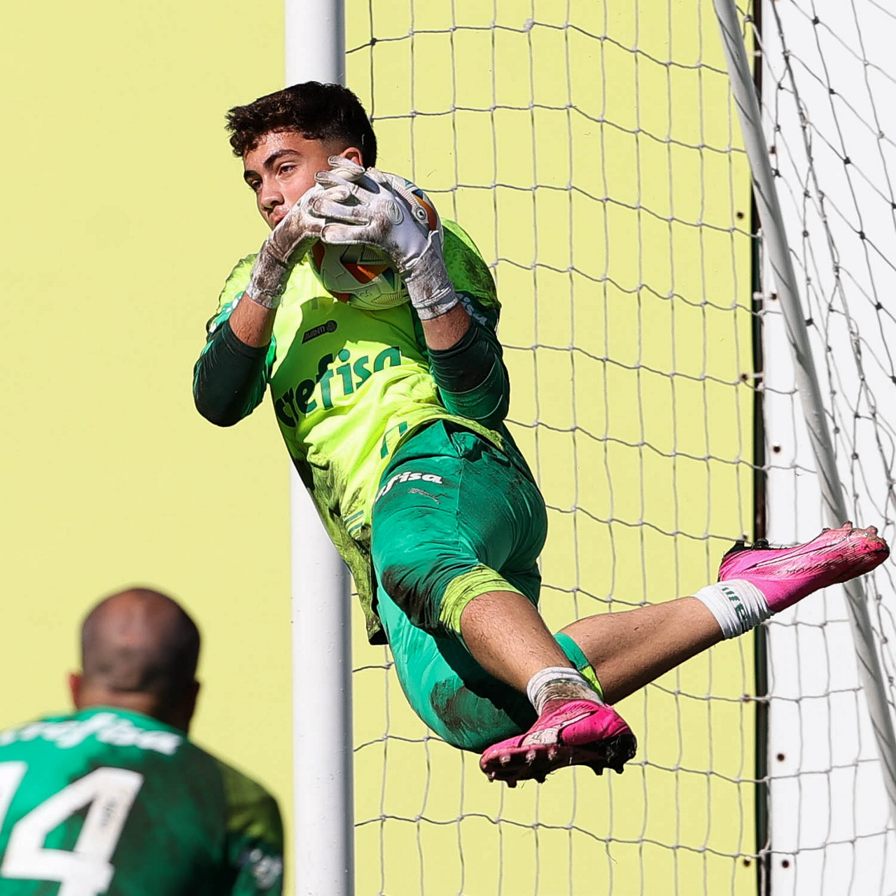 Os jogadores Zé Rafael, Rômulo, Marcelo Lomba, Rony, Gabriel Menino, Raphael Veiga, Lázaro, Luan, Garcia, Caio Paulista, Marcos Rocha e Mayke (E/D) e o auxiliar técnico Andrey Lopes (C), da SE Palmeiras, durante treinamento, na Academia de Futebol. (Foto: Cesar Greco/Palmeiras/by Canon)