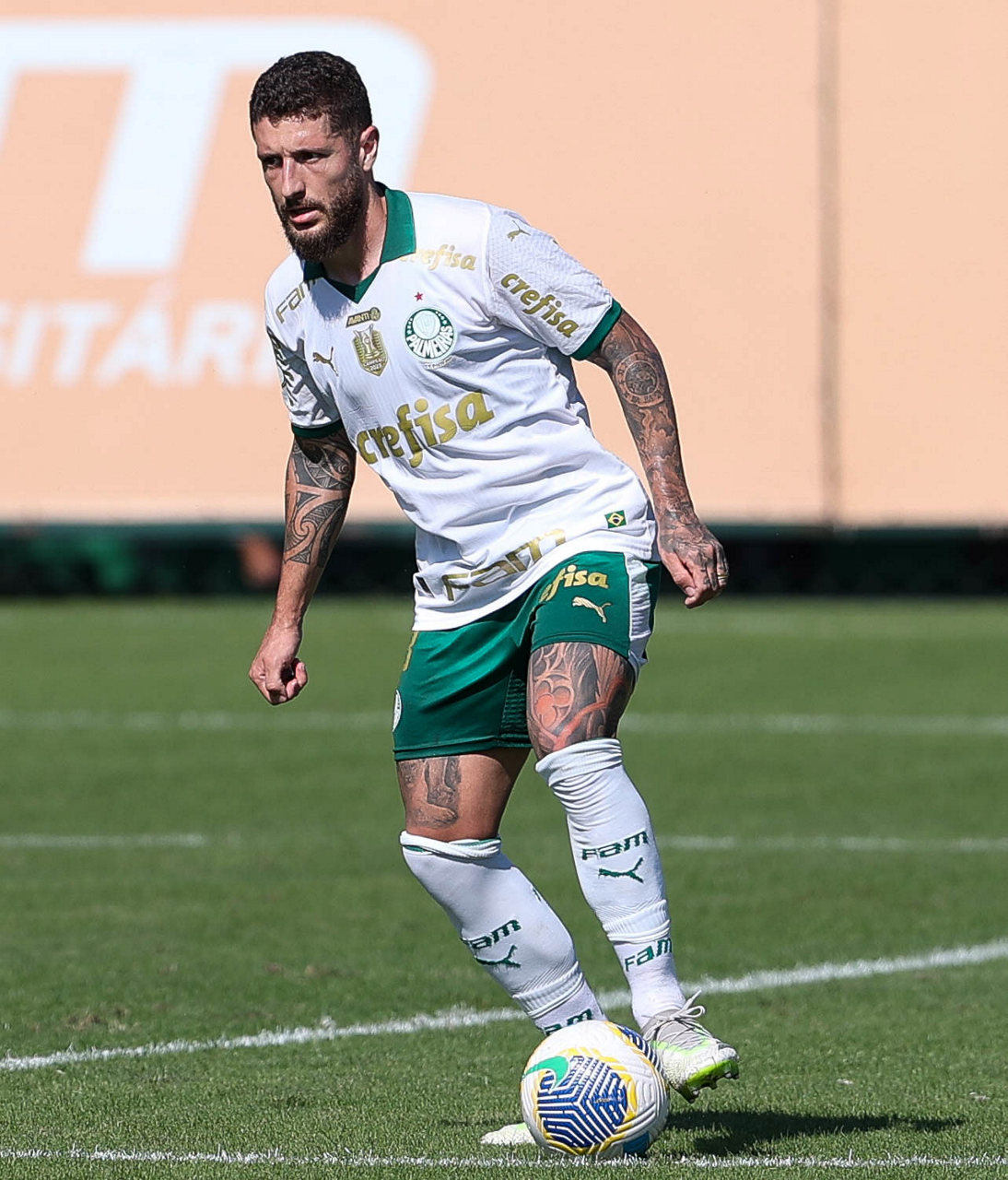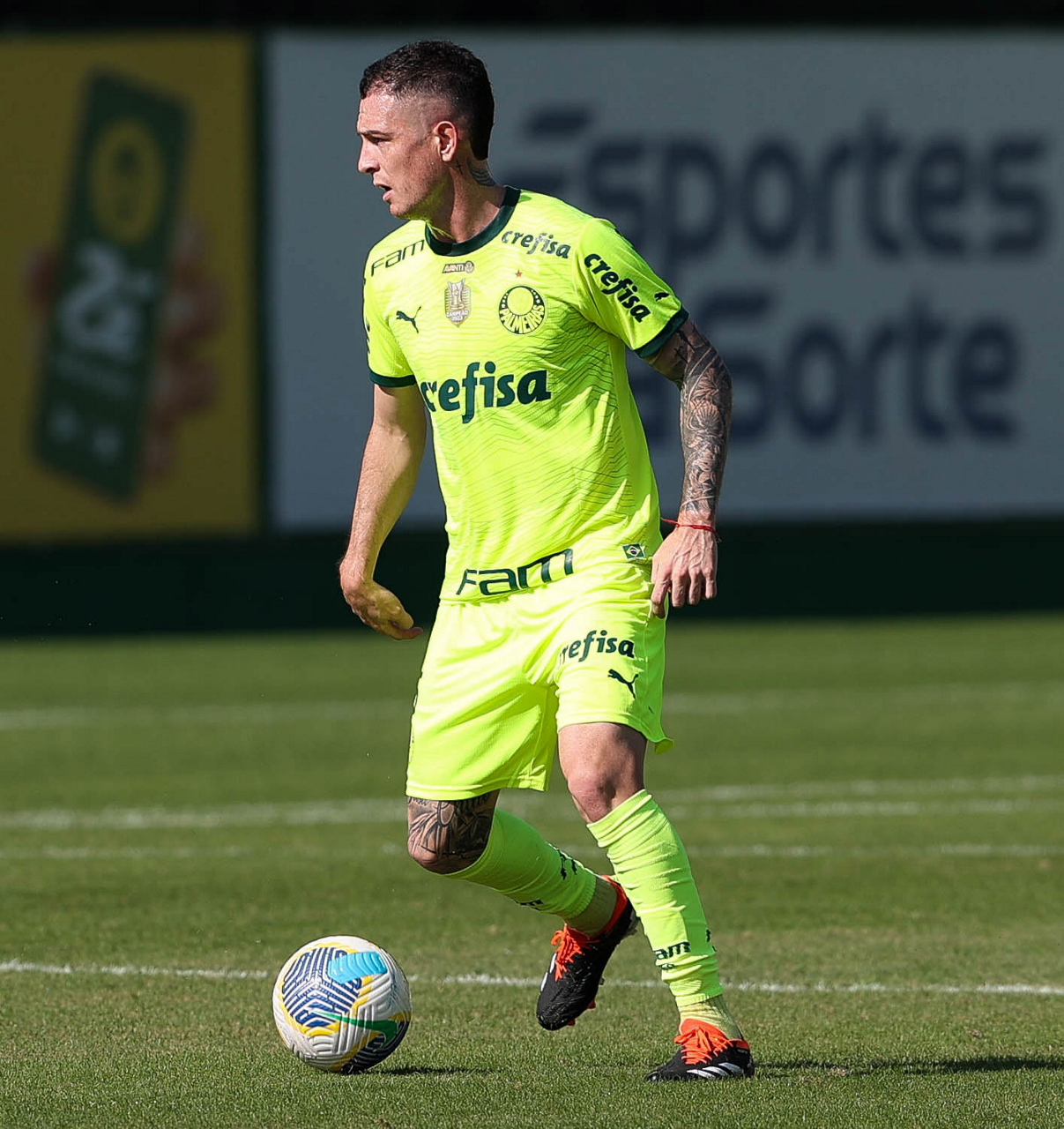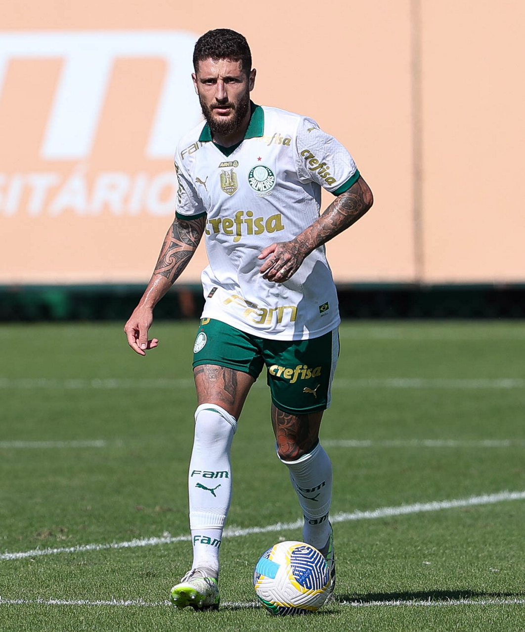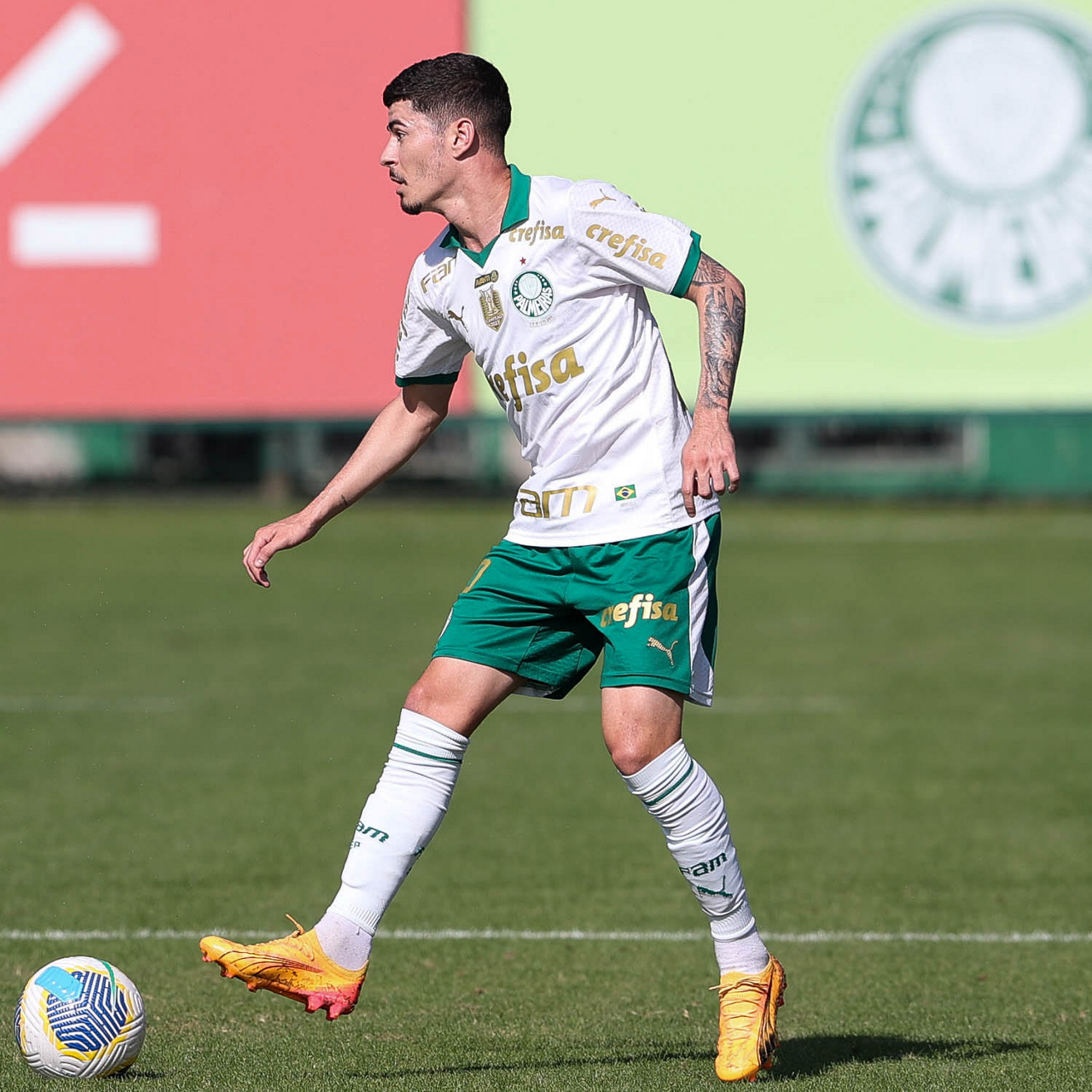 O jogador Joaquín Piquerez, da SE Palmeiras, durante jogo-treino, na Academia de Futebol. (Foto: Cesar Greco/Palmeiras/by Canon)