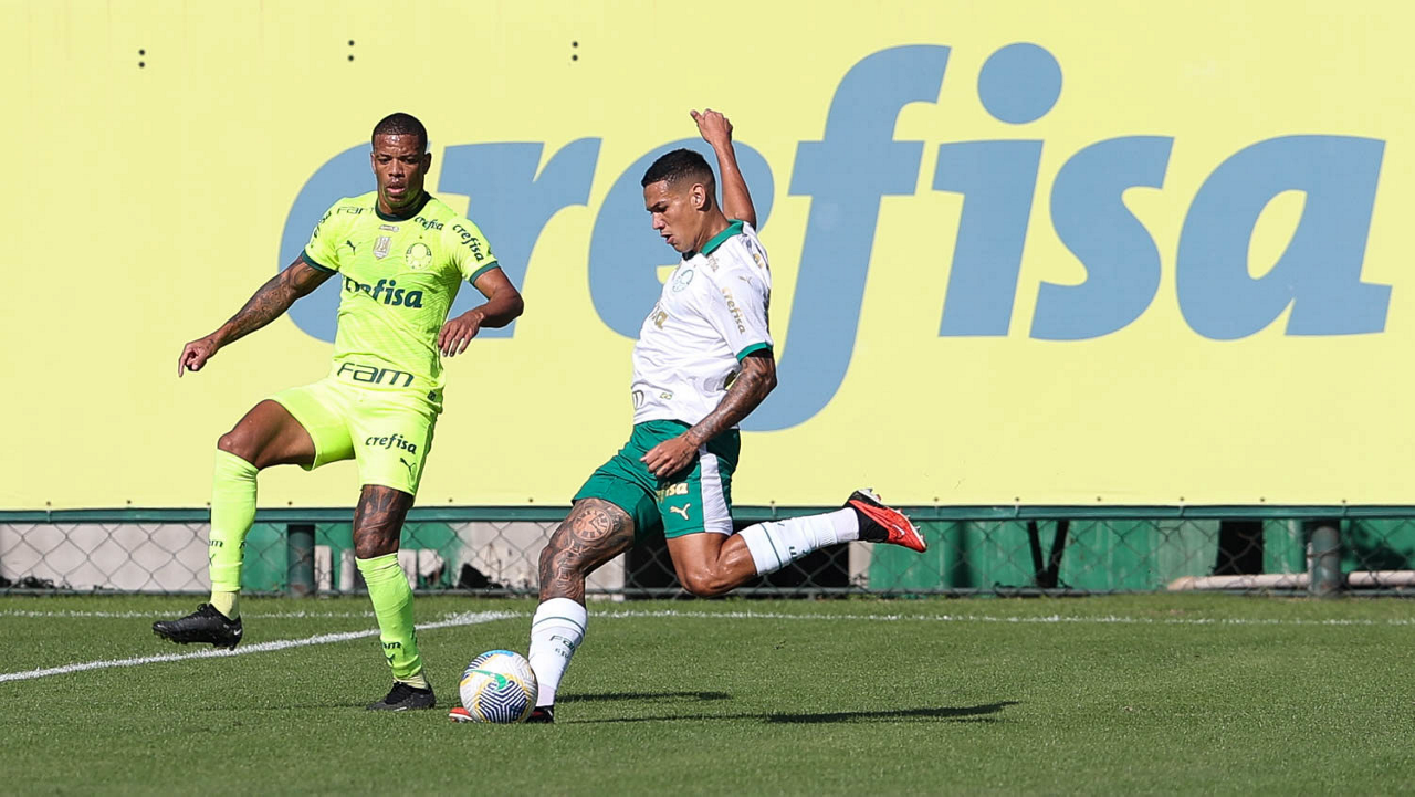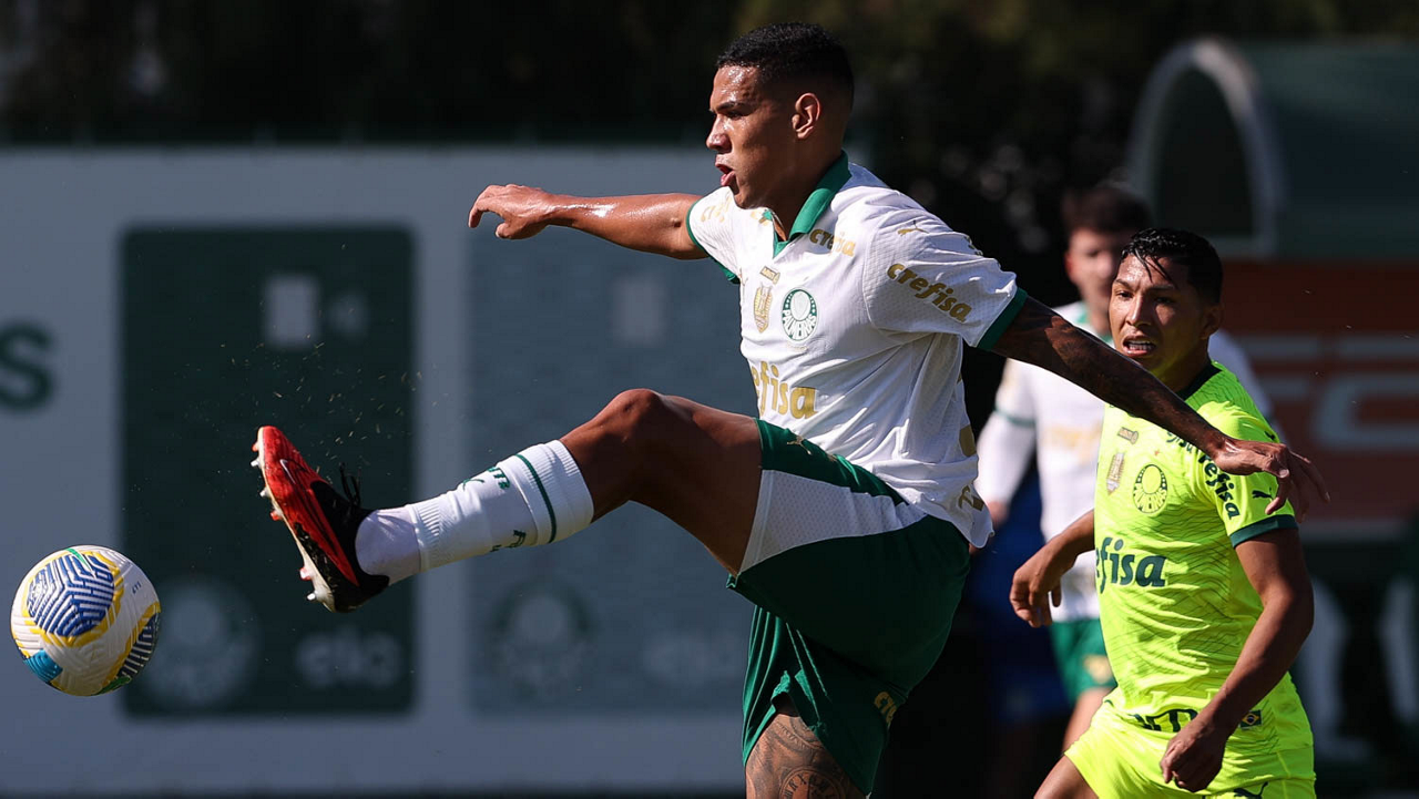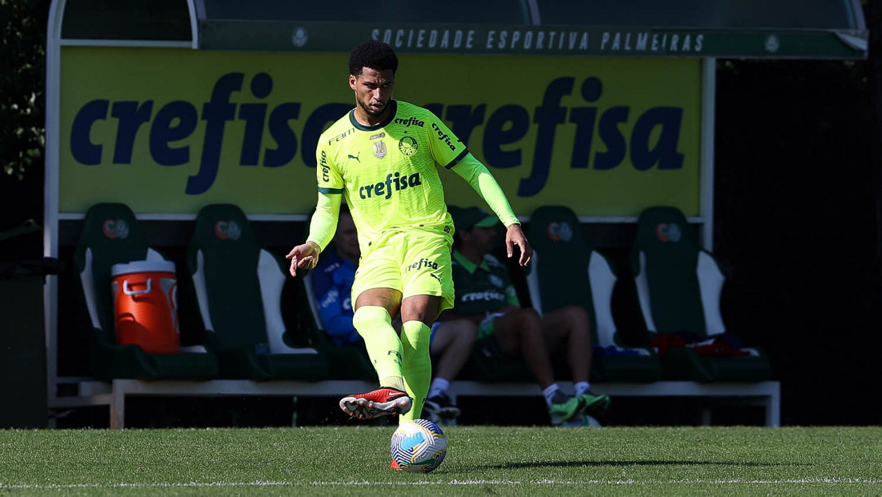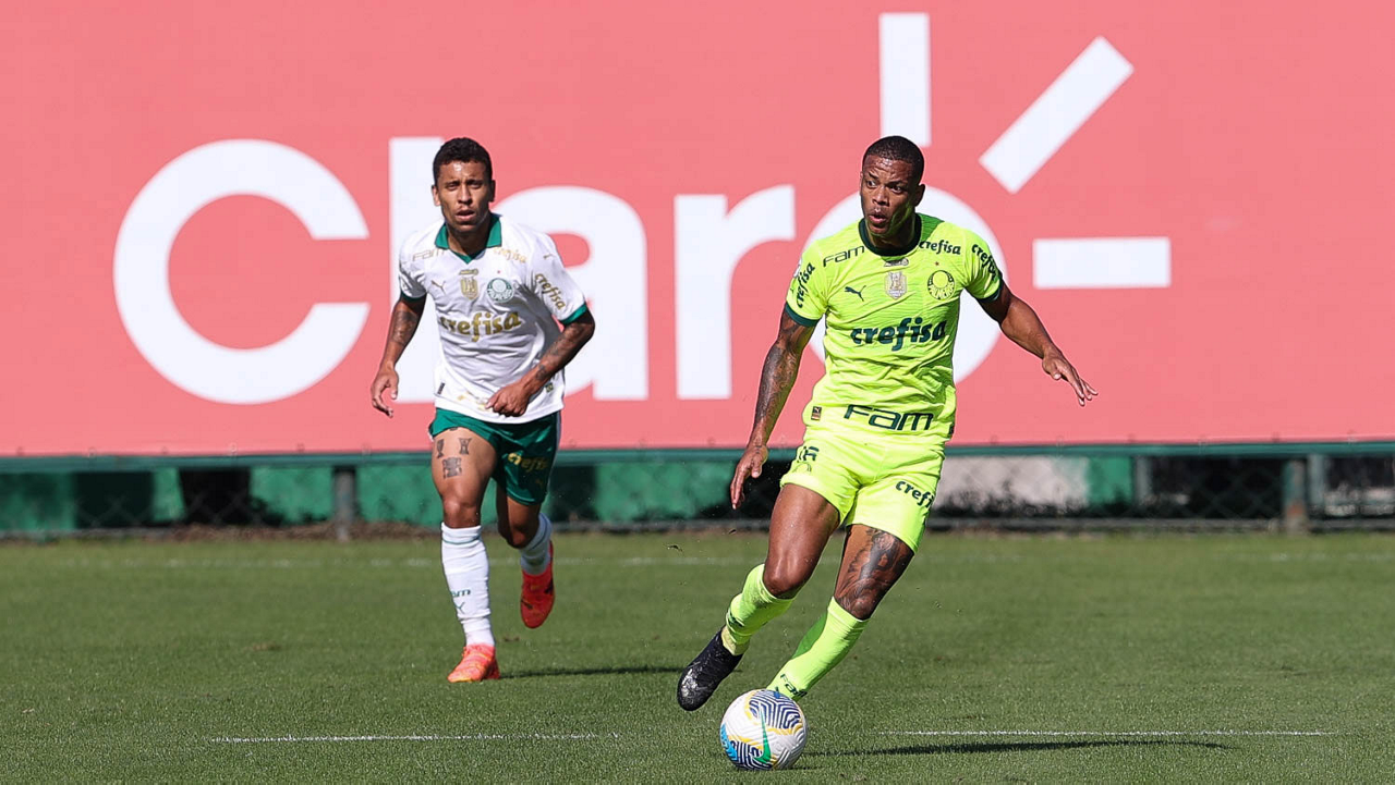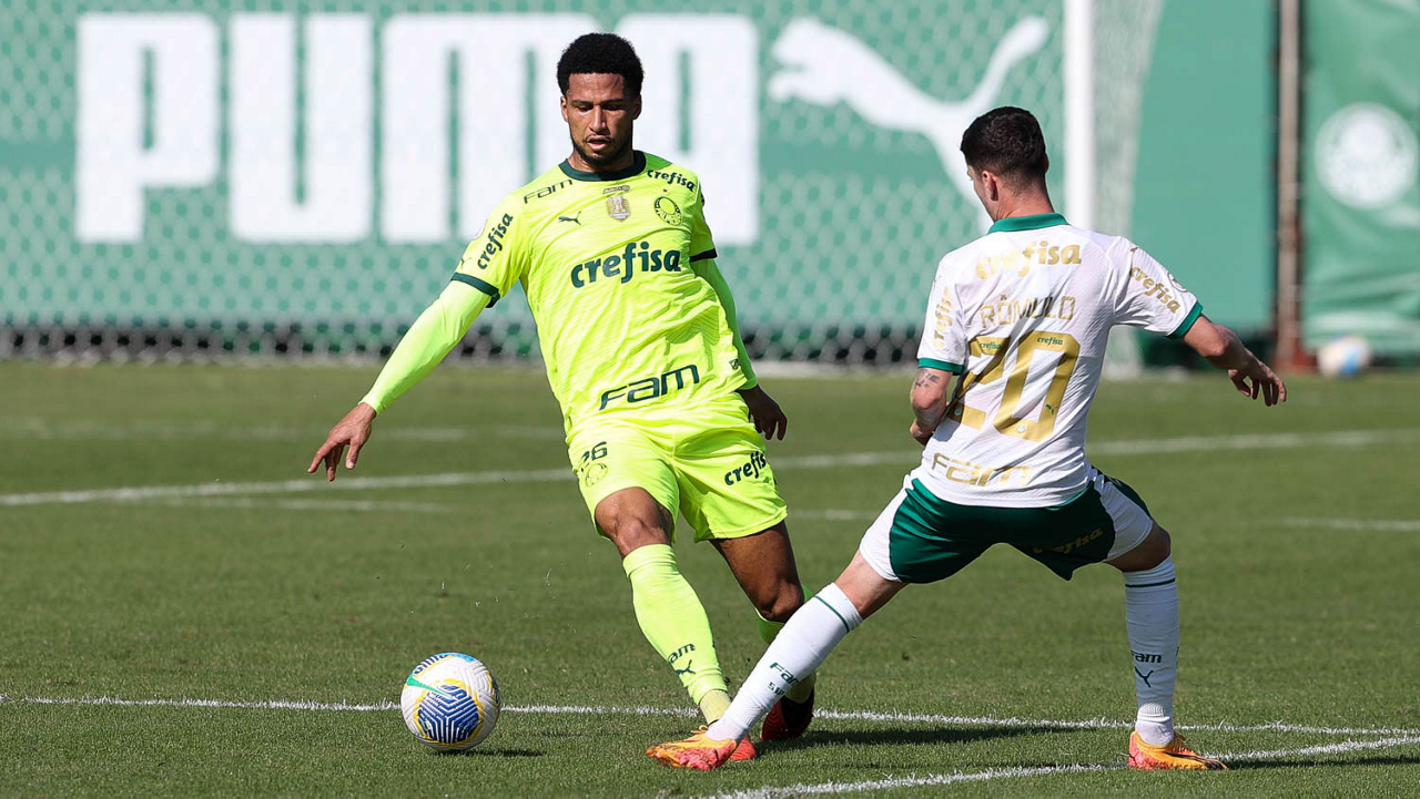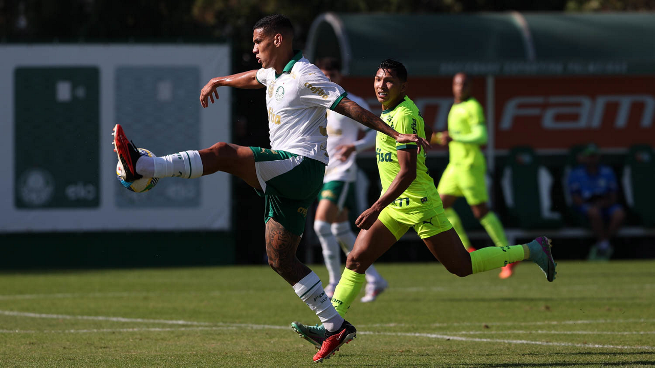 O jogador Gabriel Menino, da SE Palmeiras, durante jogo-treino, na Academia de Futebol. (Foto: Cesar Greco/Palmeiras/by Canon)