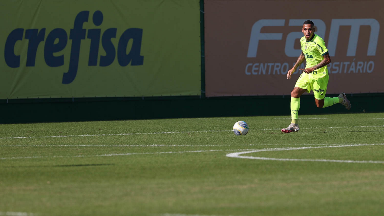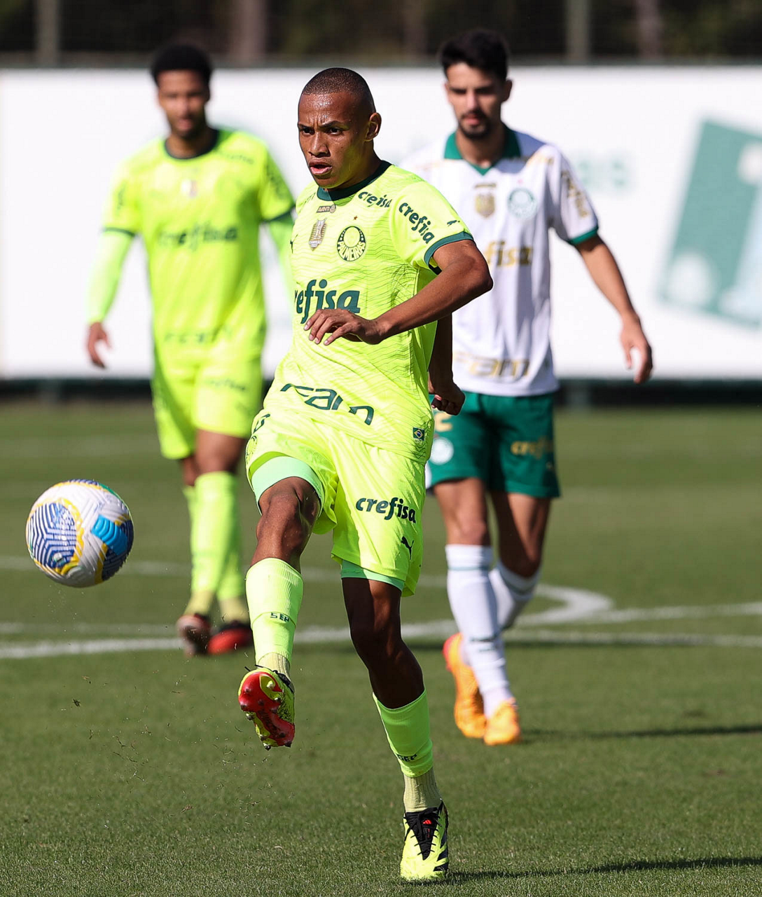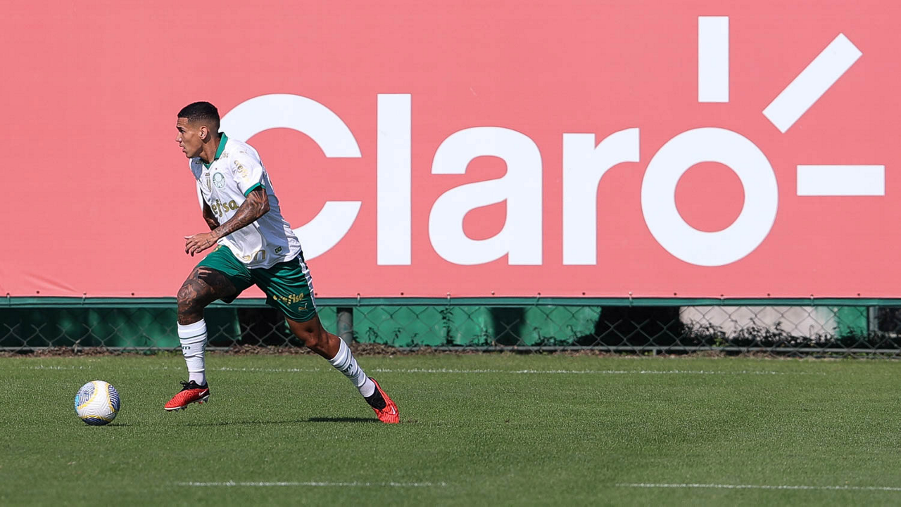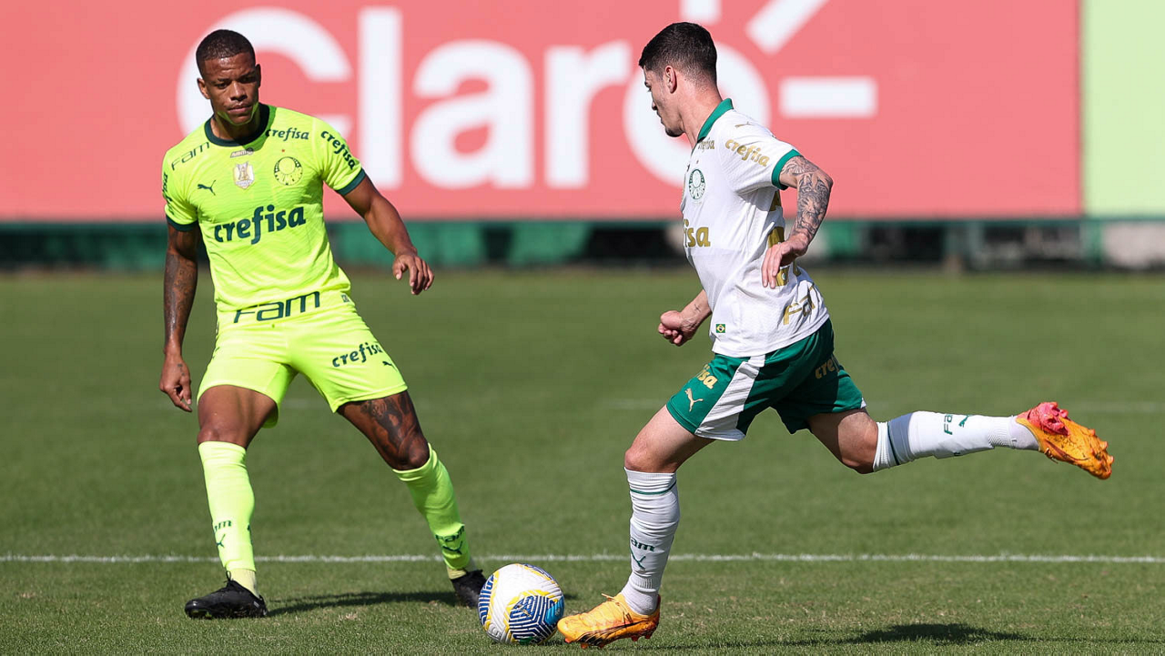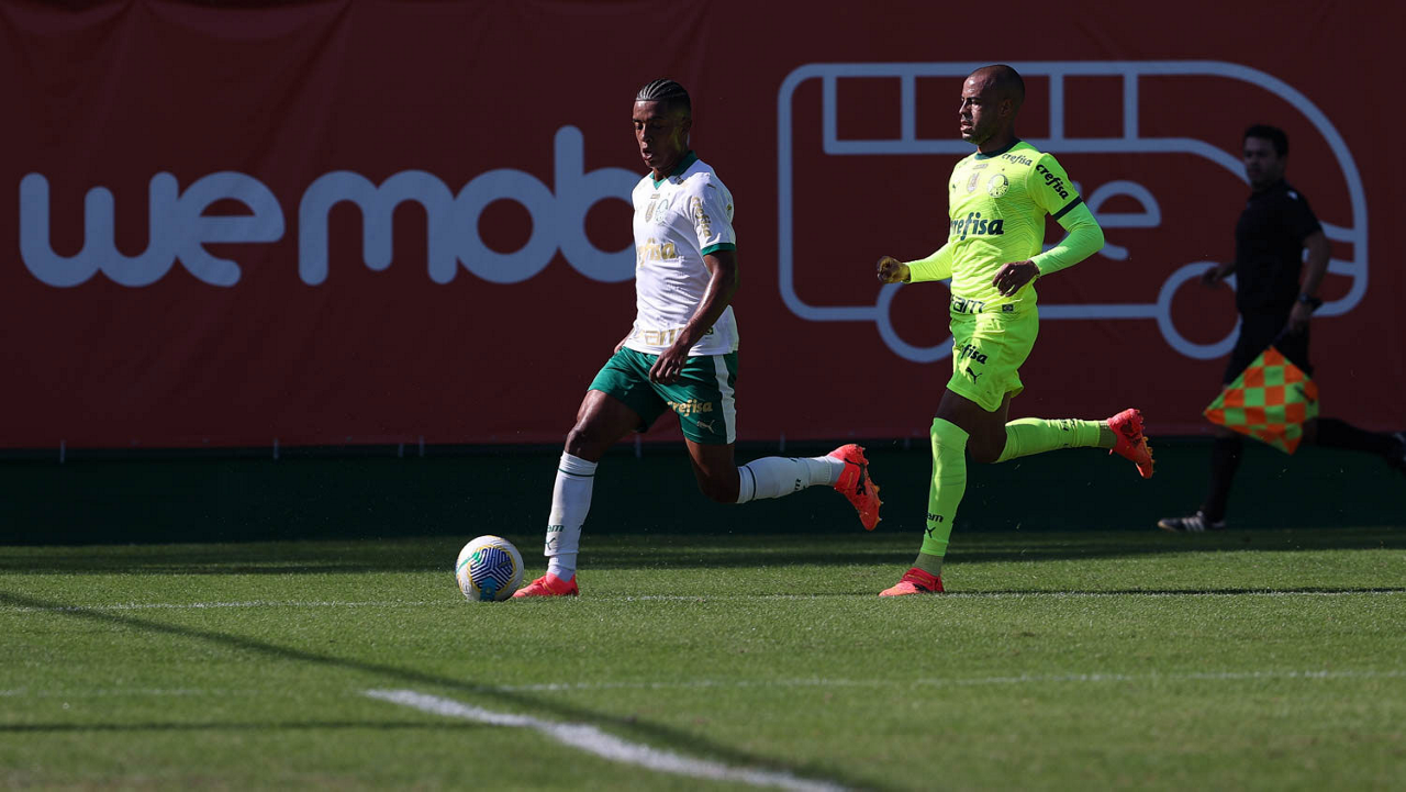 O jogador Gabriel Menino, da SE Palmeiras, durante jogo-treino, na Academia de Futebol. (Foto: Cesar Greco/Palmeiras/by Canon)