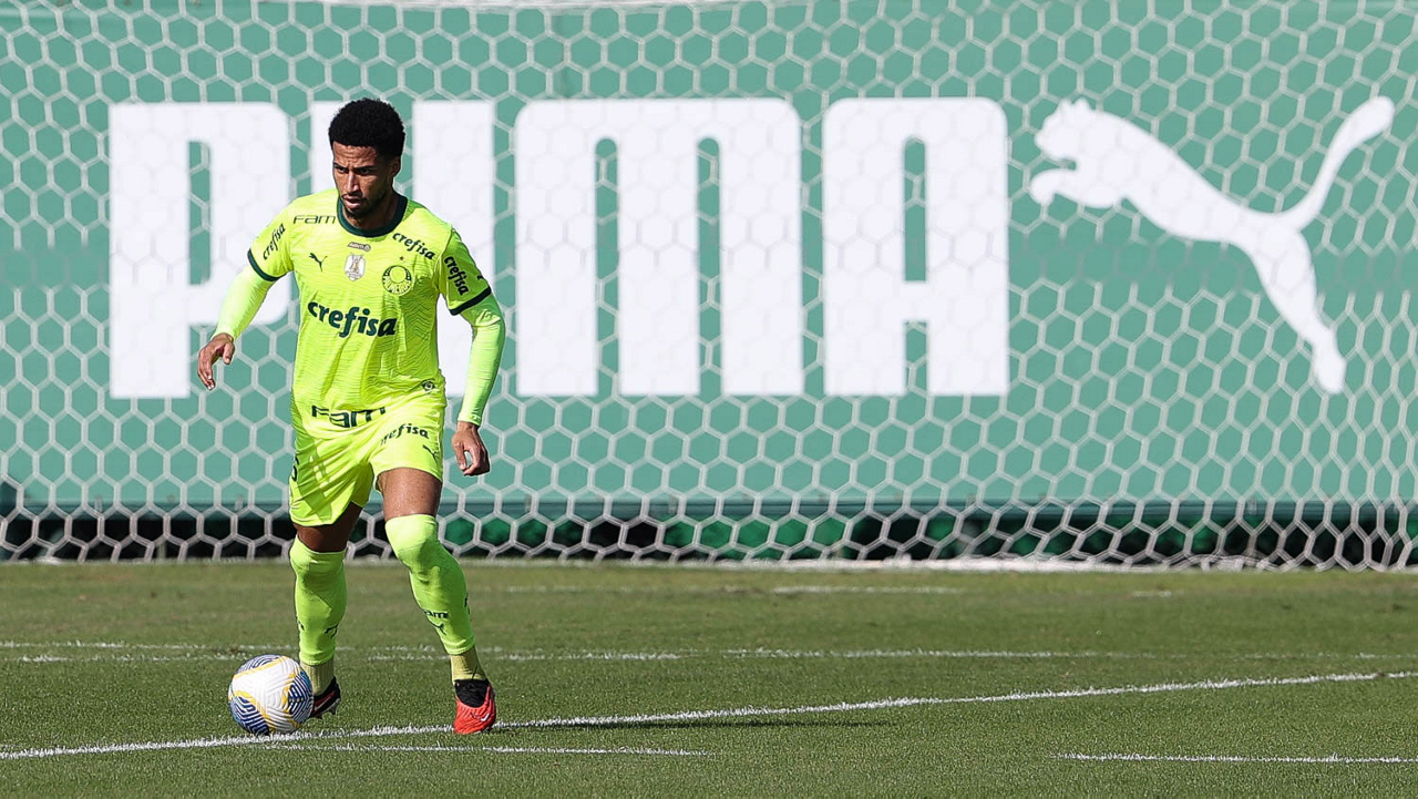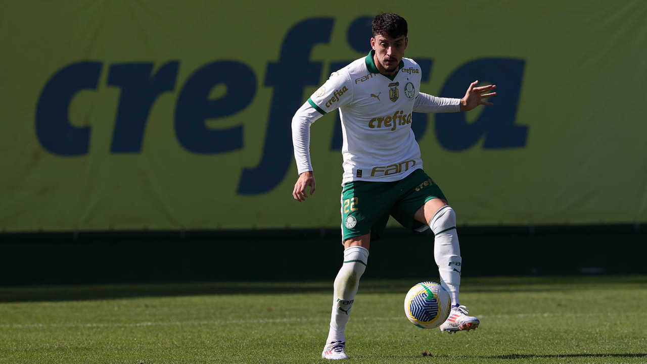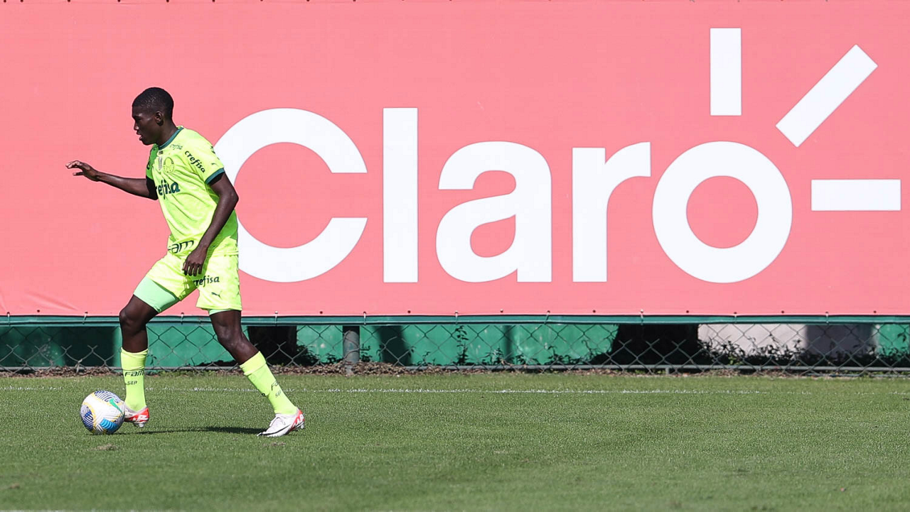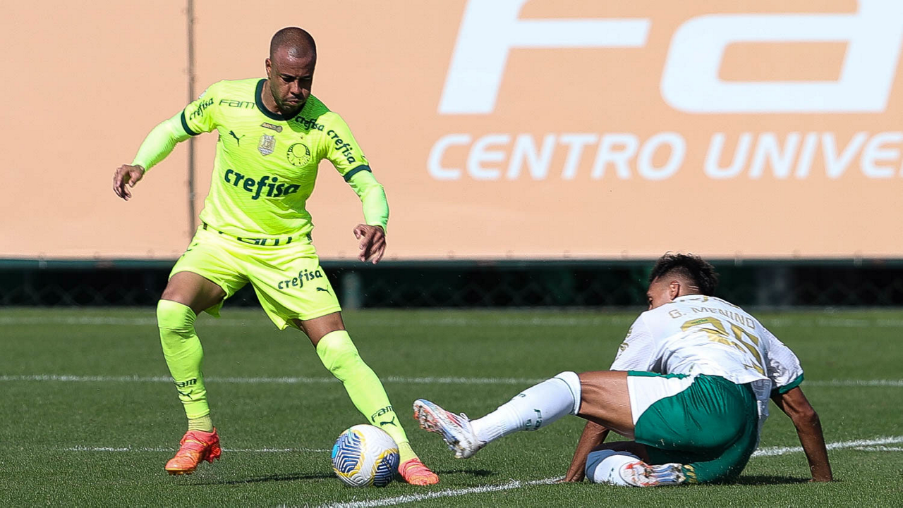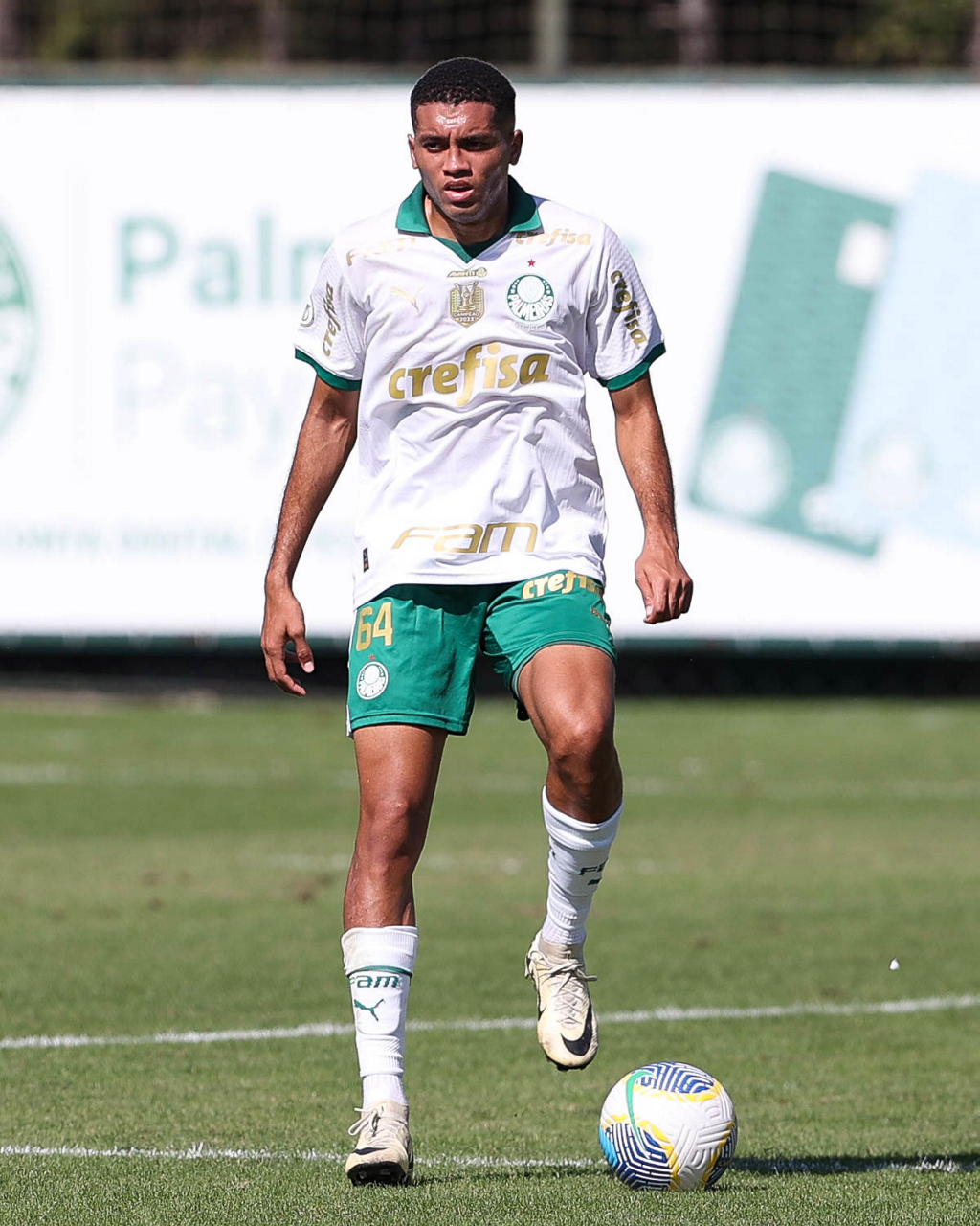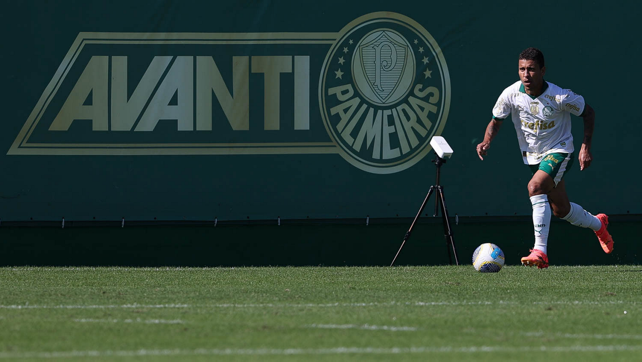 O jogador Gabriel Menino, da SE Palmeiras, durante jogo-treino, na Academia de Futebol. (Foto: Cesar Greco/Palmeiras/by Canon)