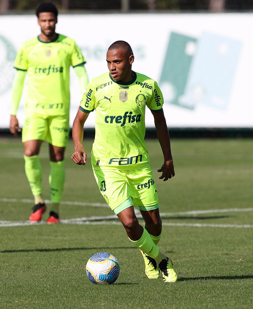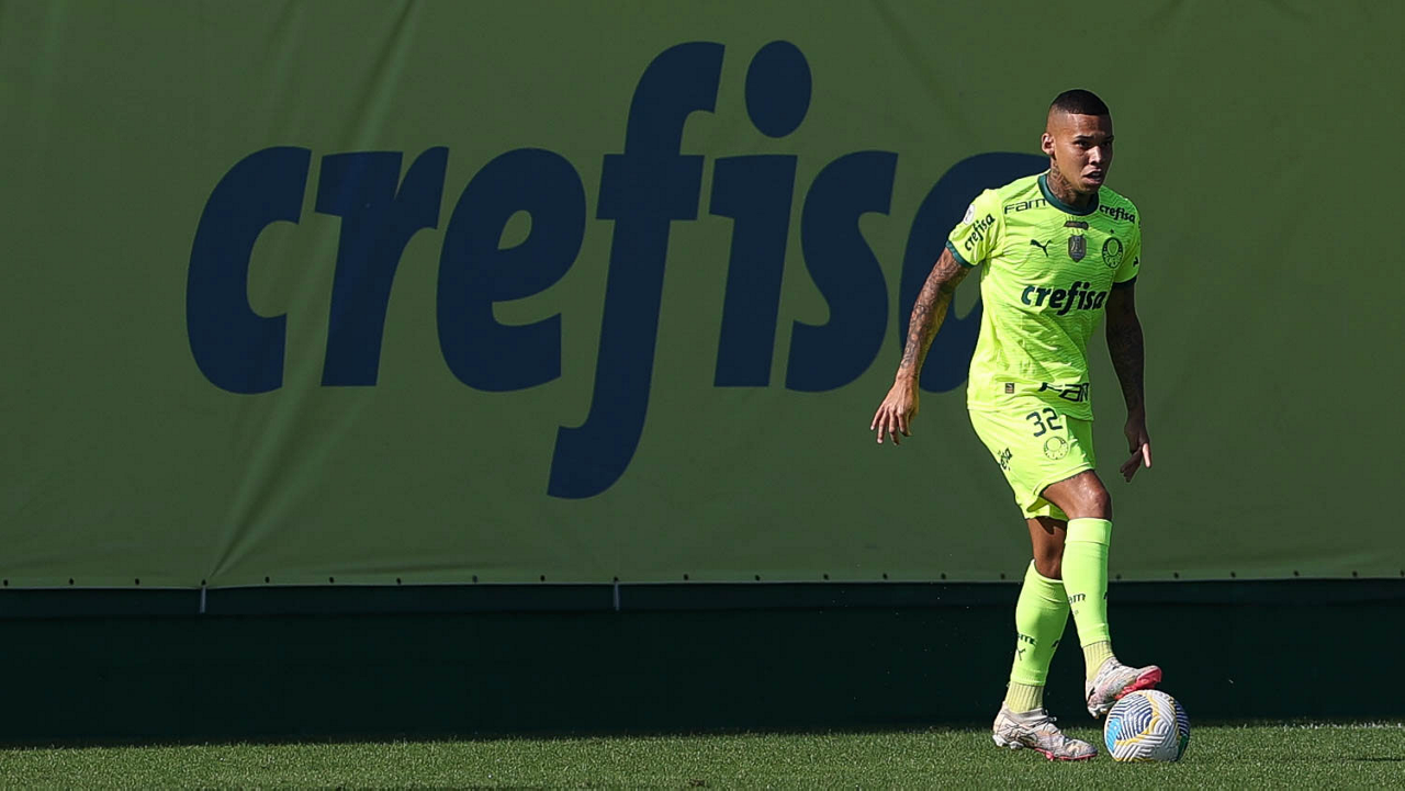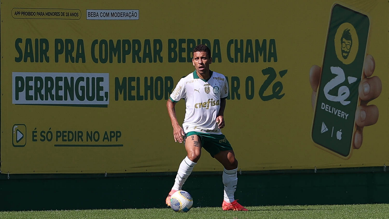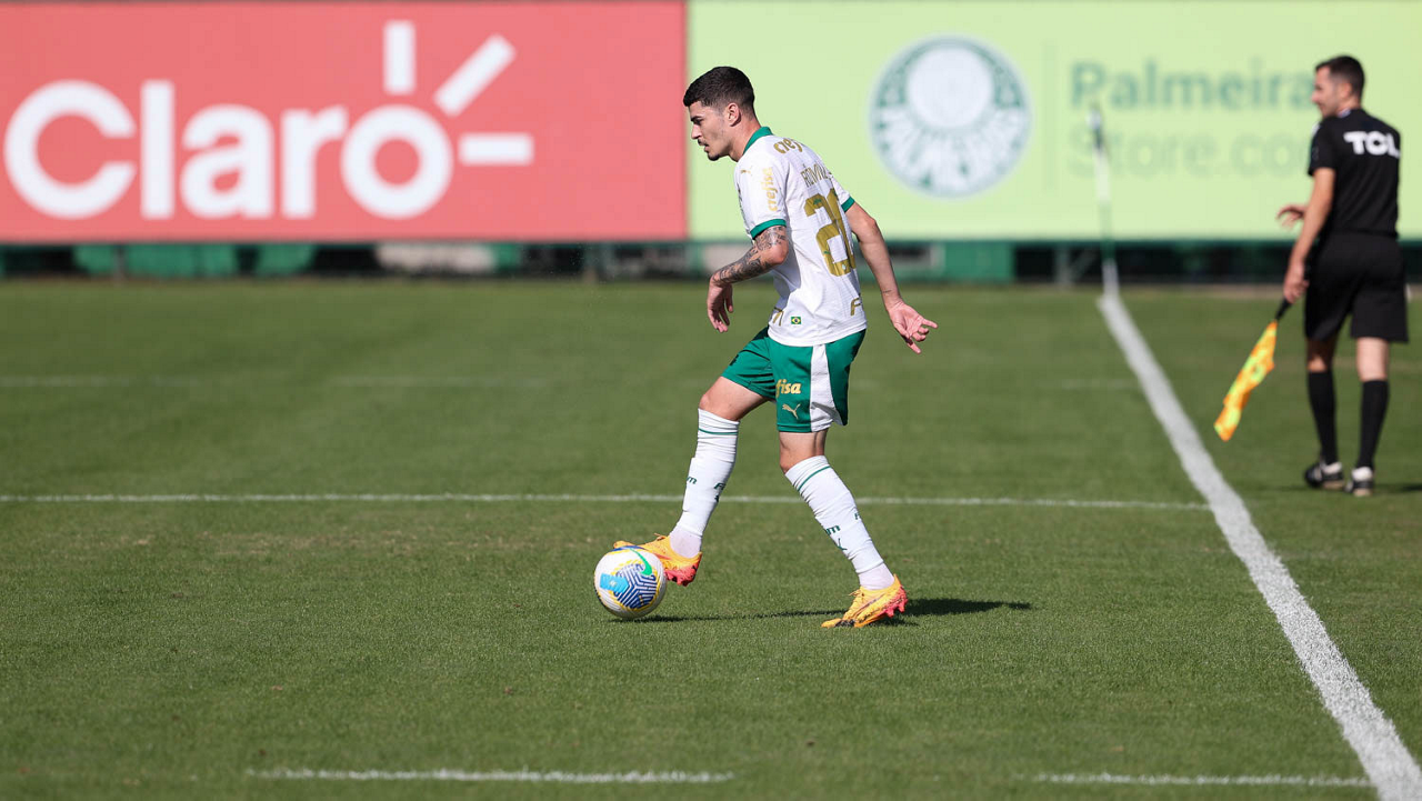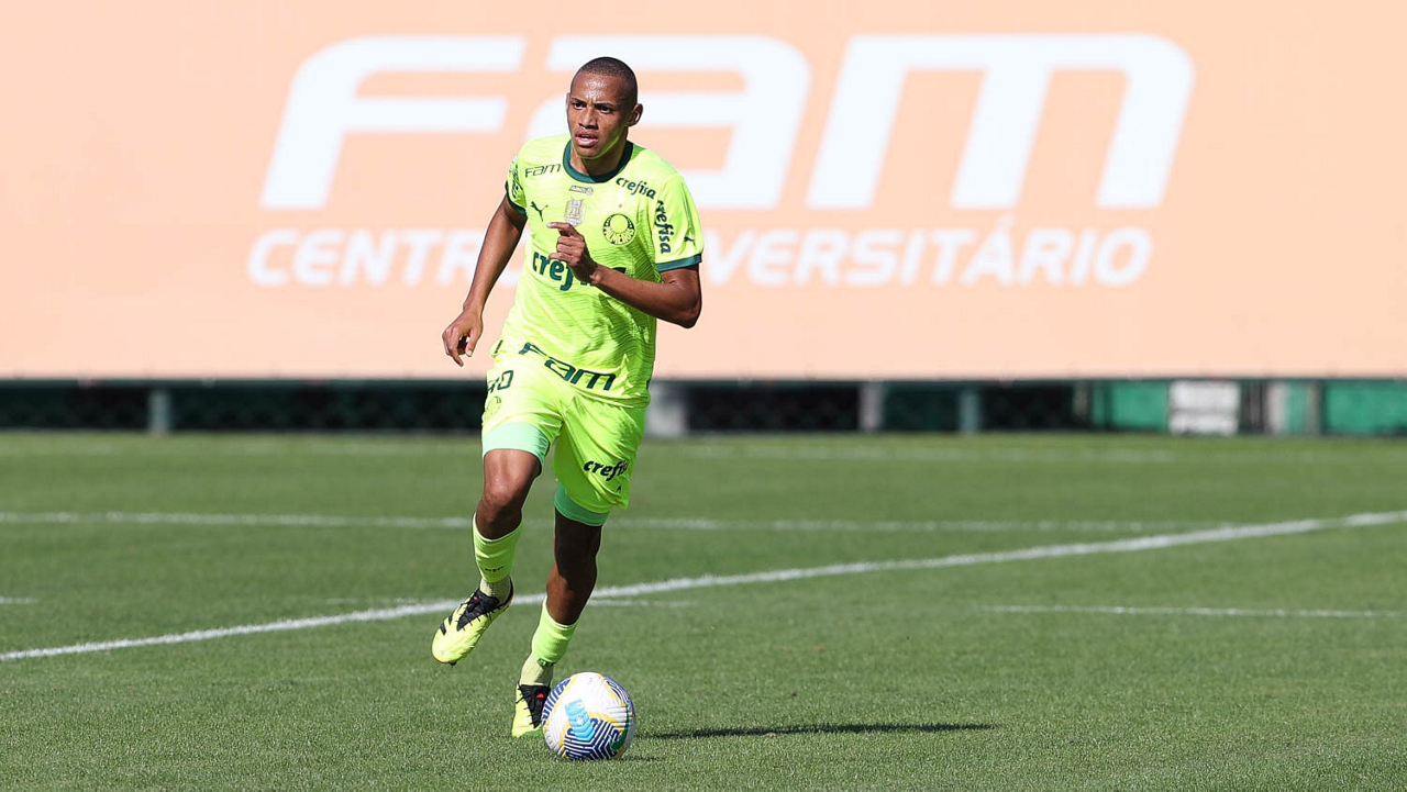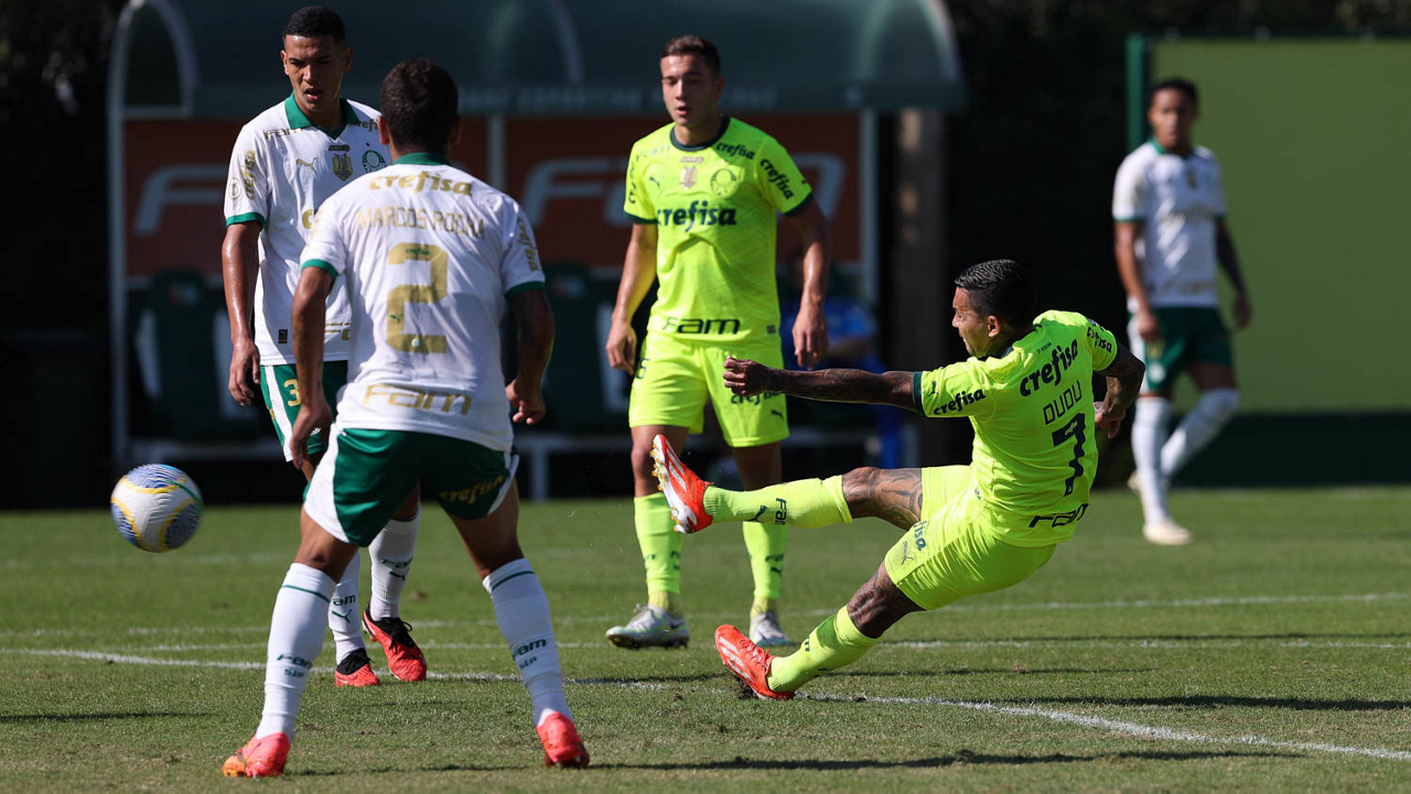 O jogador Gabriel Menino, da SE Palmeiras, durante jogo-treino, na Academia de Futebol. (Foto: Cesar Greco/Palmeiras/by Canon)