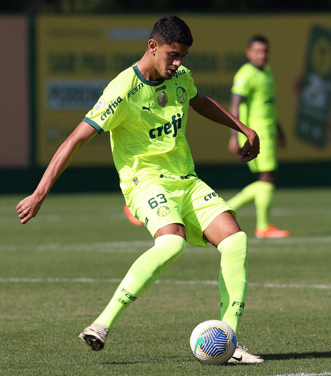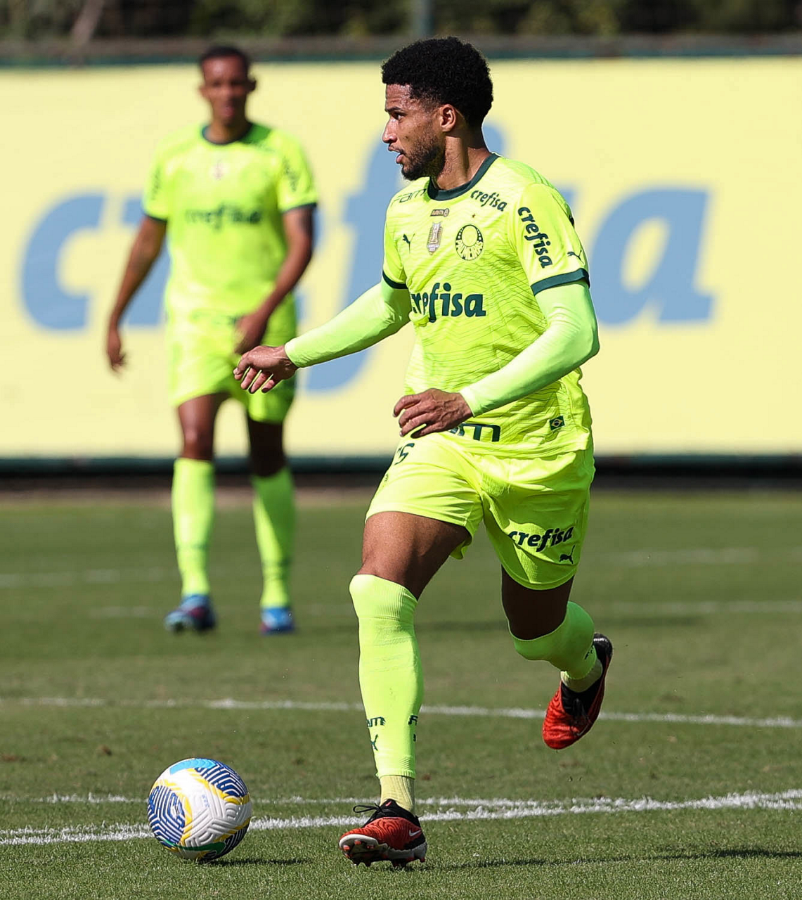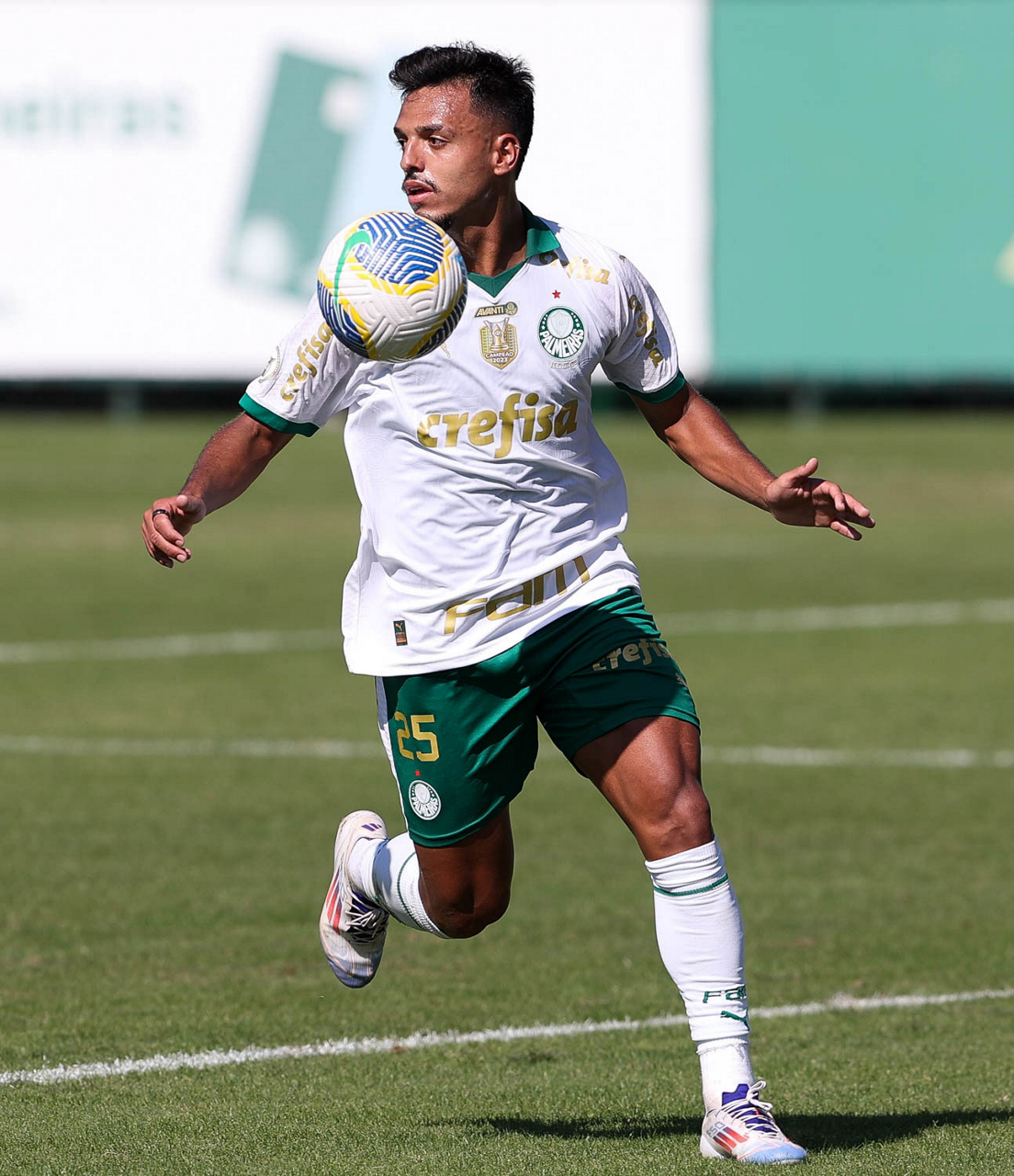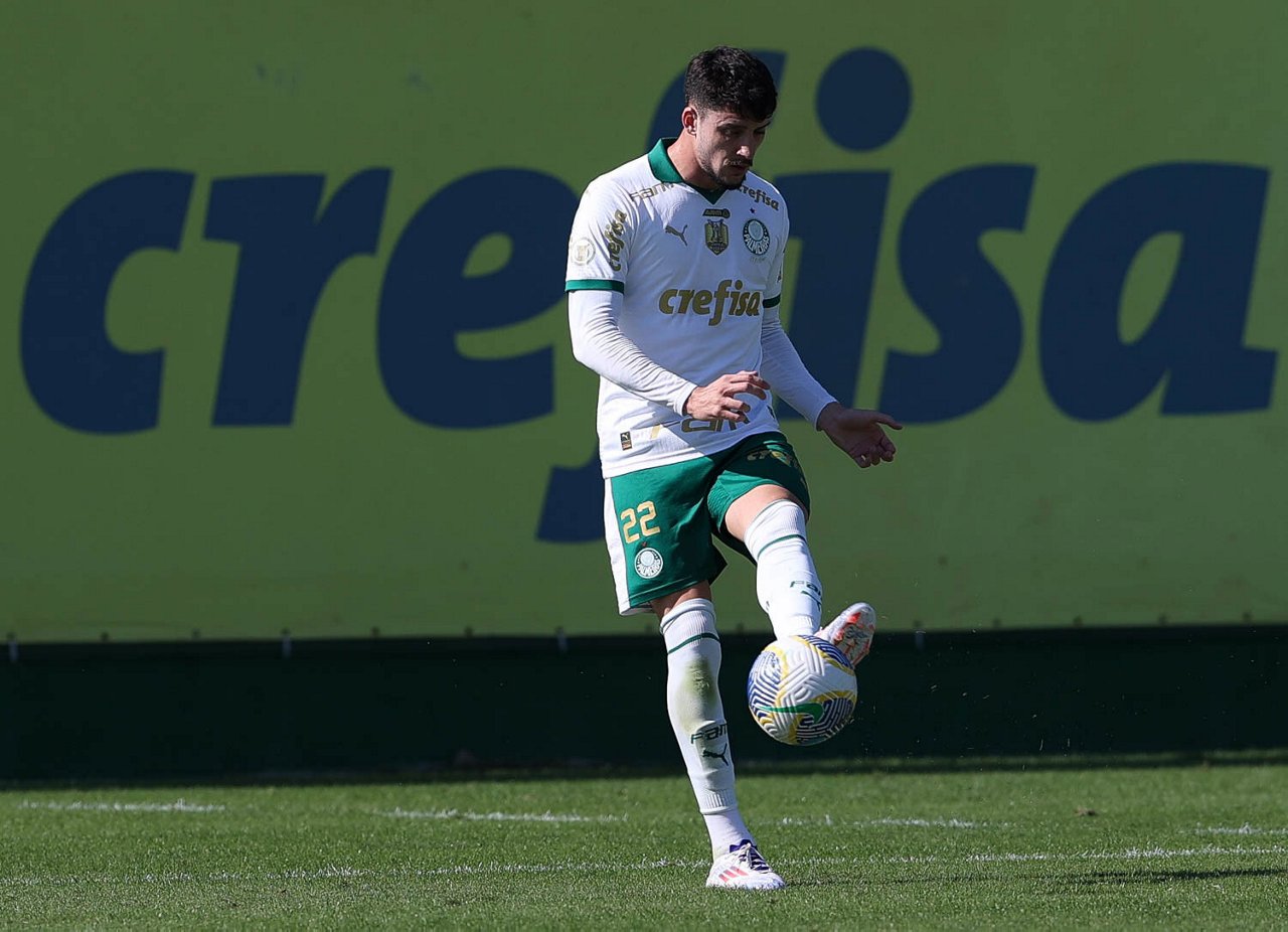 O jogador Gabriel Menino, da SE Palmeiras, durante jogo-treino, na Academia de Futebol. (Foto: Cesar Greco/Palmeiras/by Canon)