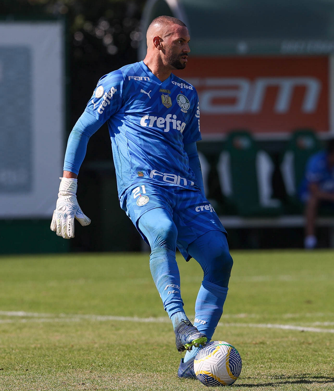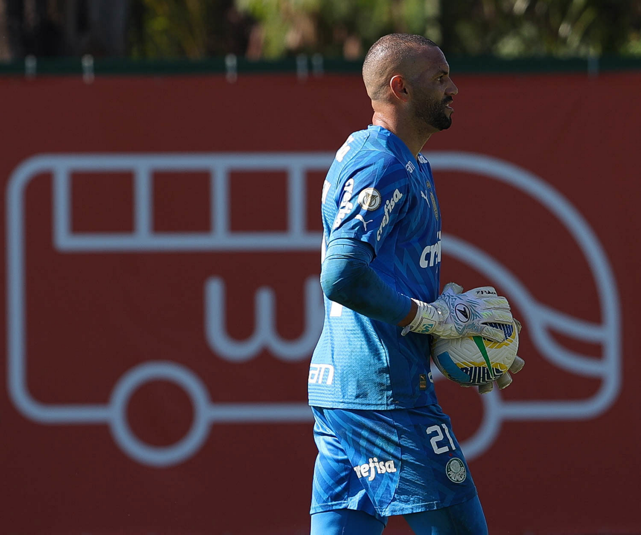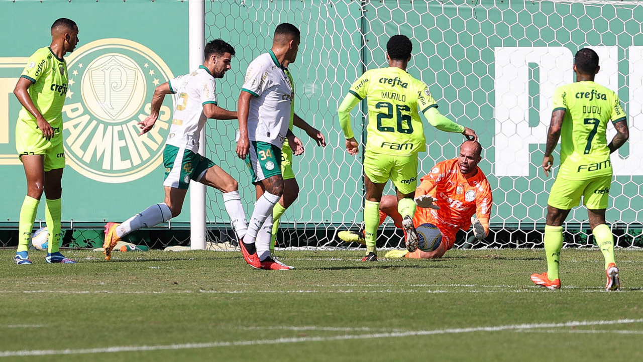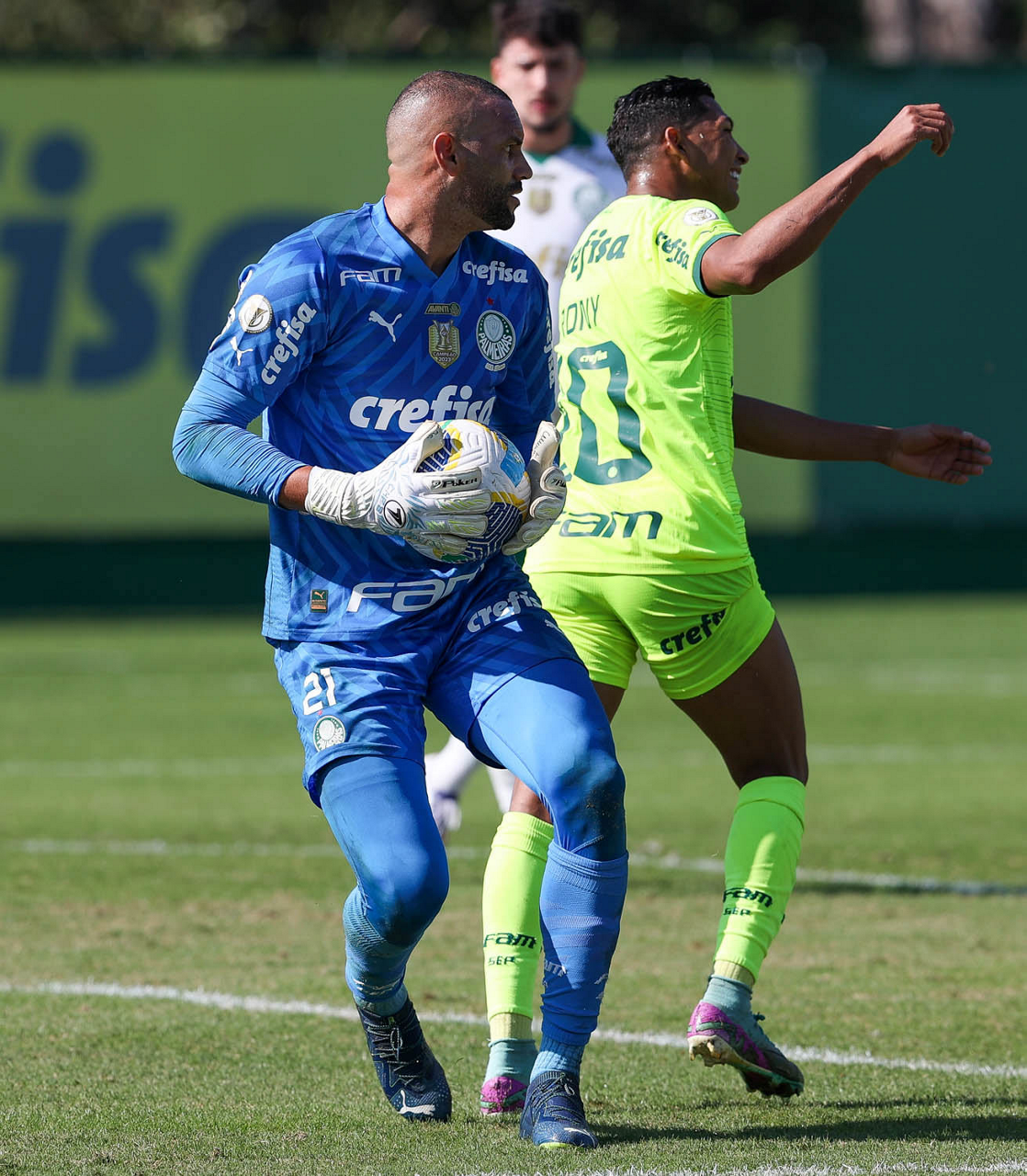O goleiro Weverton, da SE Palmeiras, durante jogo-treino, na Academia de Futebol. (Foto: Cesar Greco/Palmeiras/by Canon)